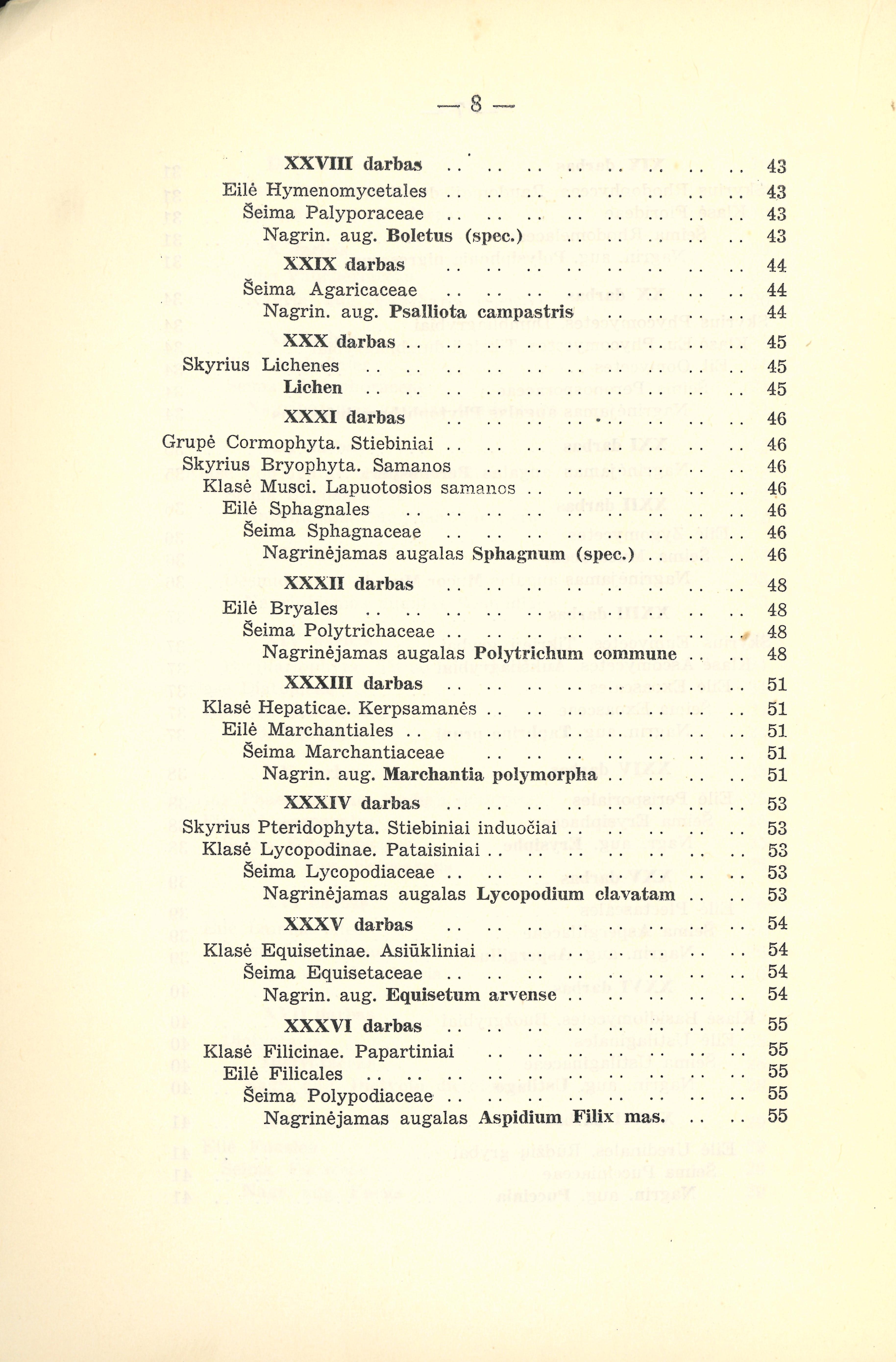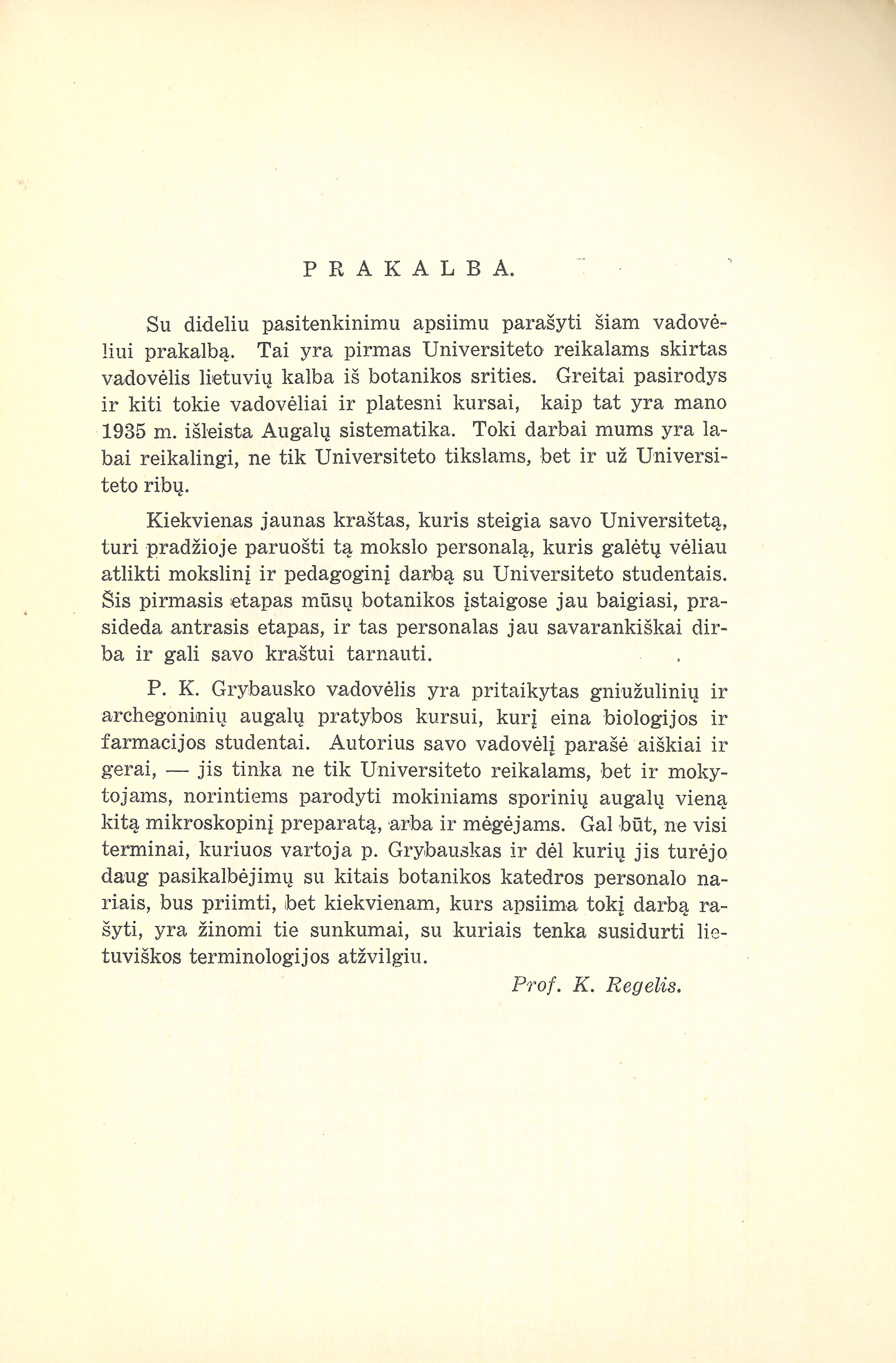 Gniužuliniai ir archegoniniai augalai : augalų sistematikos pratybos darbams vadovėlis / K. Grybauskas. – Kaunas : Matematikos-gamtos fakultetas, 1937. – 60 p.
