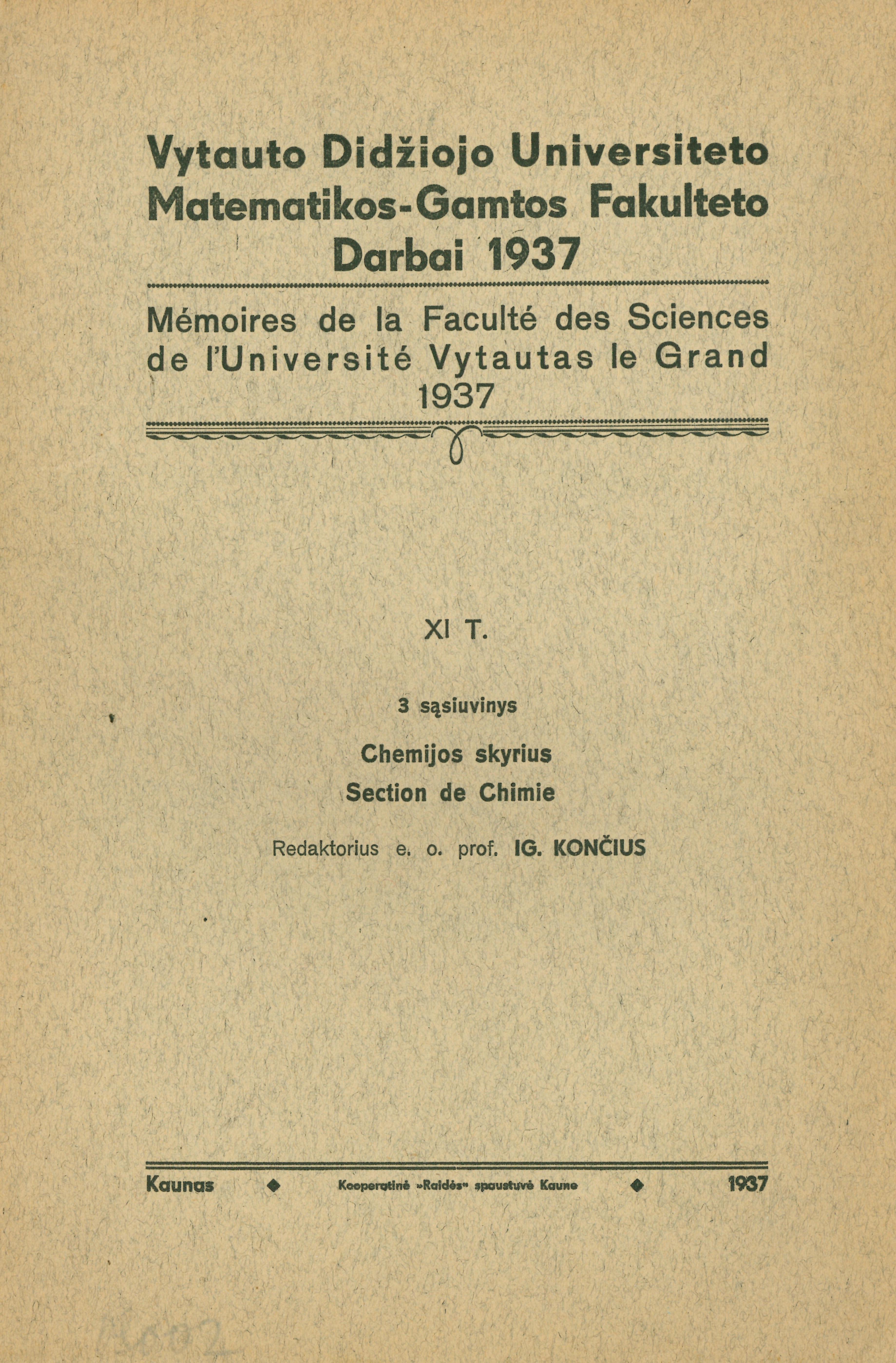 Yra dalis Matematikos-Gamtos fakulteto darbai. T. 8, sąs. 1: 1934: Fizikos bei chemijos skyrius (1934)