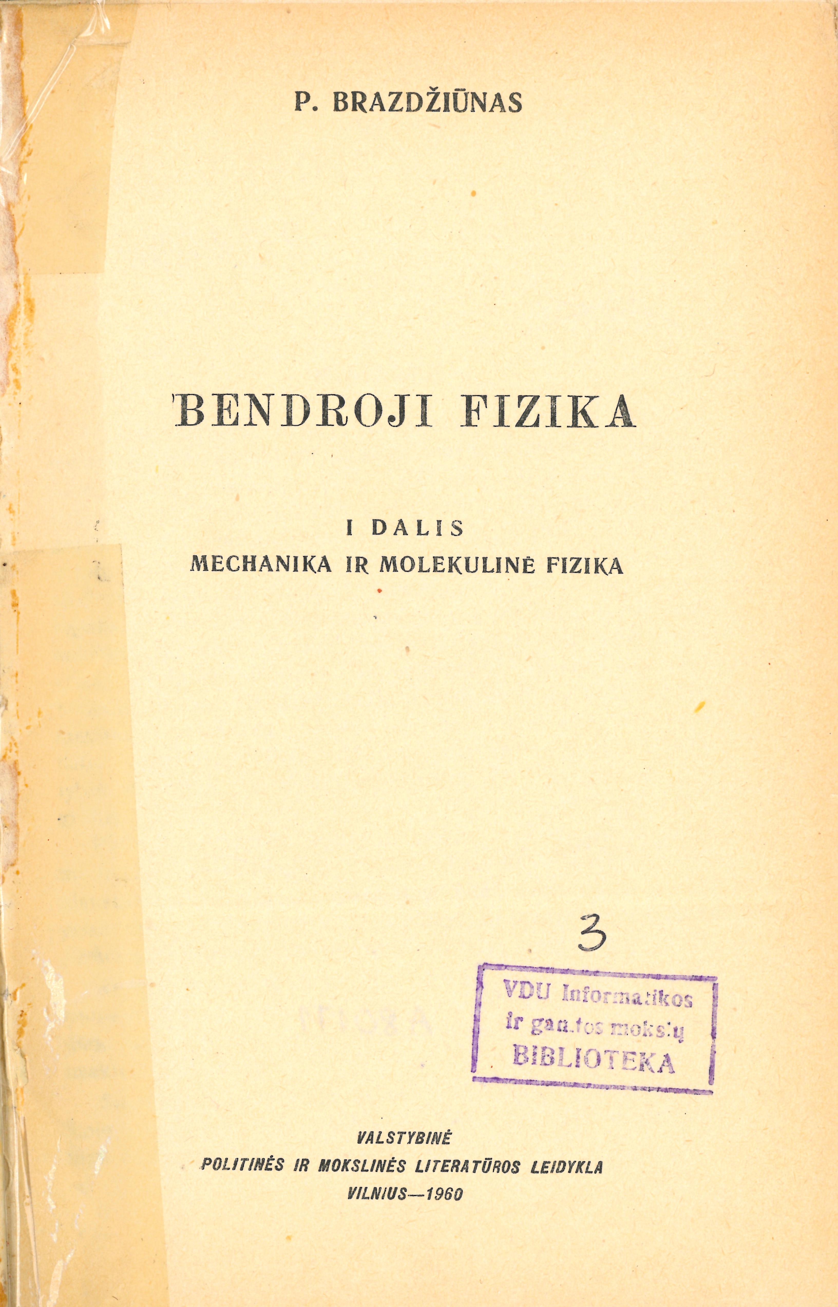 Bendroji fizika : vadovėlis respublikos aukštosioms mokykloms / P. Brazdžiūnas. – Vilnius : Valstybinė politinės ir mokslinės literatūros leidykla, 1960-1965. – 4 dalys.