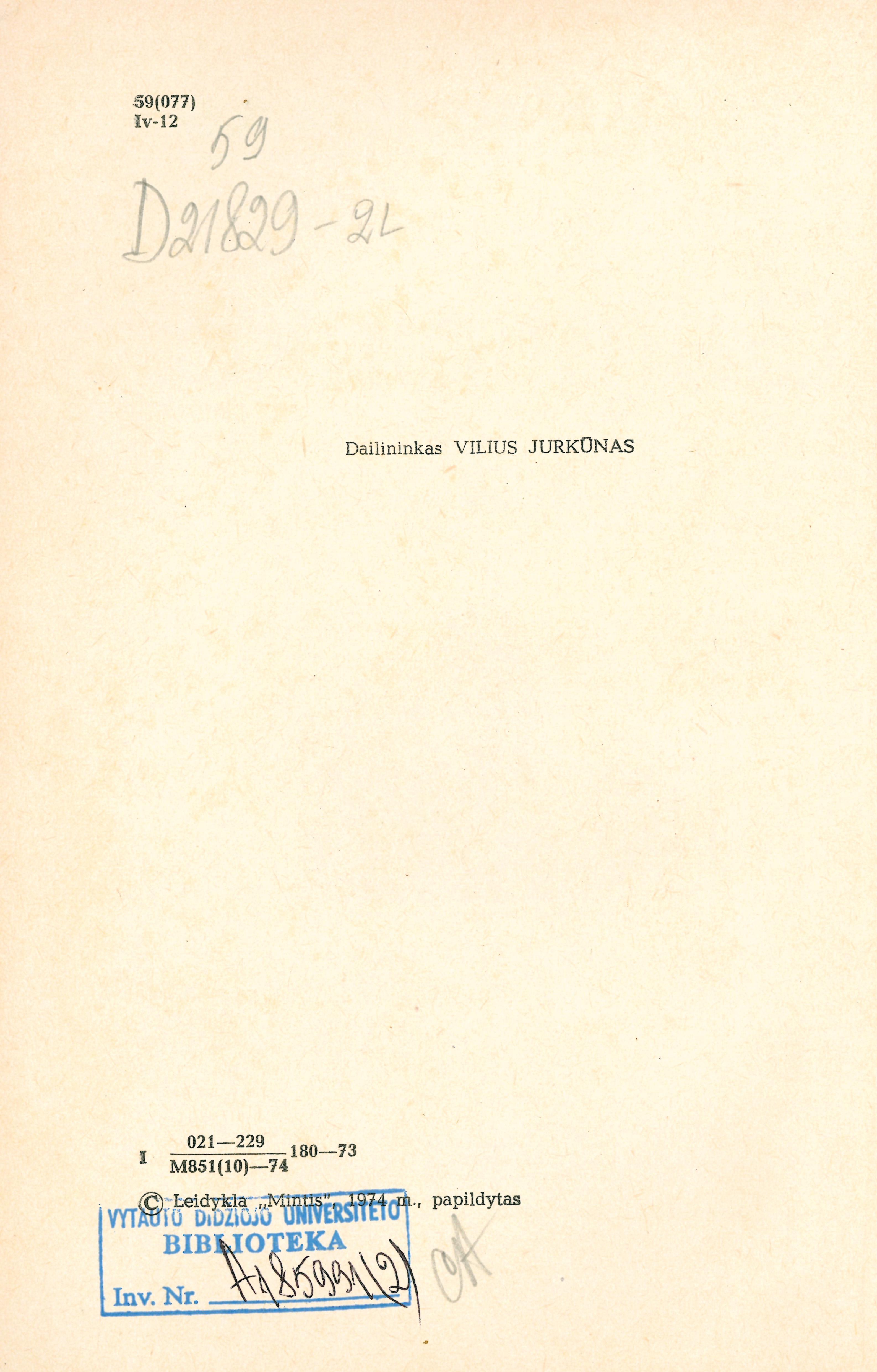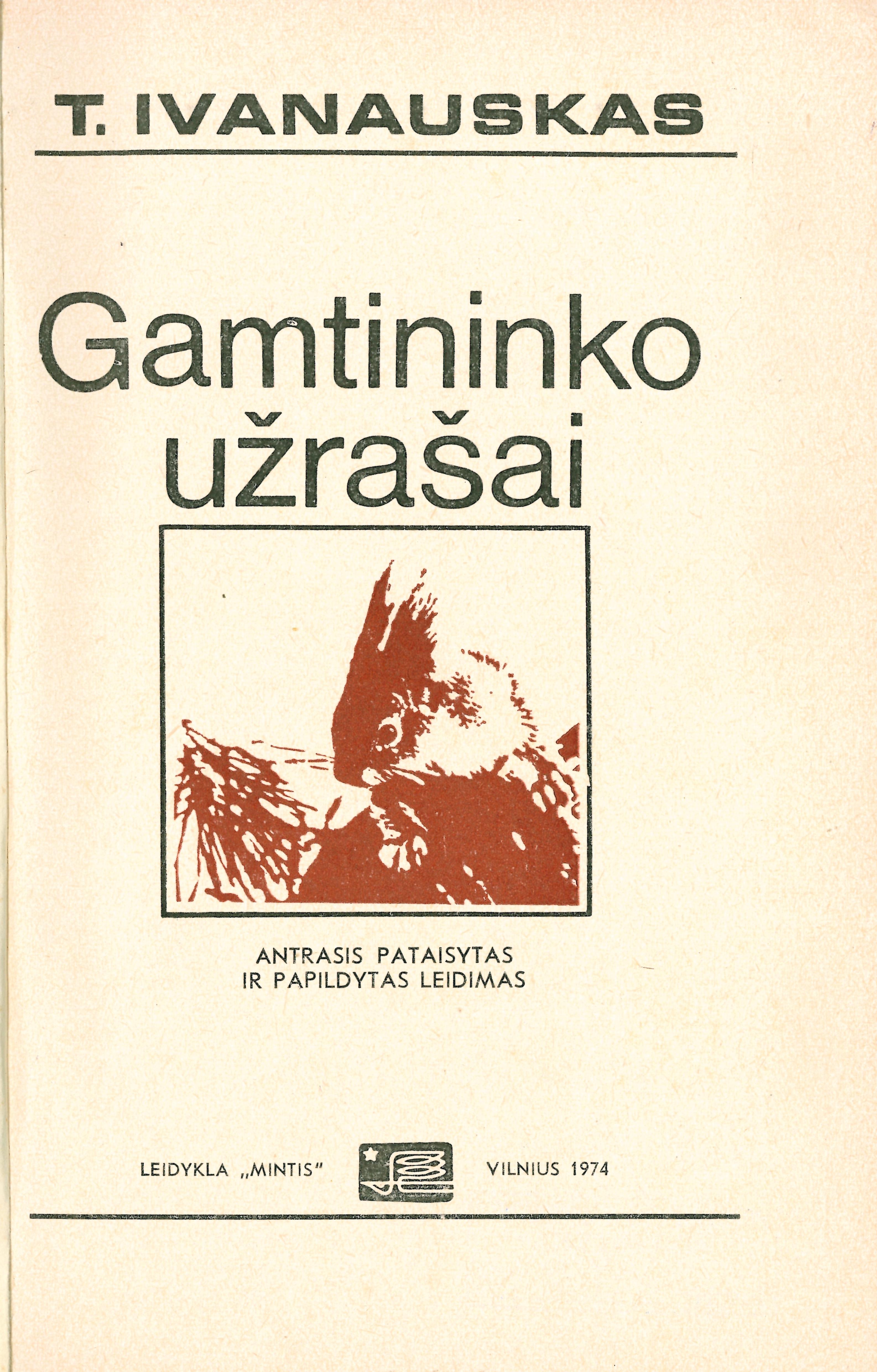 Gamtininko užrašai / T. Ivanauskas ; dailininkas Vilius Jurkūnas. – 2-asis patais. ir papild. leid. – Vilnius : Mintis, 1974. – 207 p., 12 iliustruotų lap. : iliustracijos.