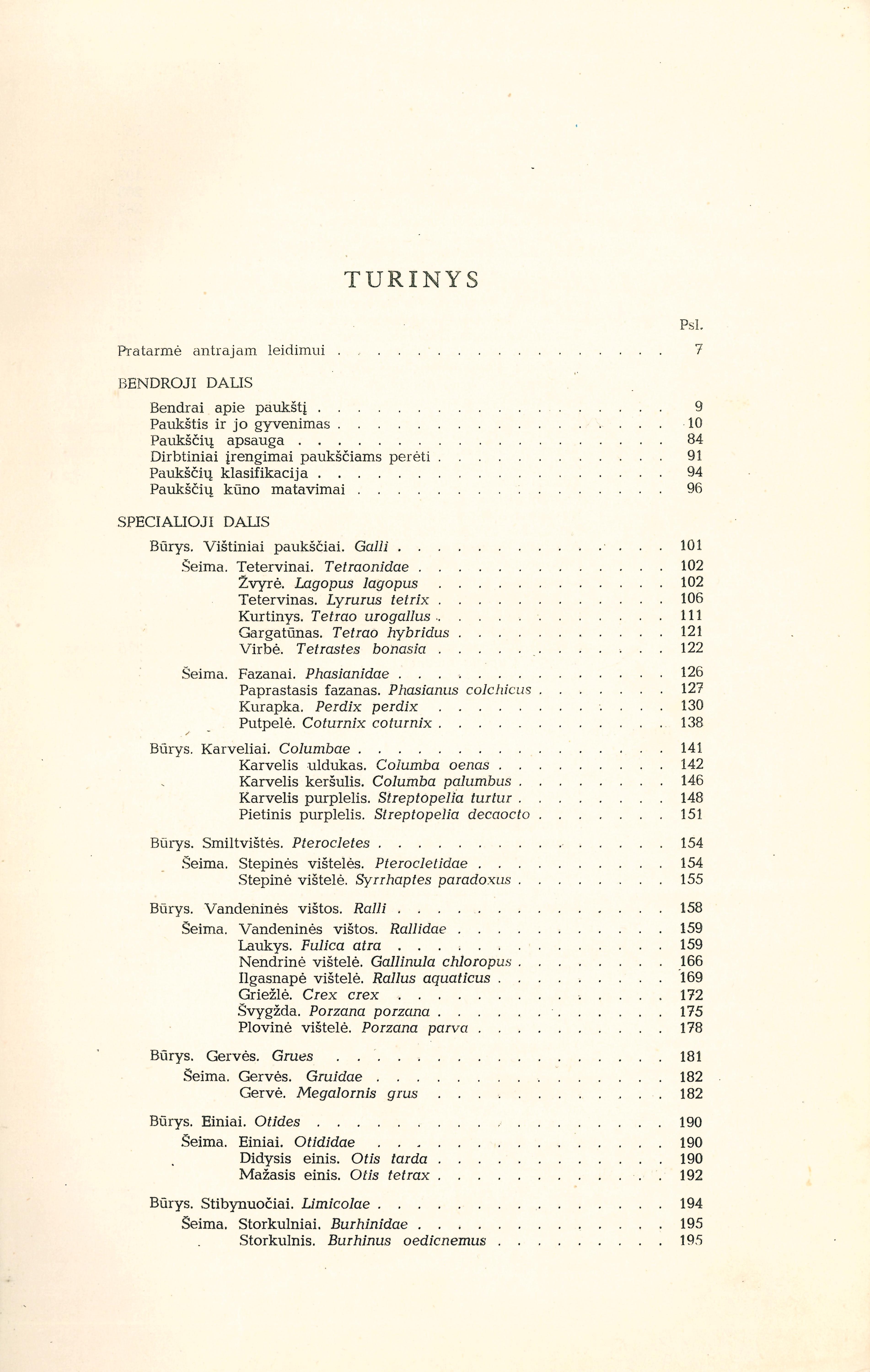 D. 1 : Tetervinai, fazanai, karveliai, stepinės vištelės, vandeninės vištos, gervės, einiai, storkulniai, sėjikai, kirai, alkos. – 1957.