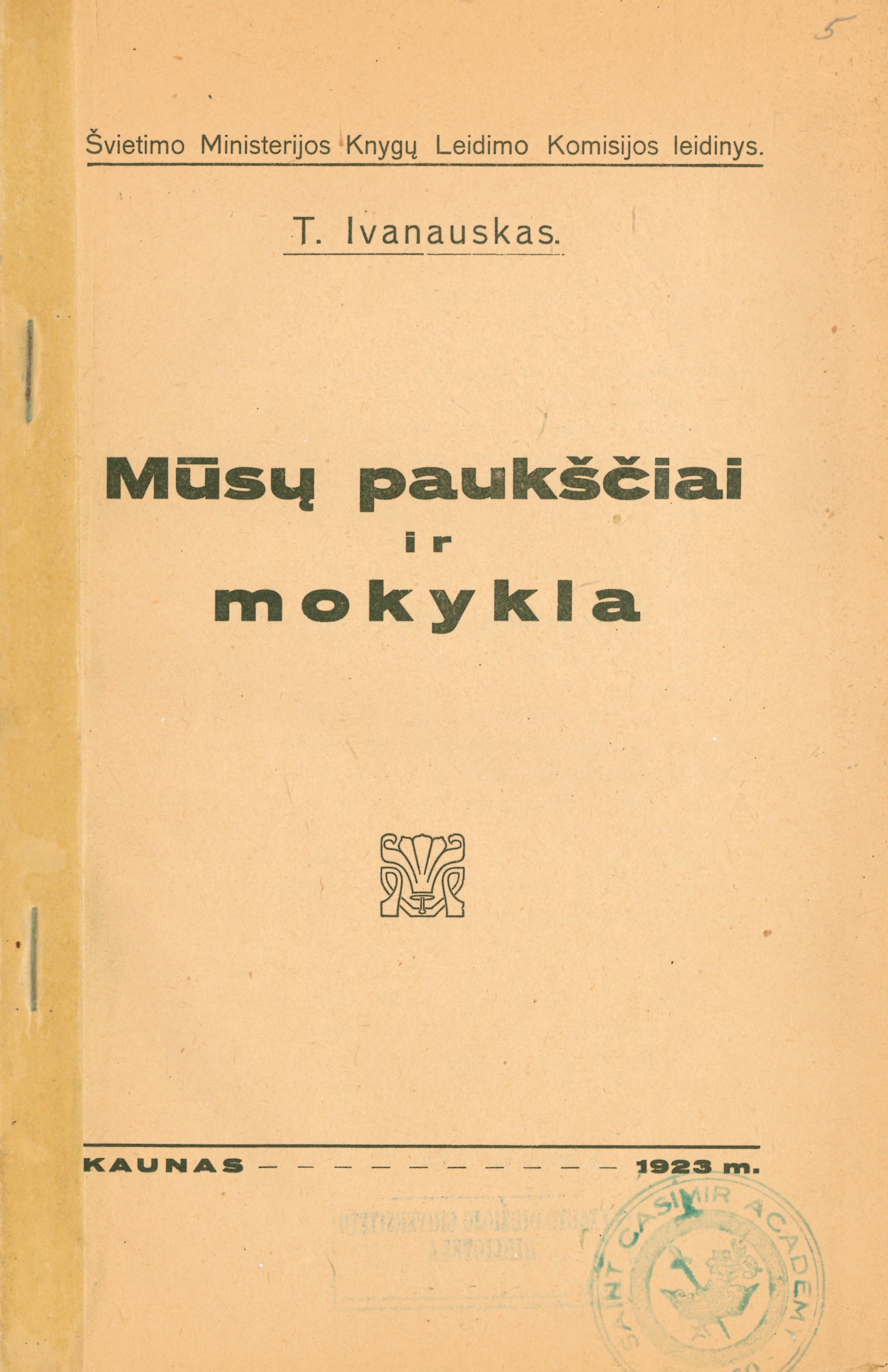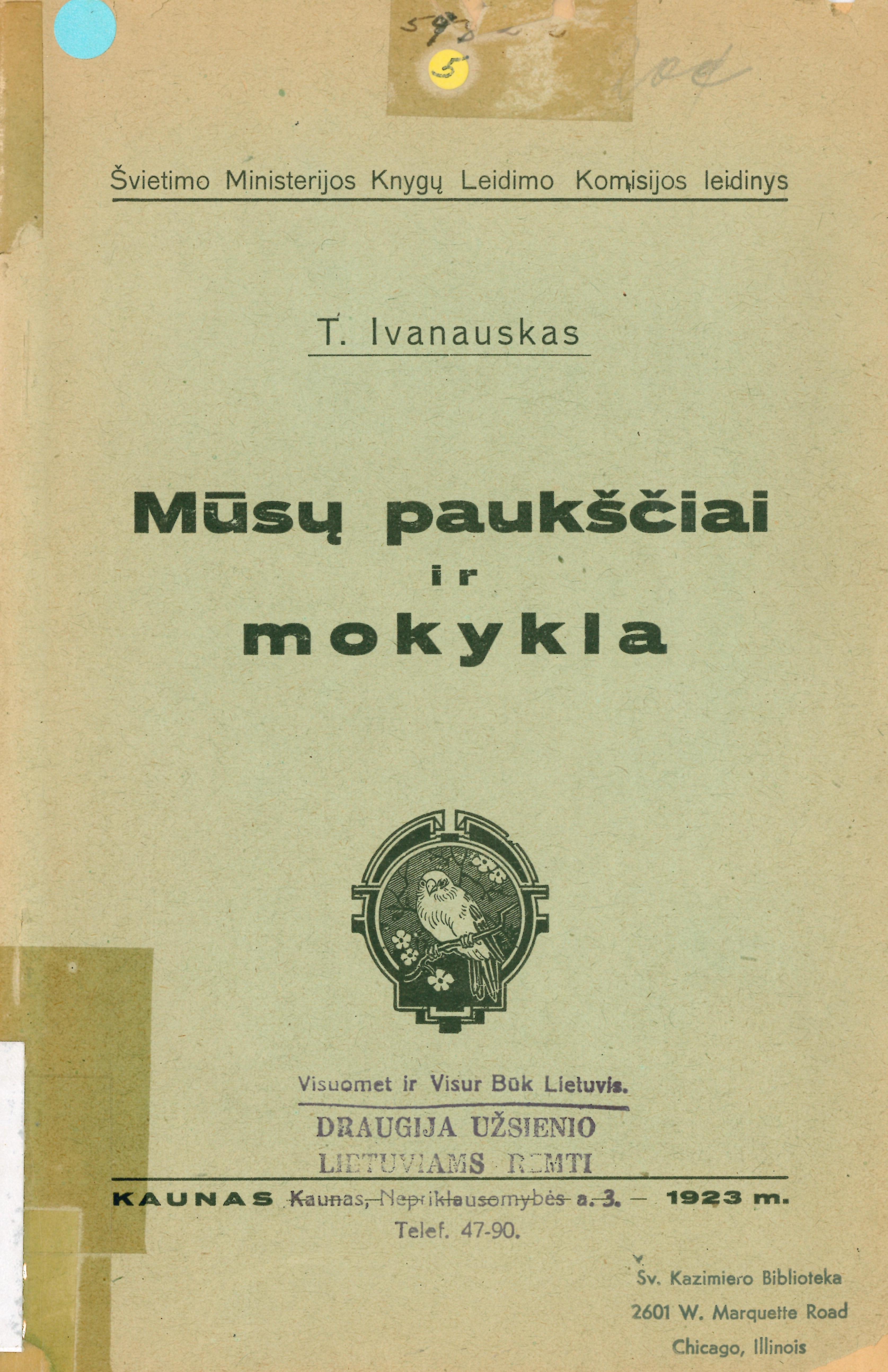 Mūsų paukščiai ir mokykla / T. Ivanauskas. – Kaunas : Švietimo ministerijos knygų leidimo komisija, 1923. – 41 p. : iliustracijos.