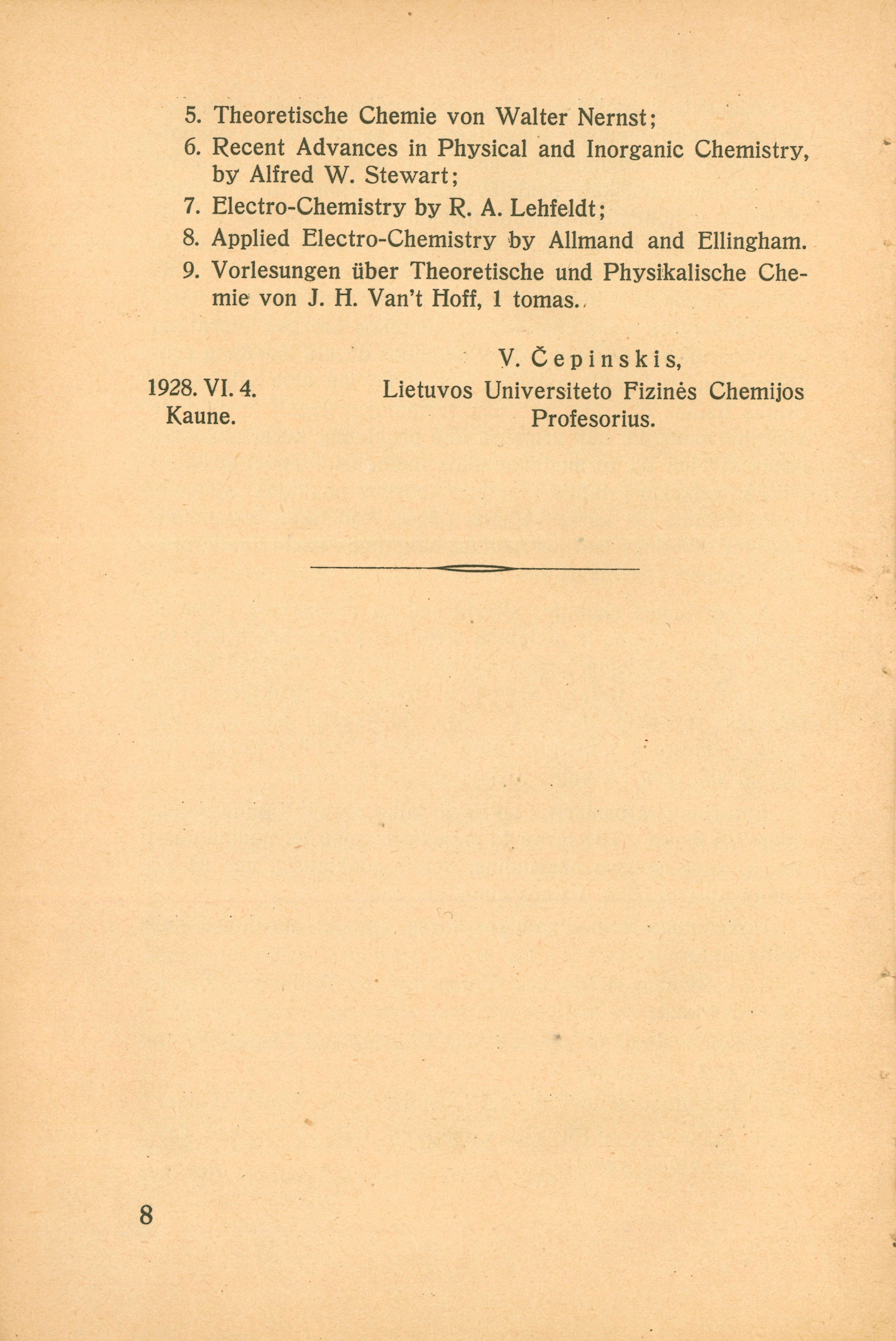 Fizinė chemija / V. Čepinskis ; Lietuvos universiteto Matematikos-gamtos fakultetas. – Klaipėda ; Kaunas, 1928-1933. – 4 dalys.