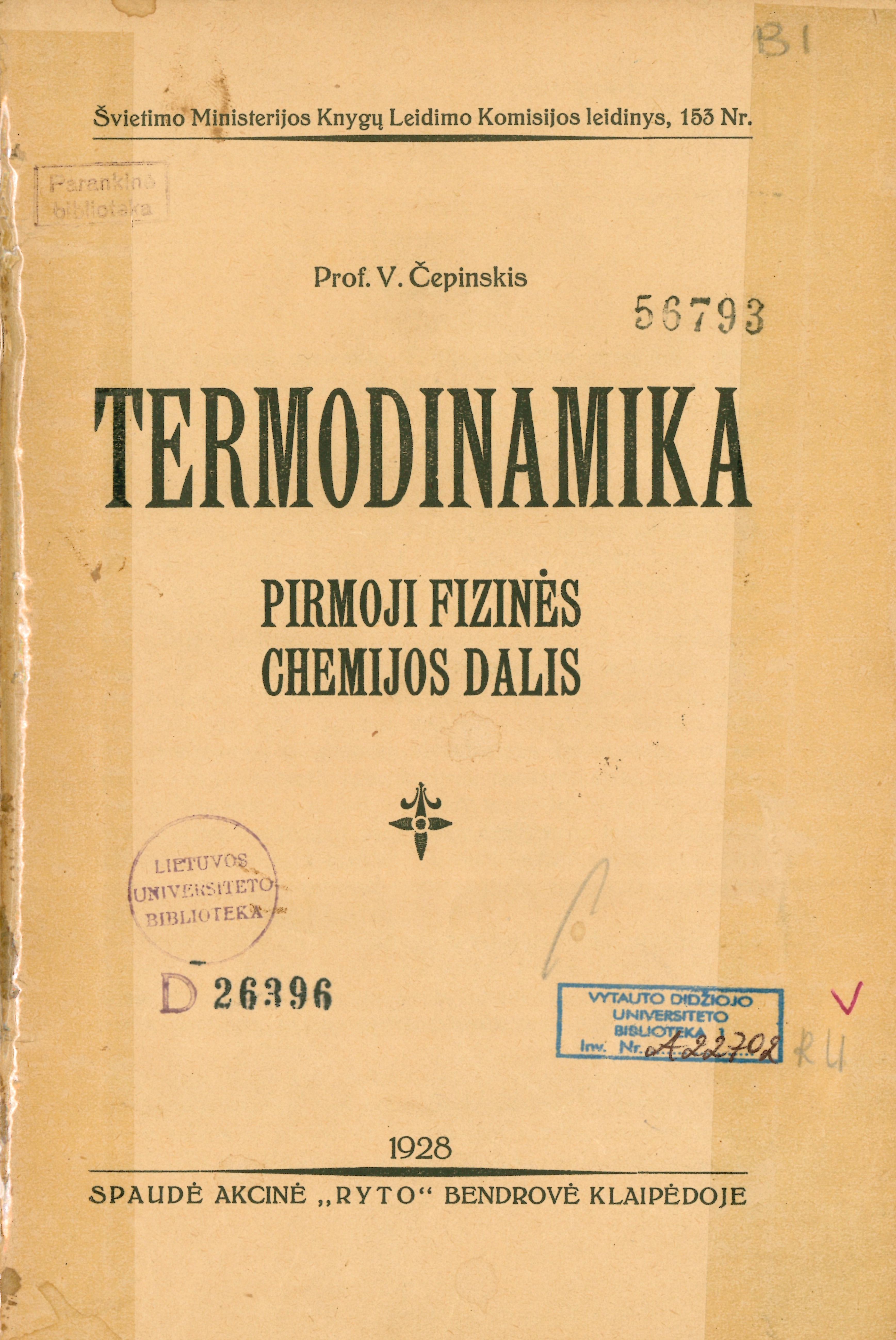D. 1 : Termodinamika. – 1928. – (Švietimo ministerijos Knygų leidimo komisijos leidinys; Nr. 153)