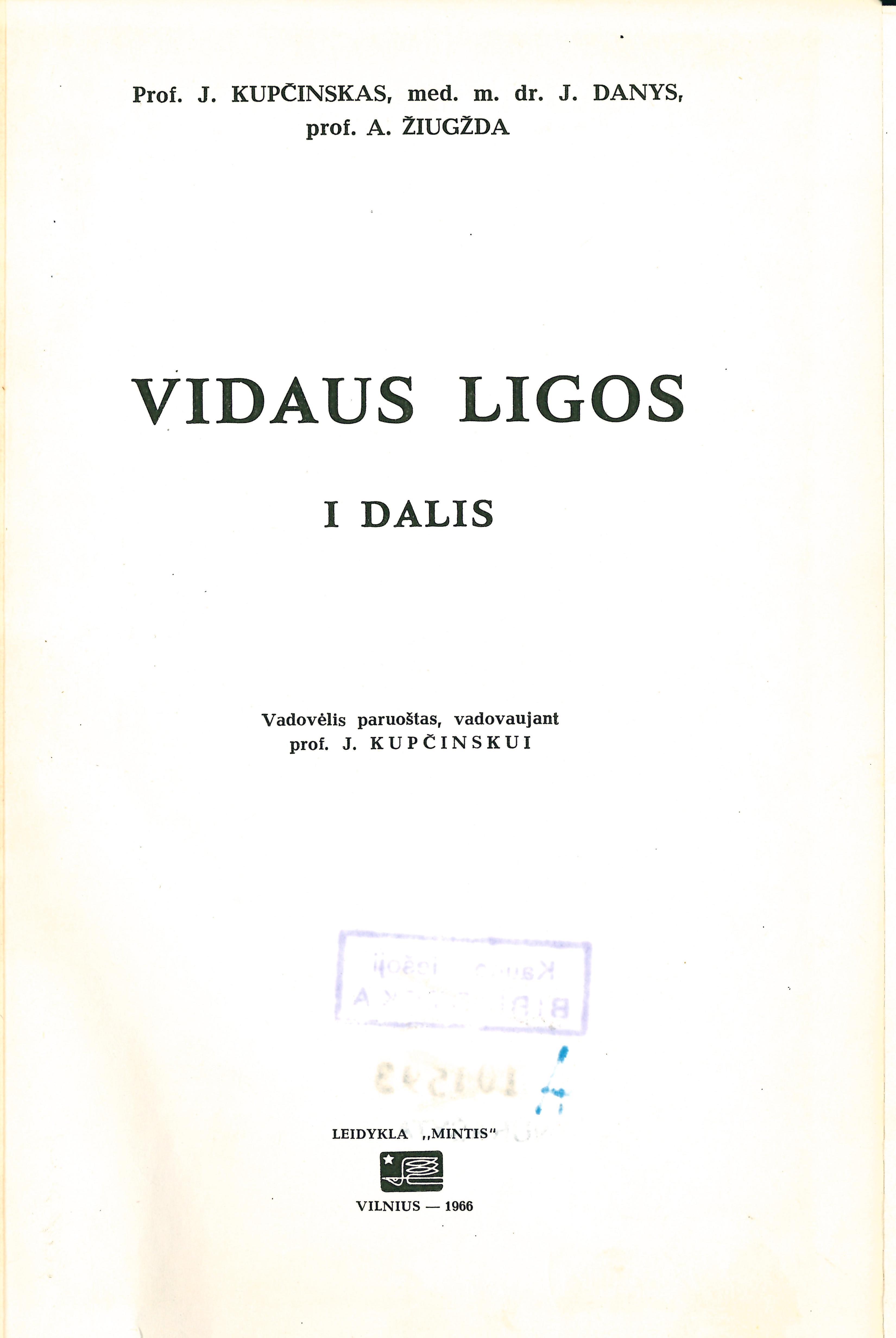 Vidaus ligos / J. Kupčinskas, J. Danys, A. Žiugžda. – Vilnius : Mintis, 1966-1967. – 2 dalys.