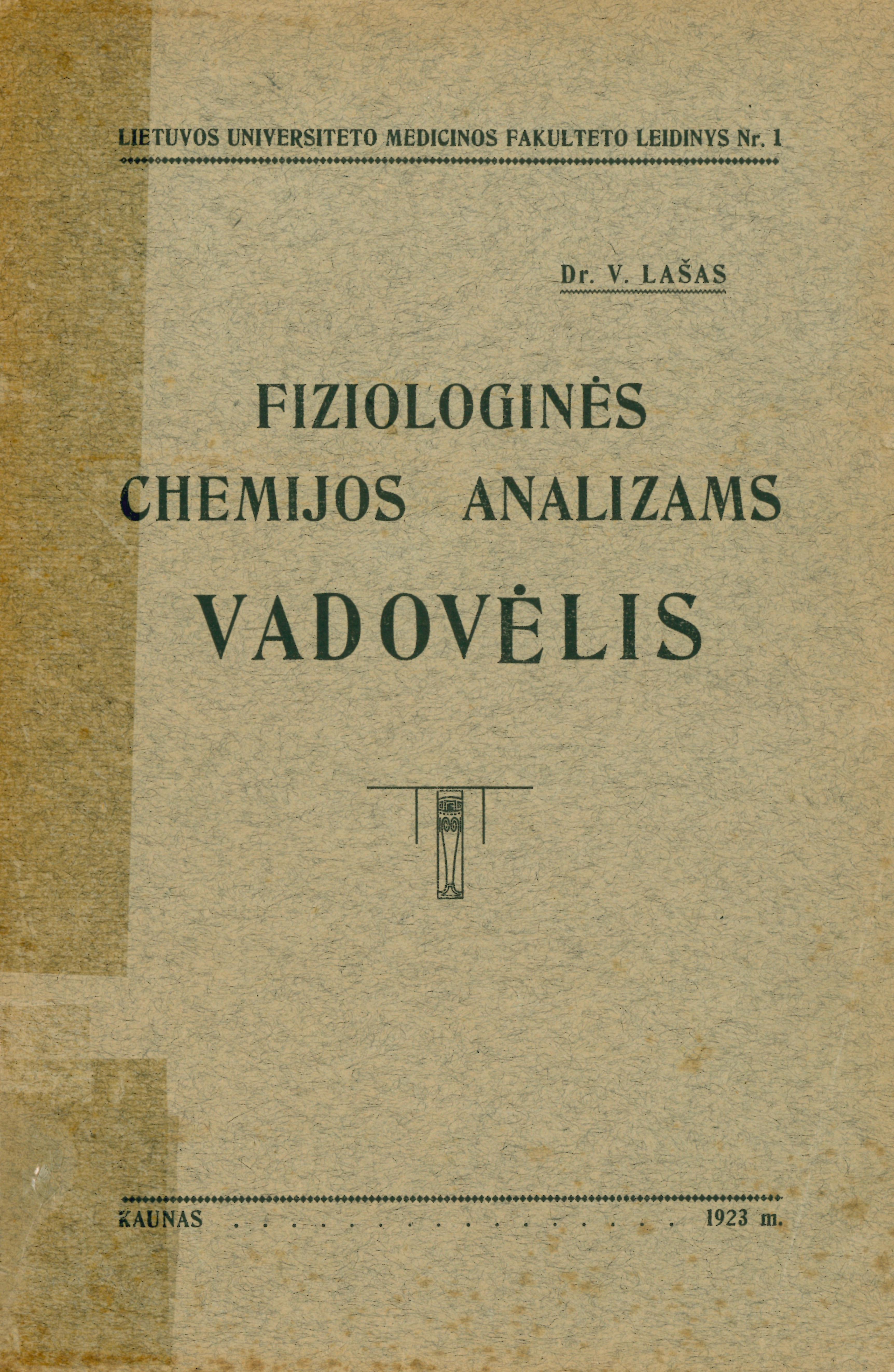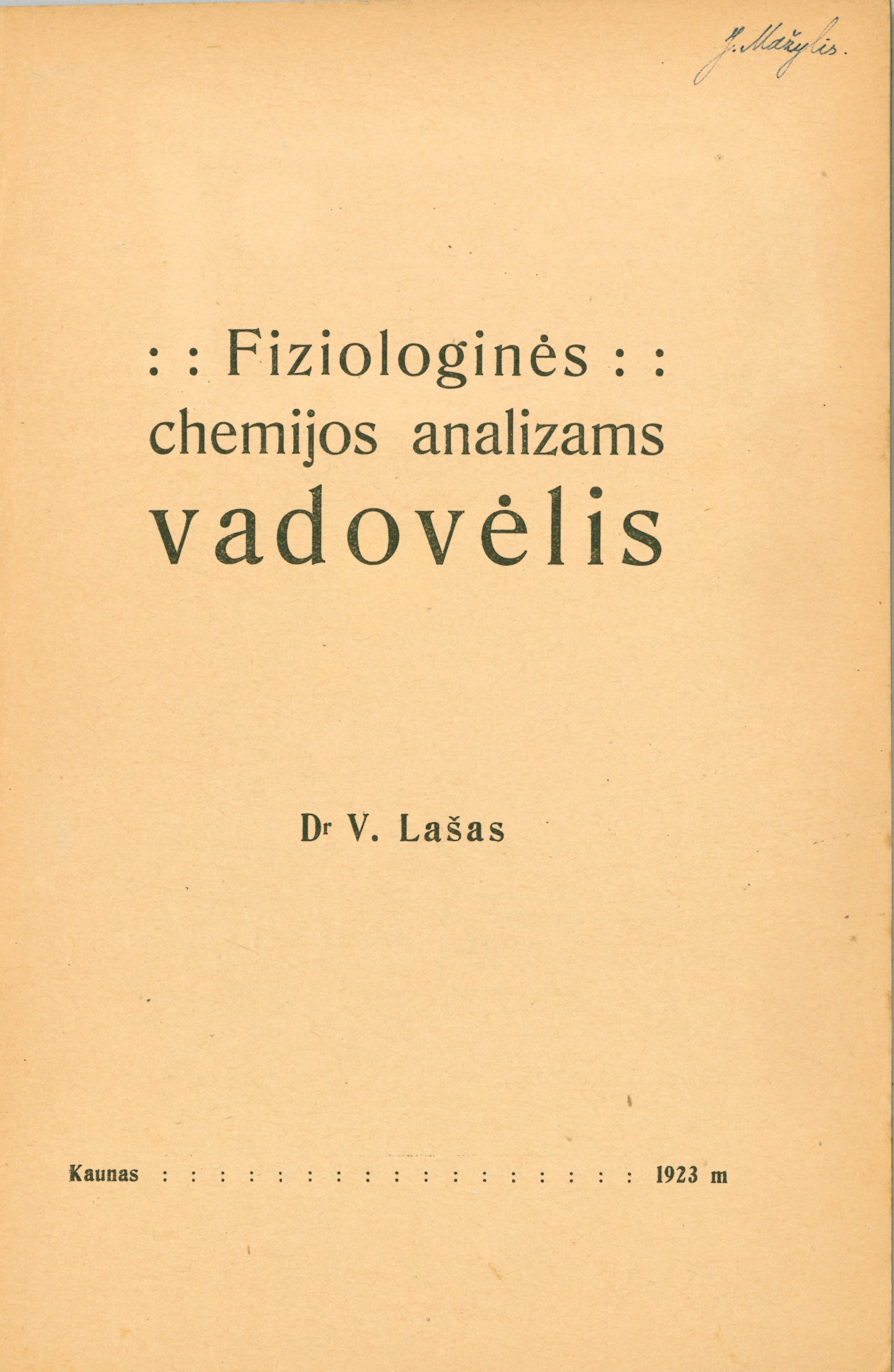 Fiziologinės chemijos analizams vadovėlis / V. Lašas. – Kaunas, 1923. – 148 p. – (Lietuvos universiteto Medicinos fakulteto leidinys ; Nr. 1).