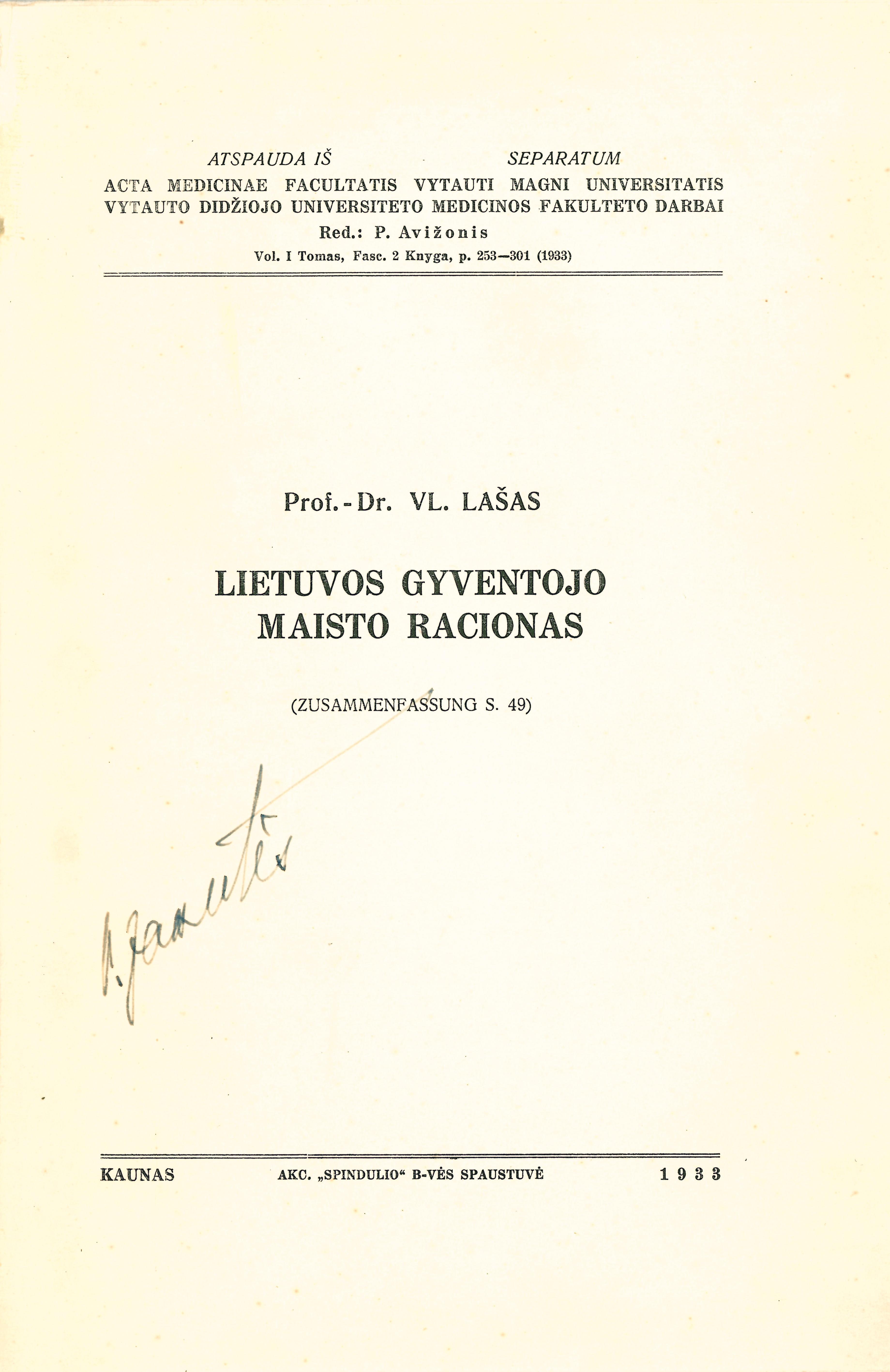 | Autorius | Vladas Lašas, Medicinos fakultetas |