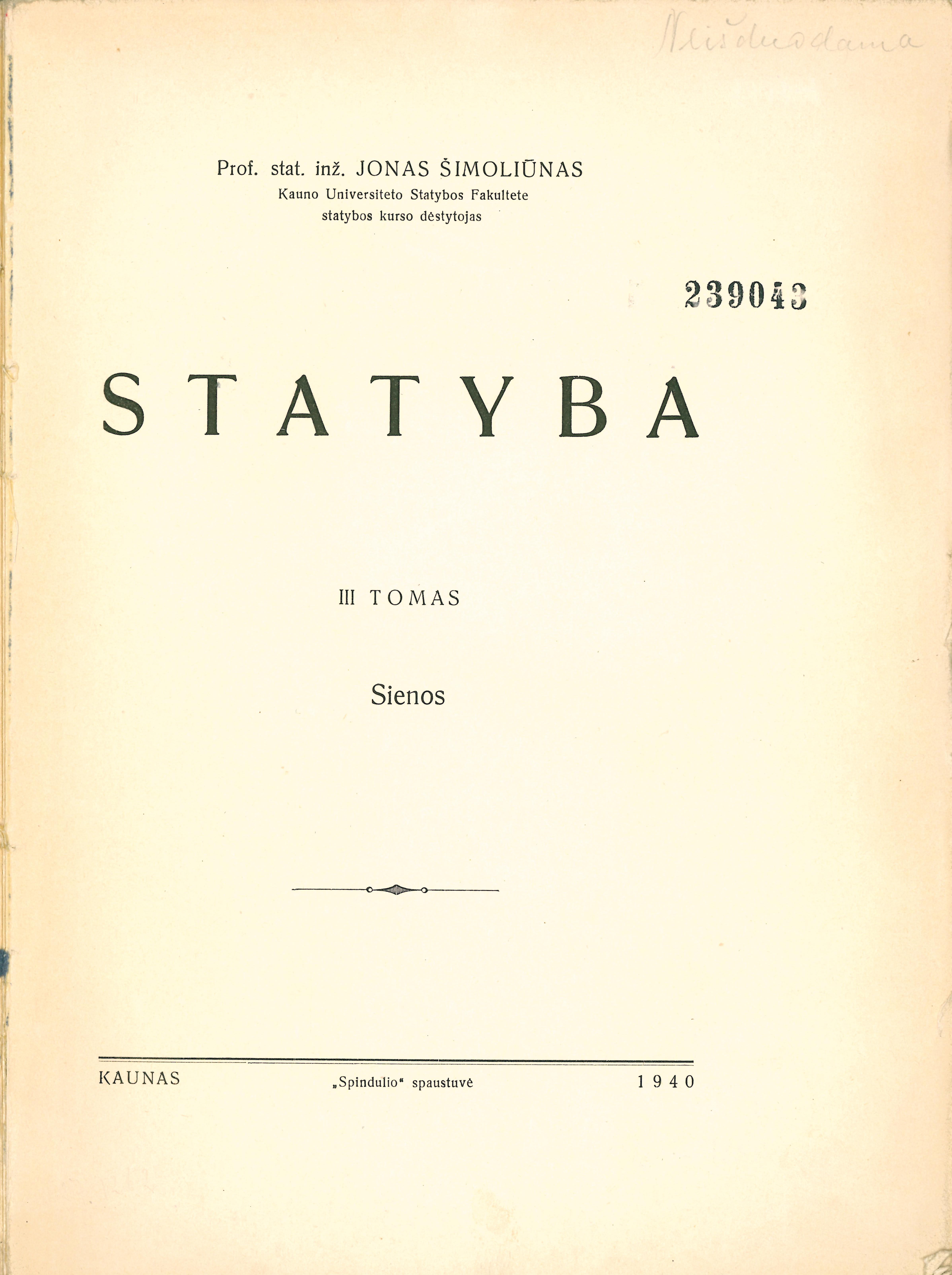 Published Kaunas: Kauno universiteto Statybos fakultetas, 1940