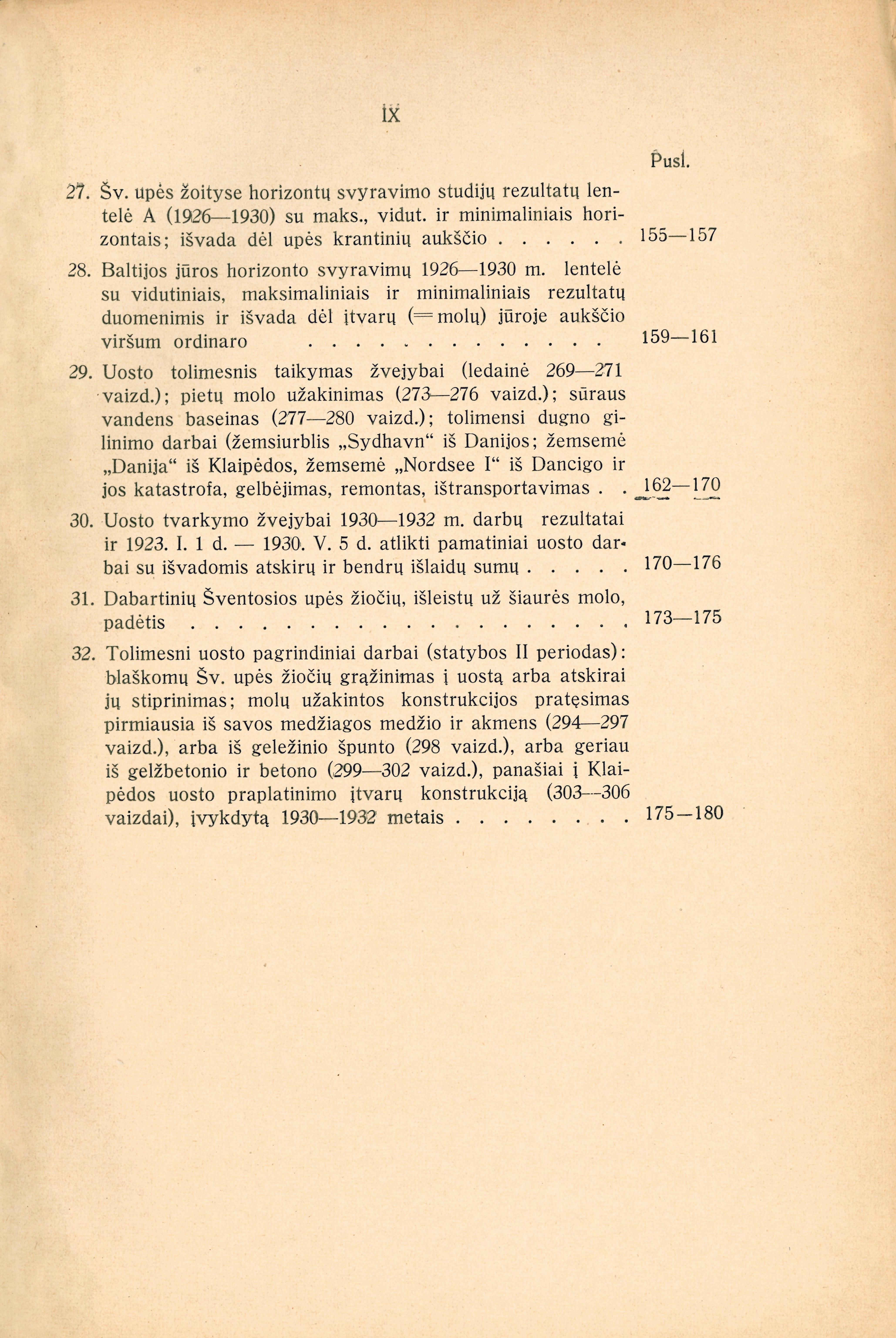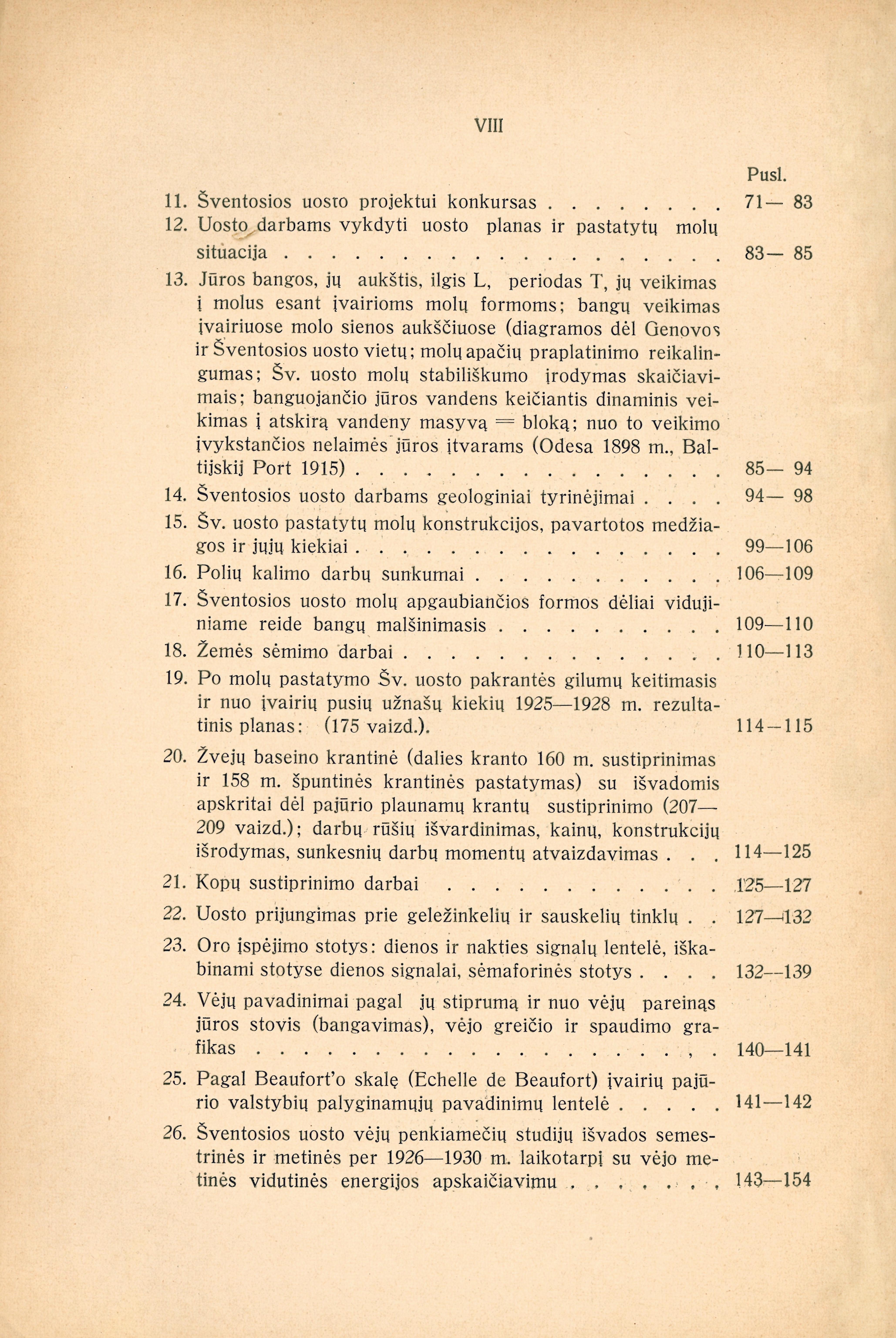 | Gimbutas Leonas. Žemės masės pusiausvyra matematinės tamprumo teorijos šviesoje (p. 1-58); Mošinskis Vytautas. Mažosios lydymo krosnies skersmens apskaičiavimo klausimu (p. 59-64); Šimkus Jonas. Kaučukas, jo gamyba ir vartojimas (p. 65-106); Kiškinas Jonas. Skėlimų įtempimų reikšmė geležbetonio pastatus projektuojant (p. 107-128); Šimoliūnas Jonas. Šventosios uostas (p. 129-312); Šulcas Tadas. Mariampolės cukraus fabriko ir jo garo katilų ir turbinų bandymas (p. 313-338); Grinkevičius Silvestras. Bendra inžinieriaus kultūra (p. 339-344); Jankevičius Juozas. Žemės tūrių skaičiavimas grafišku būdu (p. 345-374); Jankevičius Juozas. Telšių - Kretingos geležinkelis (p. 375-398); Glodenis Adolfas. Žaliavų tyrimai statybos medžiagoms gaminti (p. 399-404); Graurogkas Julijonas. Keletas pastabų materialinio taško judėjimo klausimu, kai taškas harmoningai švytuoja apie tam tikrą centrą (p. 405-416); Vasiliauskas Kazimieras. Keturkampių svorio centras (p. 417-420); Vasiliauskas Kazimieras. Vienaluomės sijos įlinkių kreivės ¡rašytinis daugiakampis (p. 421-426); Vasiliauskas Kazimieras. Strypinės fermos elastiniai svoriai (p. 427-440); Novickis Zigmas. Dabarties krosnys terminiam metalų apdirbimui (p. 441-450); Novickis Zigmas. Špyžplėnio gamybos progresas (p. 451-458); Songaila Mykolas. Vytauto Didžiojo Universiteto Fizikos-Chemijos Institutas (p. 459-500); Dobkevičius Feliksas. Jeigu eteras tikrai yra (p. 501-504); Mošinskis Vytautas. Masinės gamybos pagrindai ir jų pritaikinimas metalinių dirbinių pramonėje (p. 505-536); Jankauskas Jurgis. Suspaudimo talpumo nustatymas indikatorinių diagramų pagalba (p. 537-546); Verbickis Valerijonas. Vytauto Didžiojo Universiteto Fizikos ir Chemijos Instituto traukos spintų vėdinimo sistema ir jos ištaisymas (p. 547-570); Vidmantas Jurgis. Patobulintas Englerio, Kislingo ir Henstero aparatas sieros kiekiui skystame kure ir dujose nustatyti (p. 571-572); Grinkevičius Silvestras. Technikinio mokslo Tarptautinis kongresas Paryžiuje 1931 metų rugsėjo m. 24-27 d. (p. 573-575); Vytauto Didžiojo Universiteto paskyrų katedrų ir įstaigų aprašymas (p. 576-632); Šulcas Tadas. Technikos naujienos (p. 633-634); Technikos Fakulteto chronika (p. 635-638); Techniškosios literatūros naujienos (p. 639-649) | |