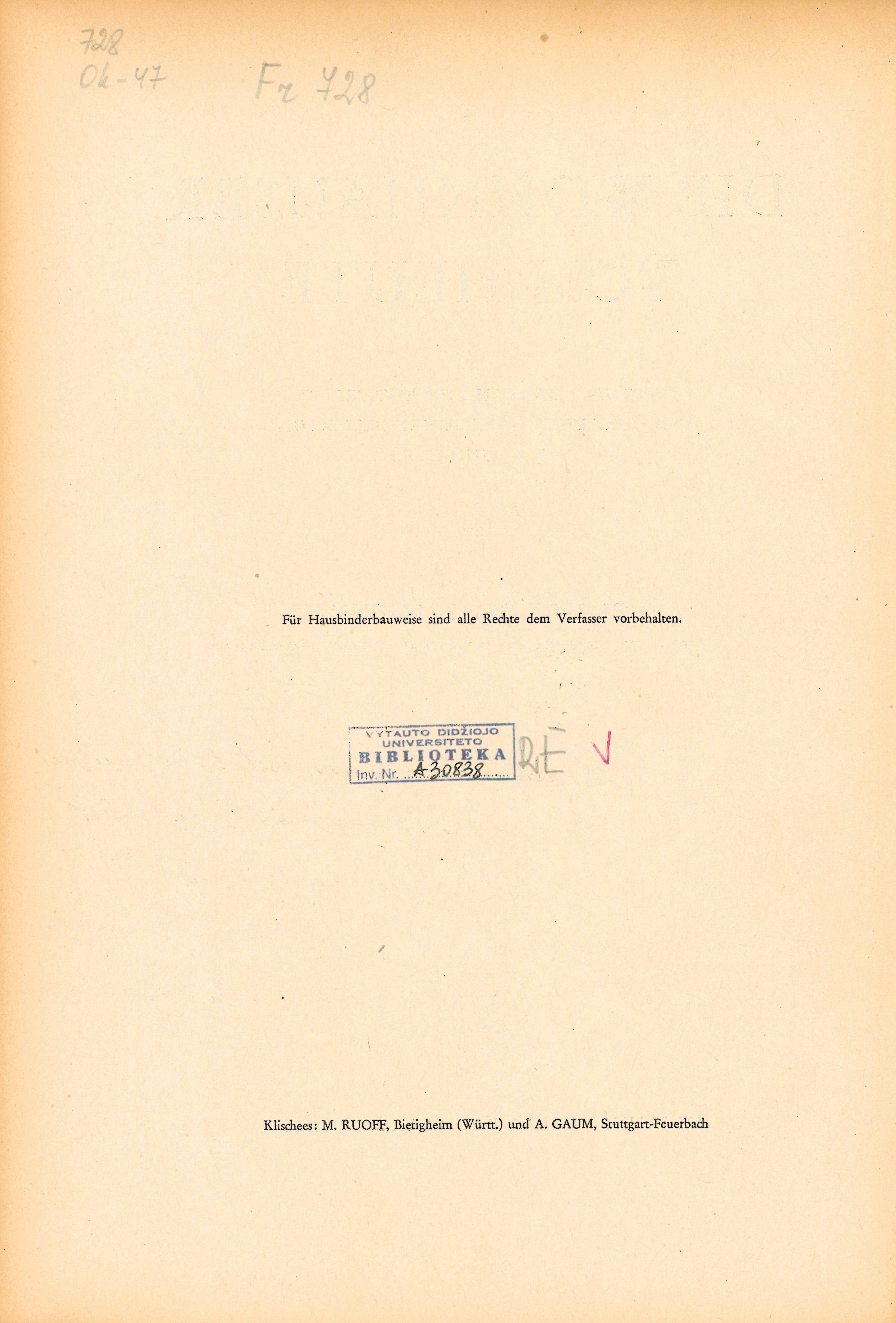 Die Wohnhauser von Heute : Gundgedanken zum entwerfen und zur wirtschaftlichen bewertung von grundrissen / G. Okunis. – Bacharach : Janus, 1949. – 119 p.