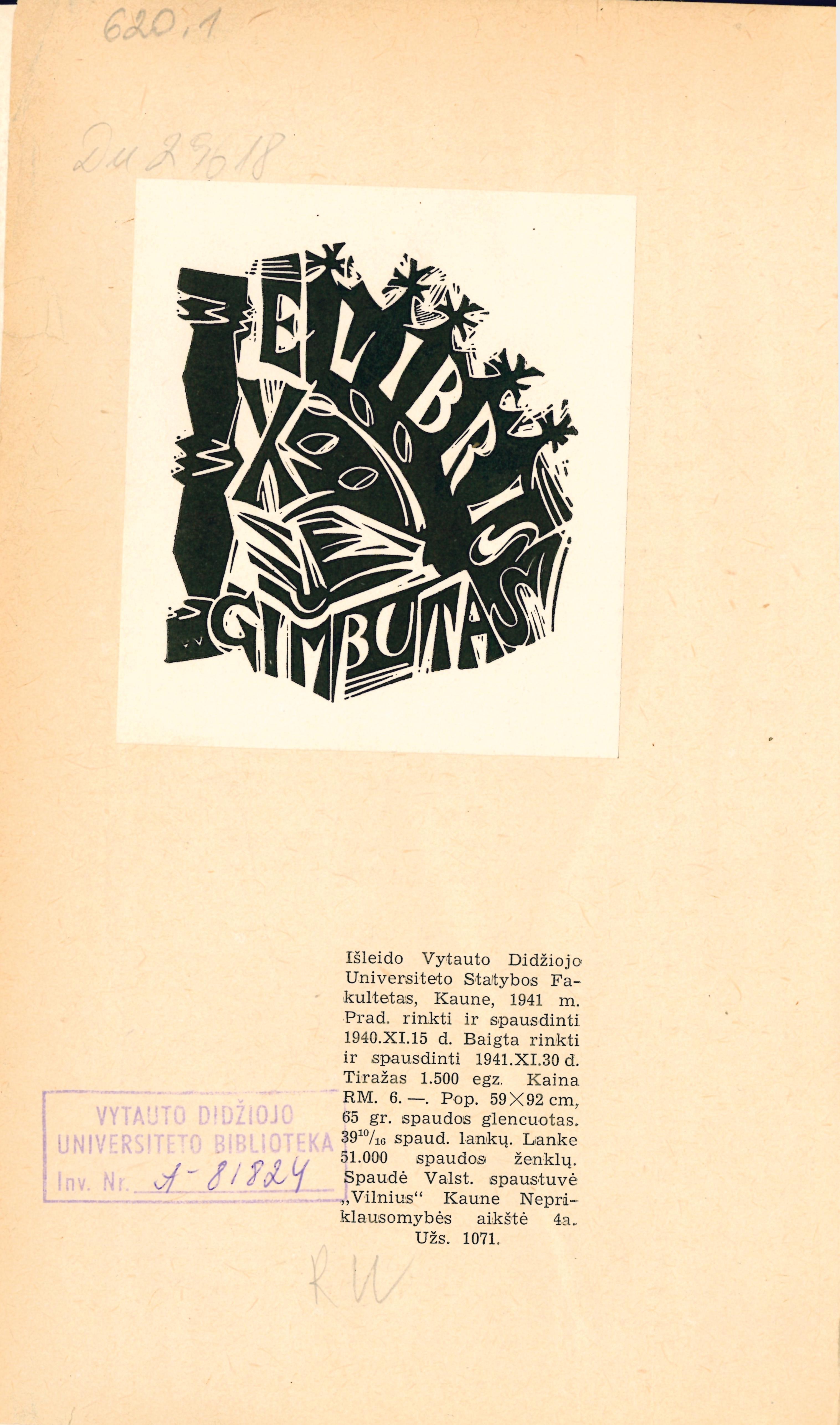 Medžiagų atsparumas / Kazimieras Vasiliauskas. – Kaunas : Vytauto Didžiojo universiteto Statybos fakultetas, 1941. – XVI, 615 p.