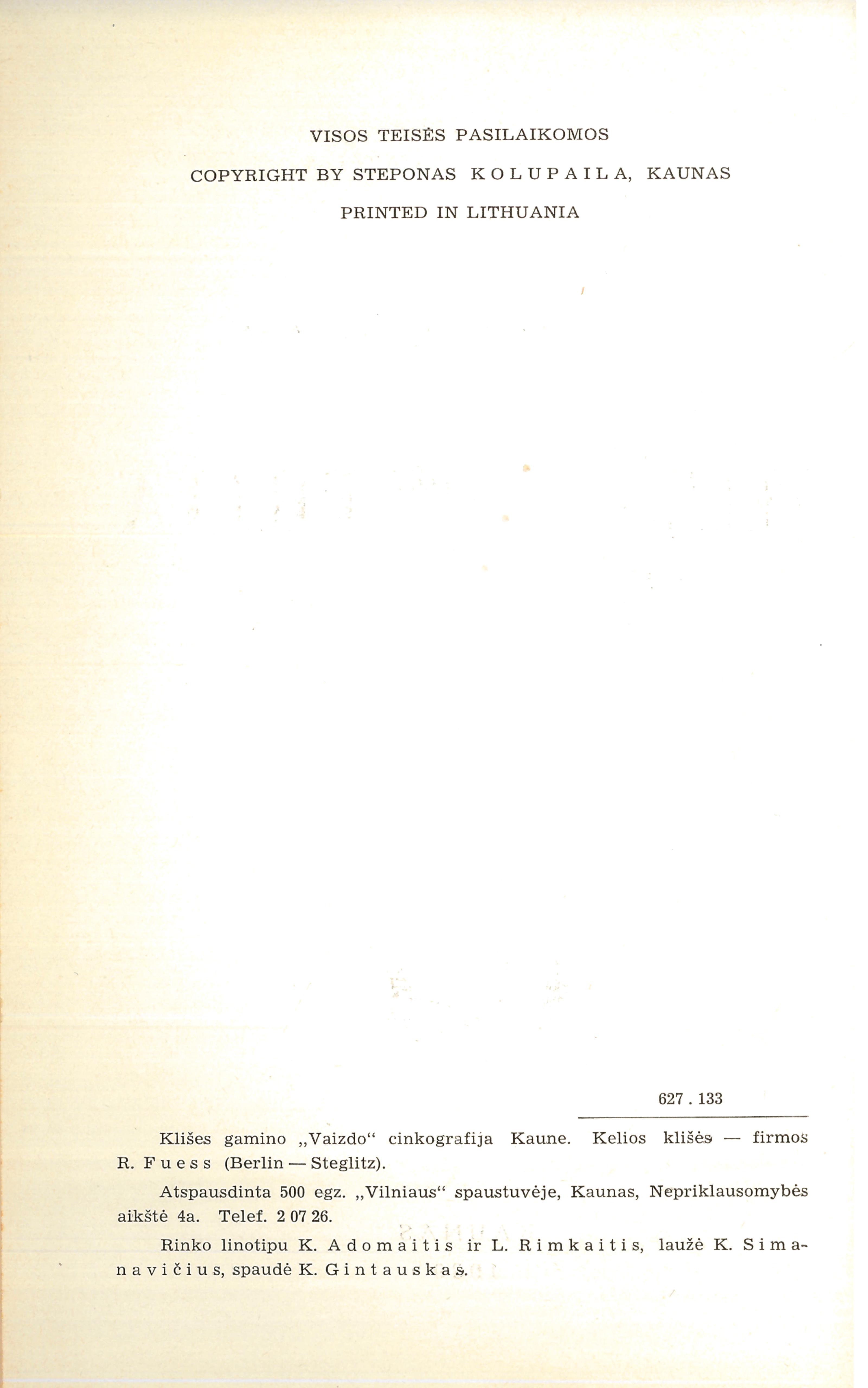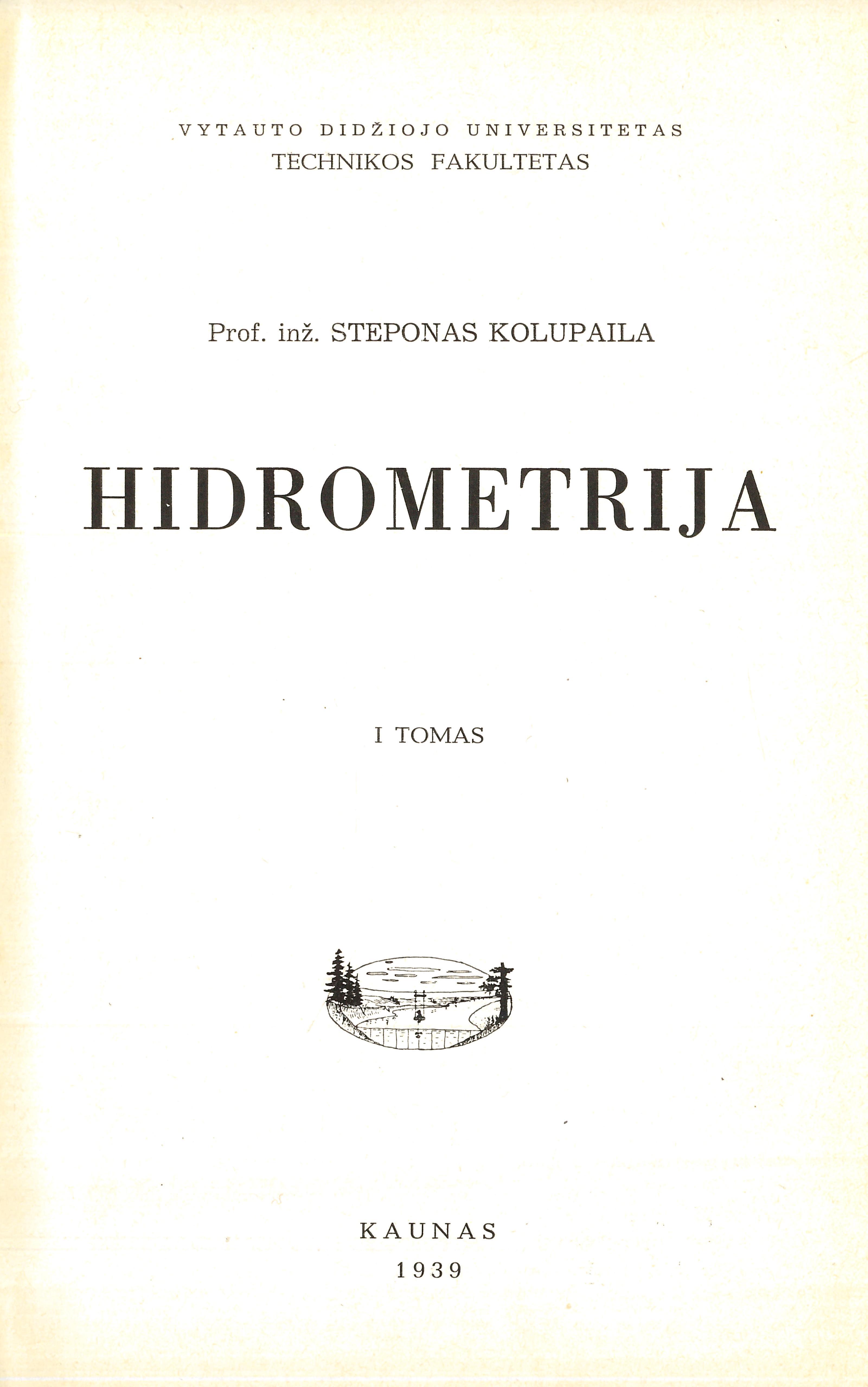 Hidrometrija / prof. inž. Steponas Kolupaila. – Kaunas : Vytauto Didžiojo universitetas Technikos fakultetas, 1939-1940. – 2 tomai.