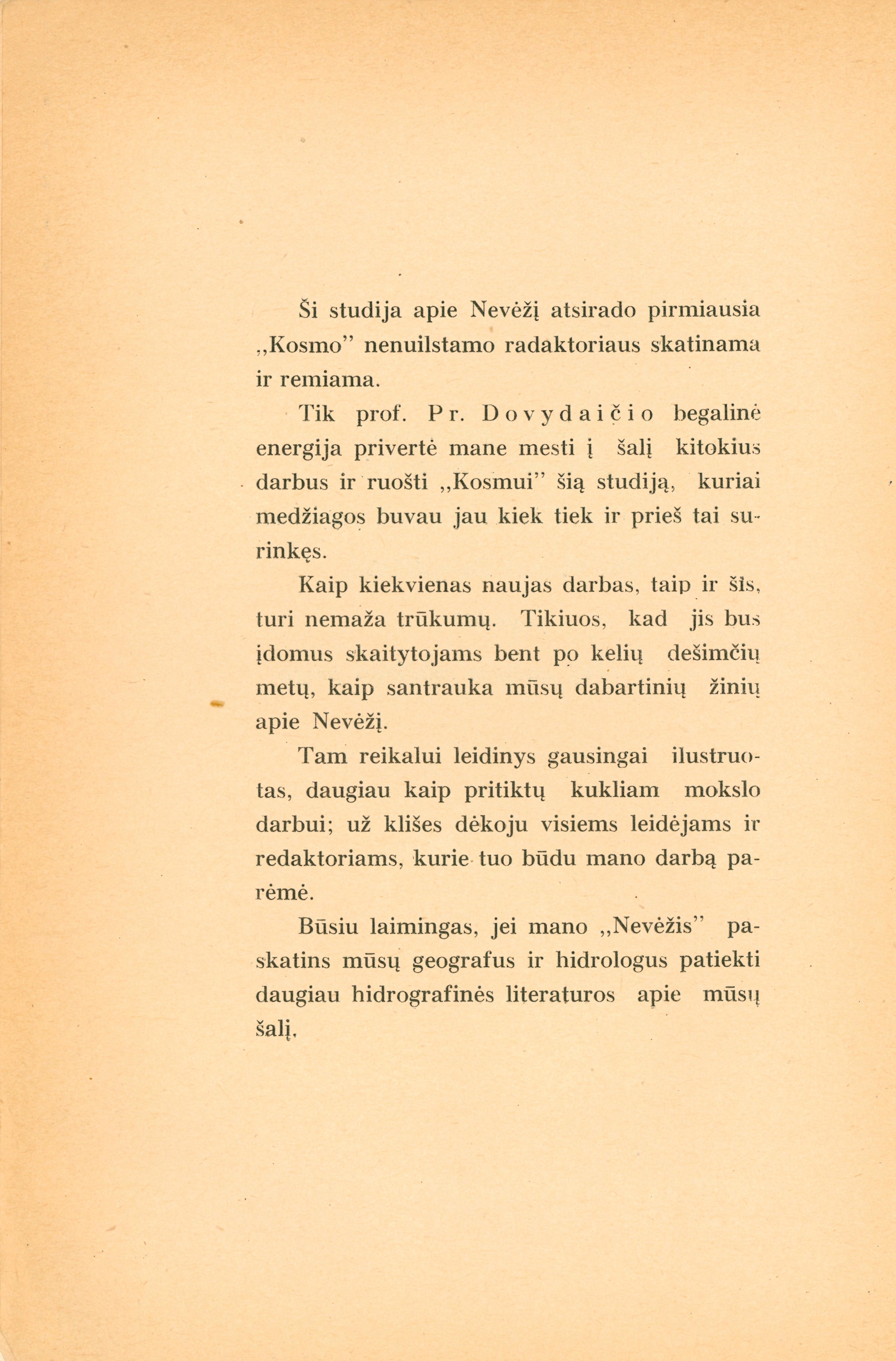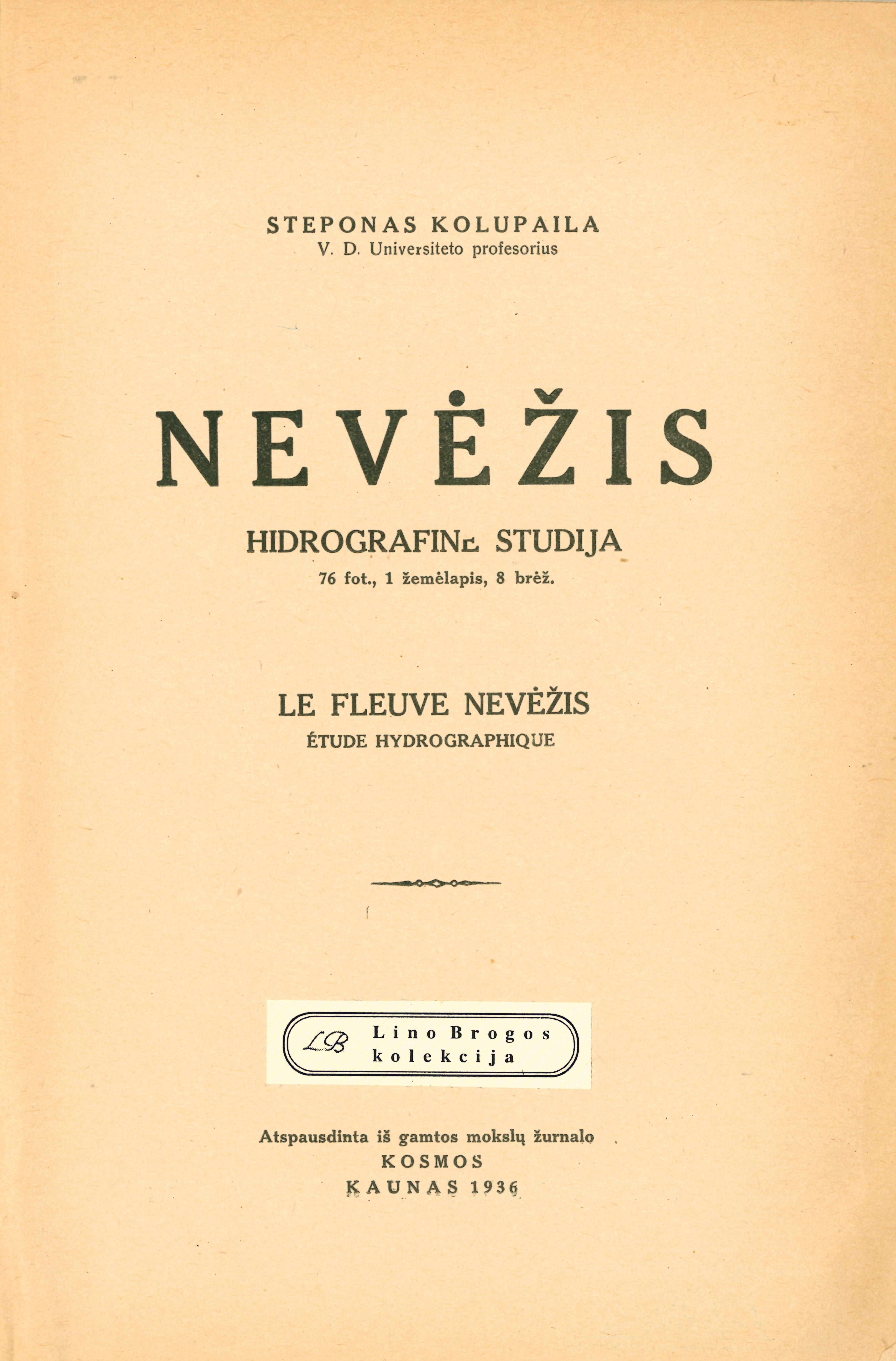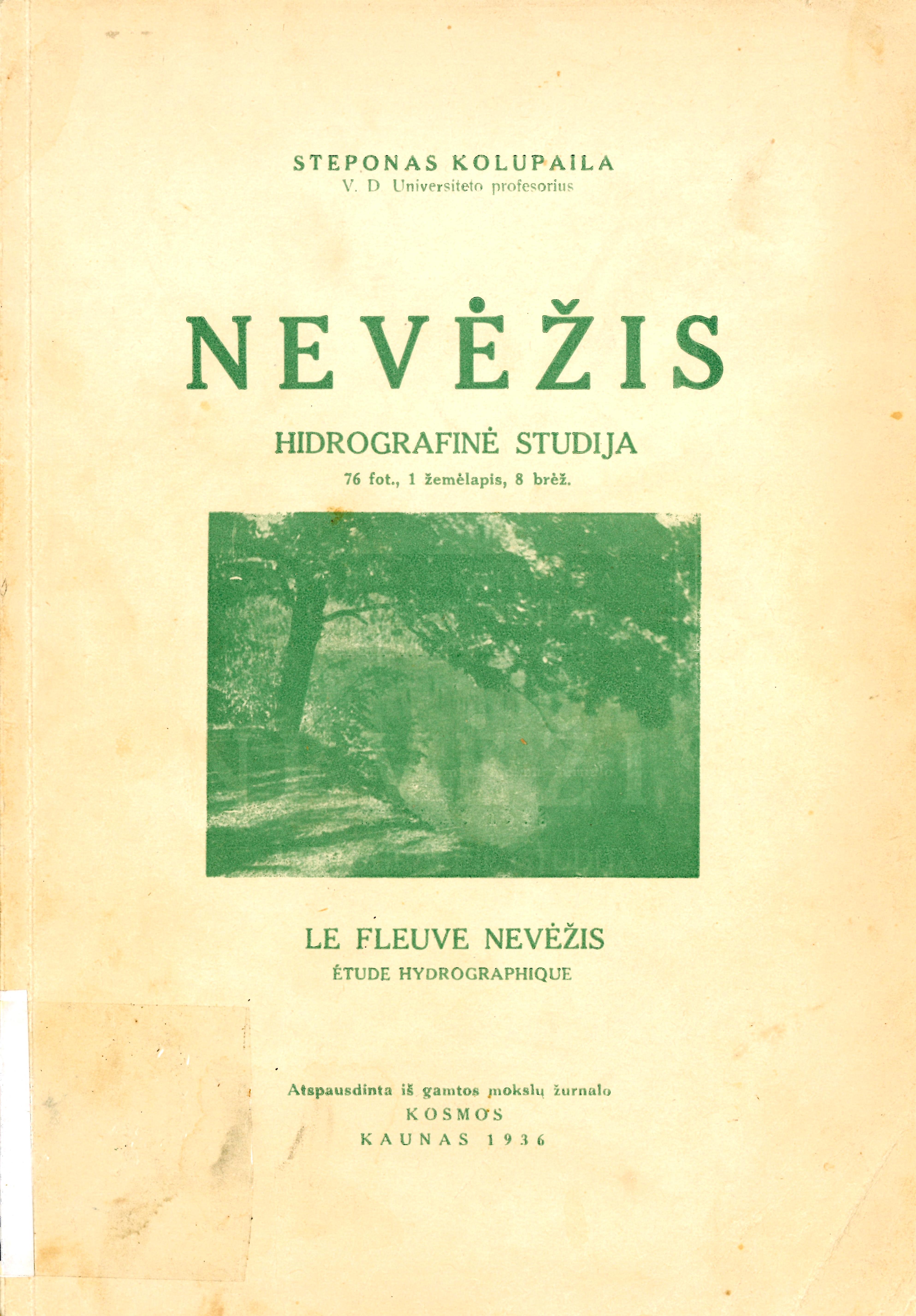 Nevėžis : hidrografinė studija / Steponas Kolupaila. – Kaunas, 1936. – Atspausdinta iš gamtos mokslų žurnalo Kosmos, 1935, Nr. 1/3, p. 17-80.