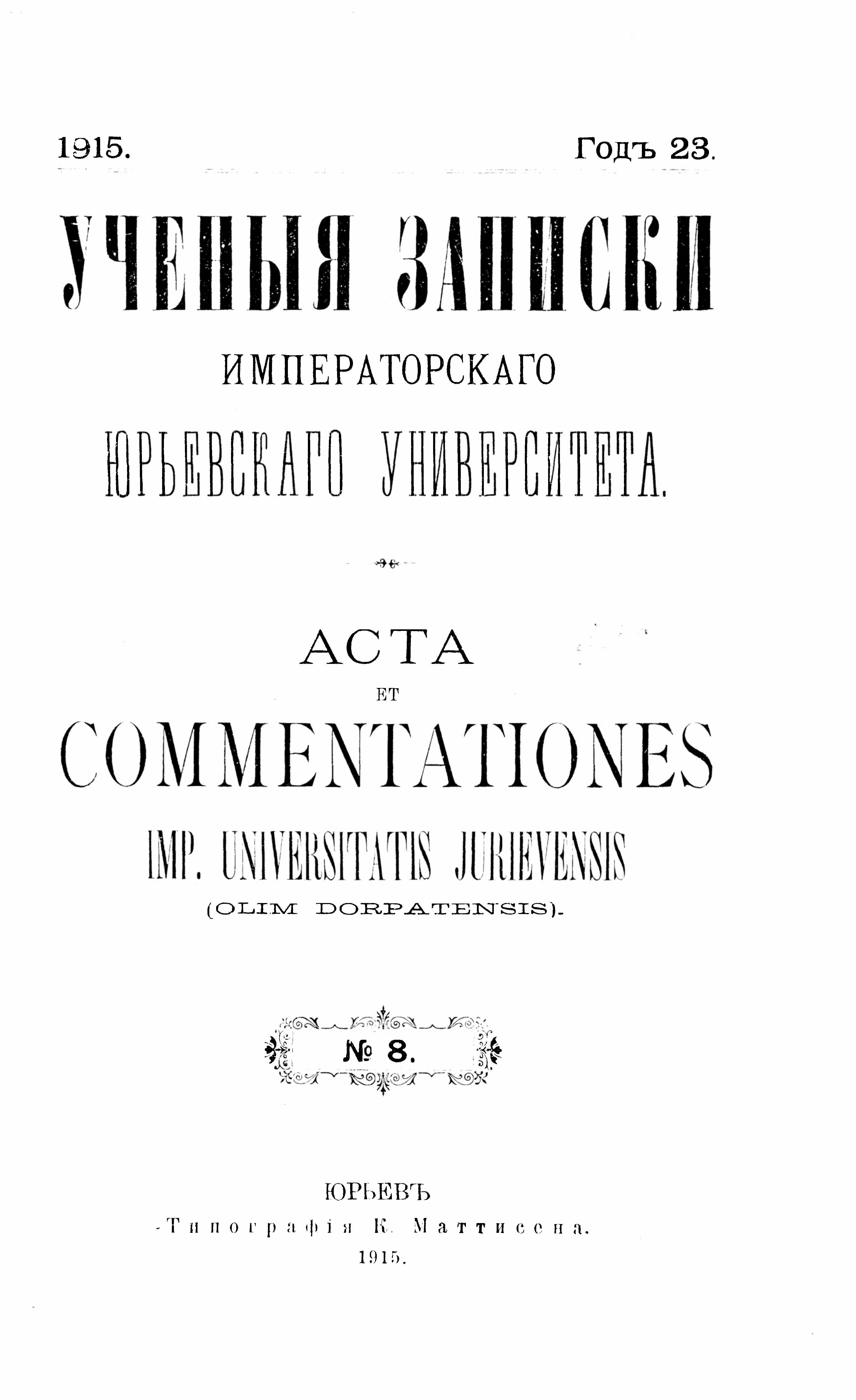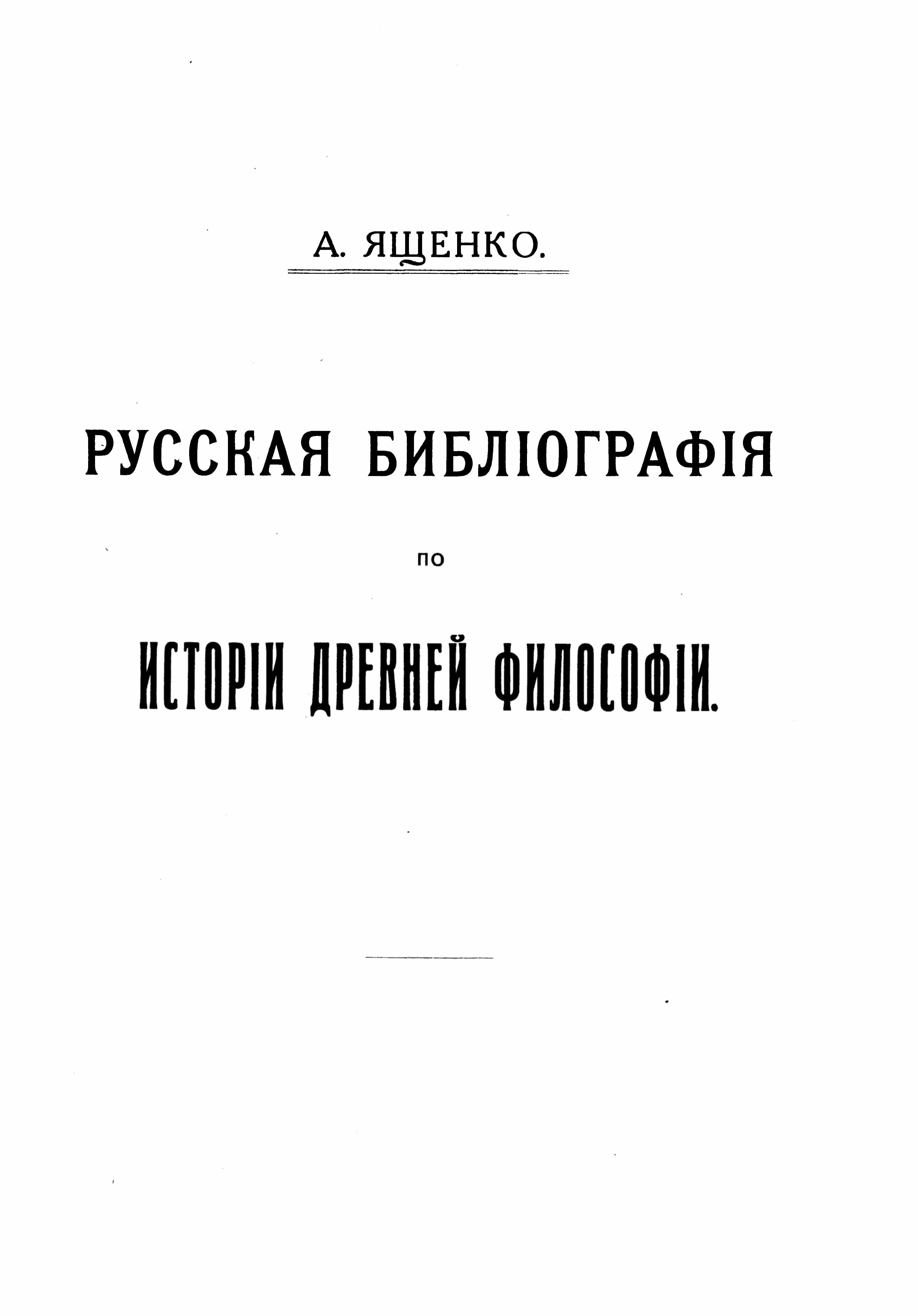 | Antraštė | Русская библиография по истории древней философии / А. Ященко. — Юрьев: типография К. Маттисена, 1915. – IV, 126 с. In: Ученые записки Императорского Юрьевского университета. Nr. 8 (1915). [ru] |