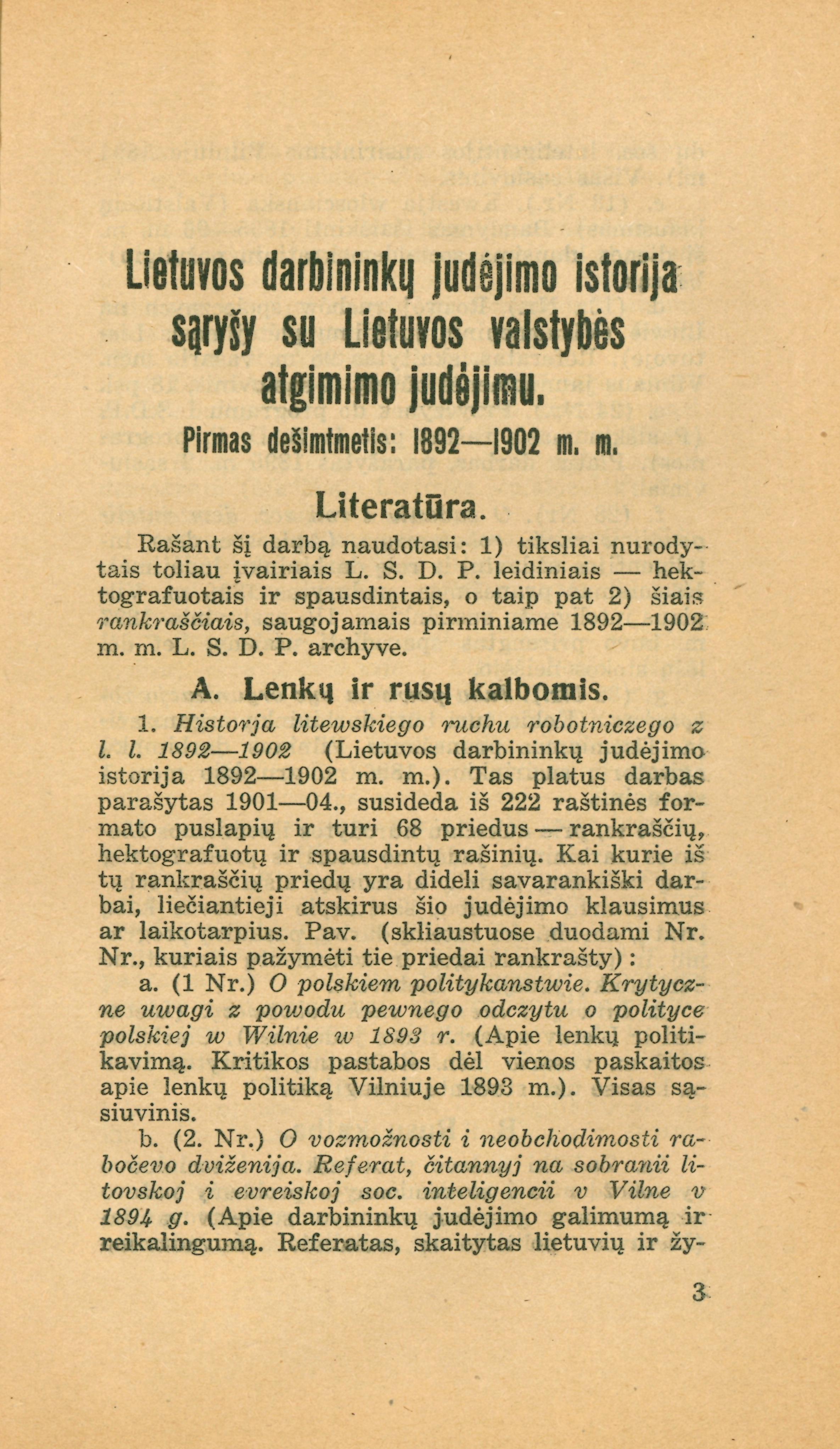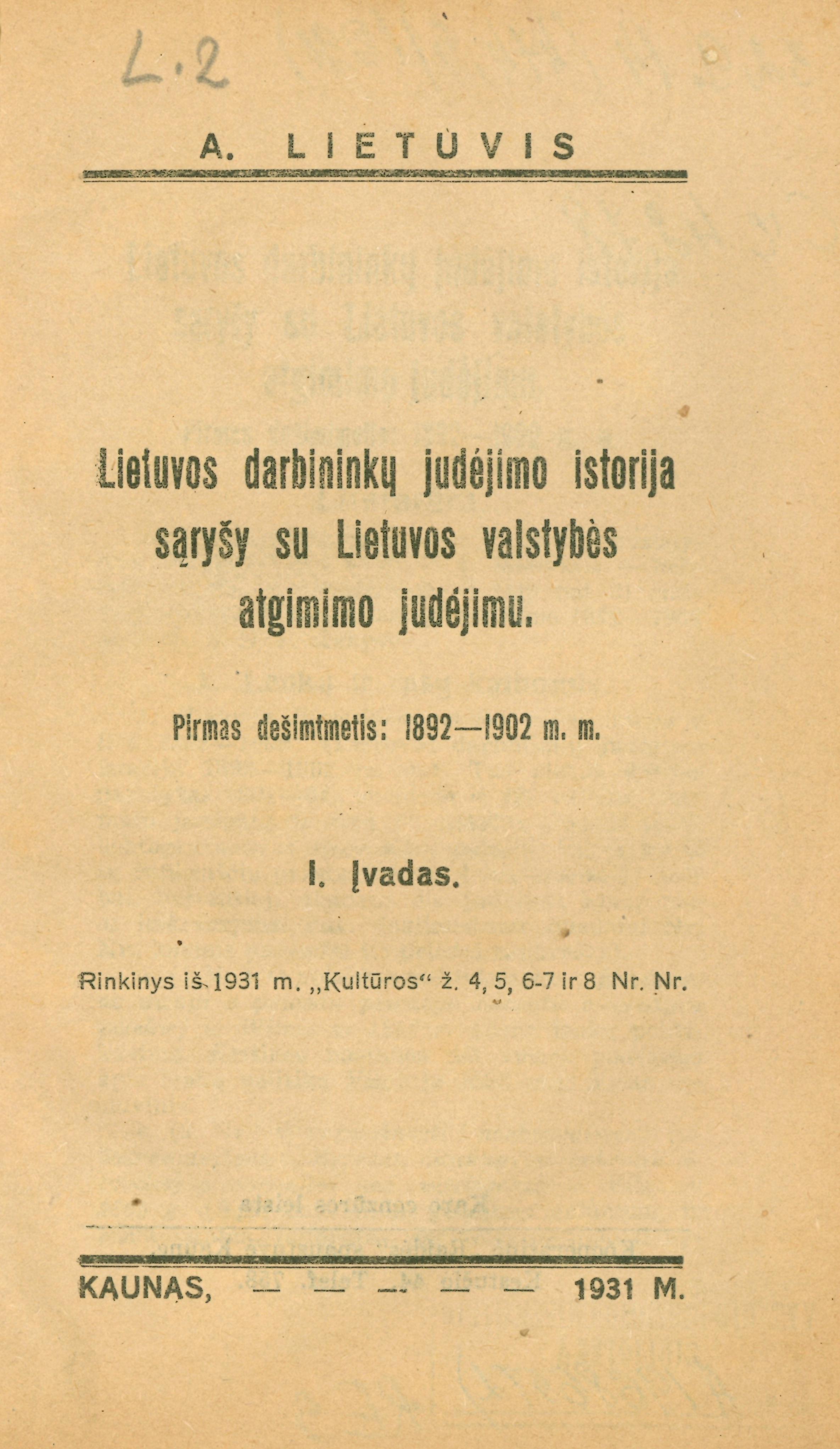 Antraštė Lietuvos darbininkų judėjimo istorija... (1931)