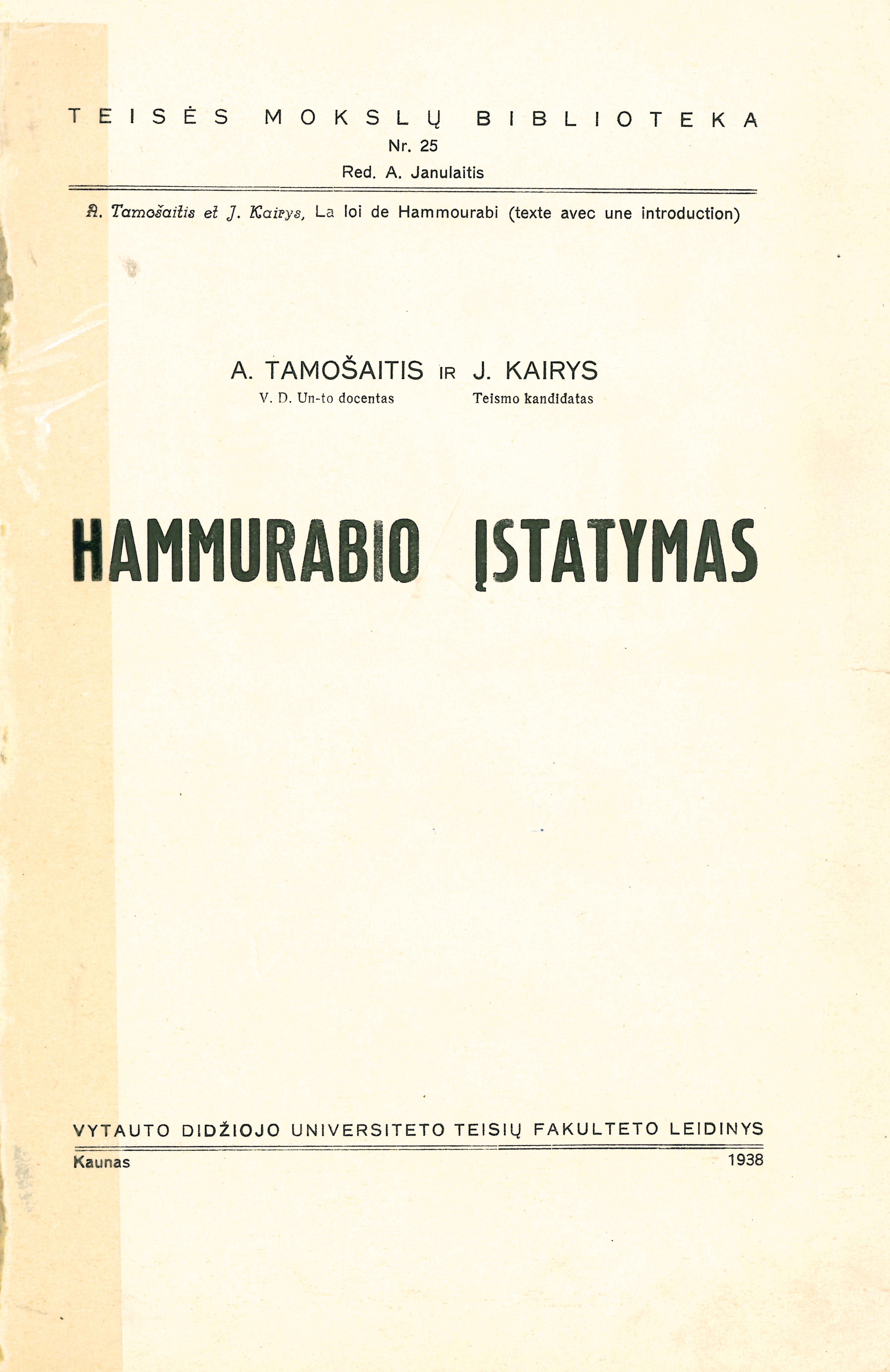 | Autorius | Antanas Tamošaitis, Teisių fakultetas |
