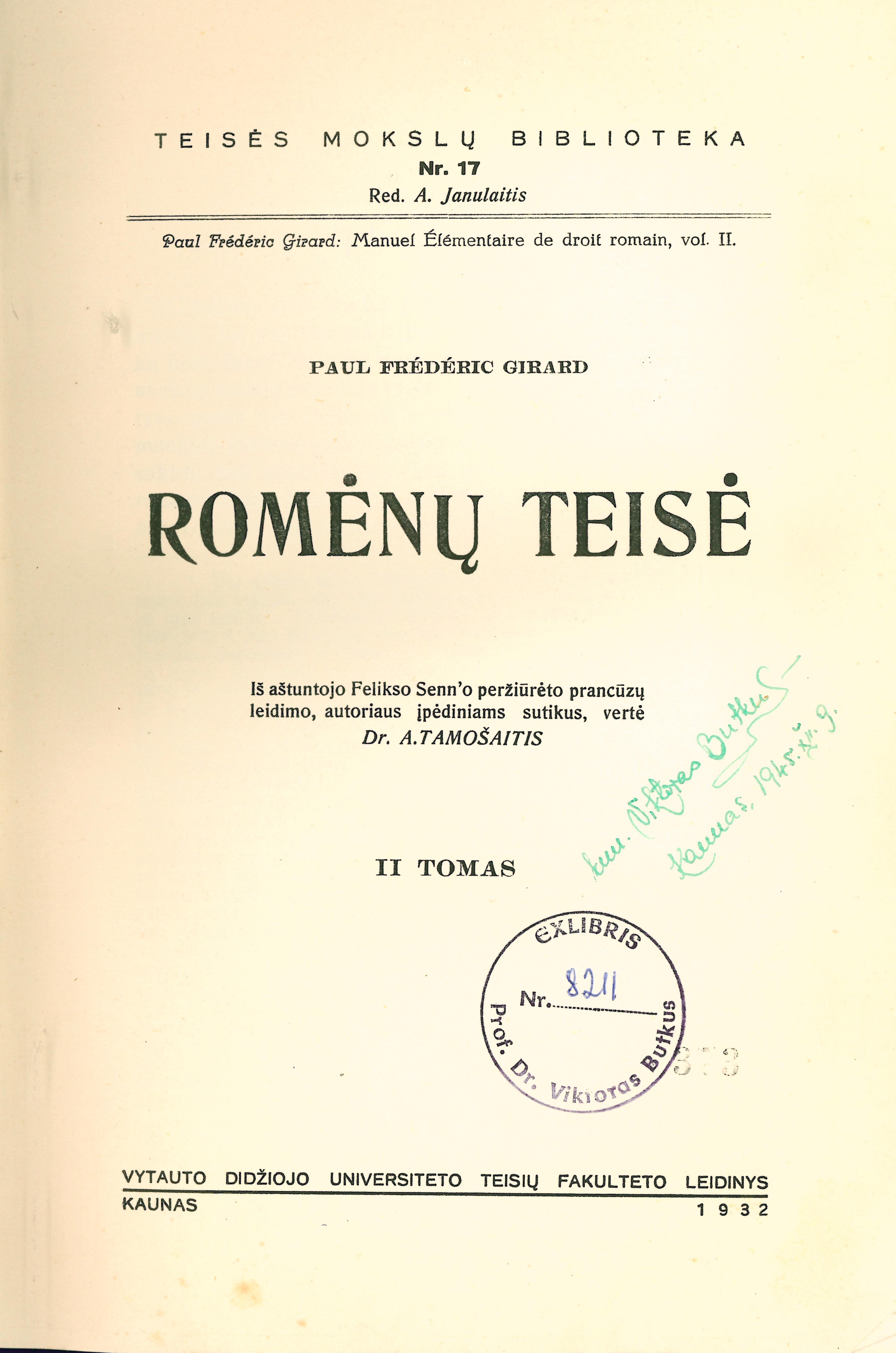 | Antraštė | Romėnų teisė. T. 2 (1932) |
