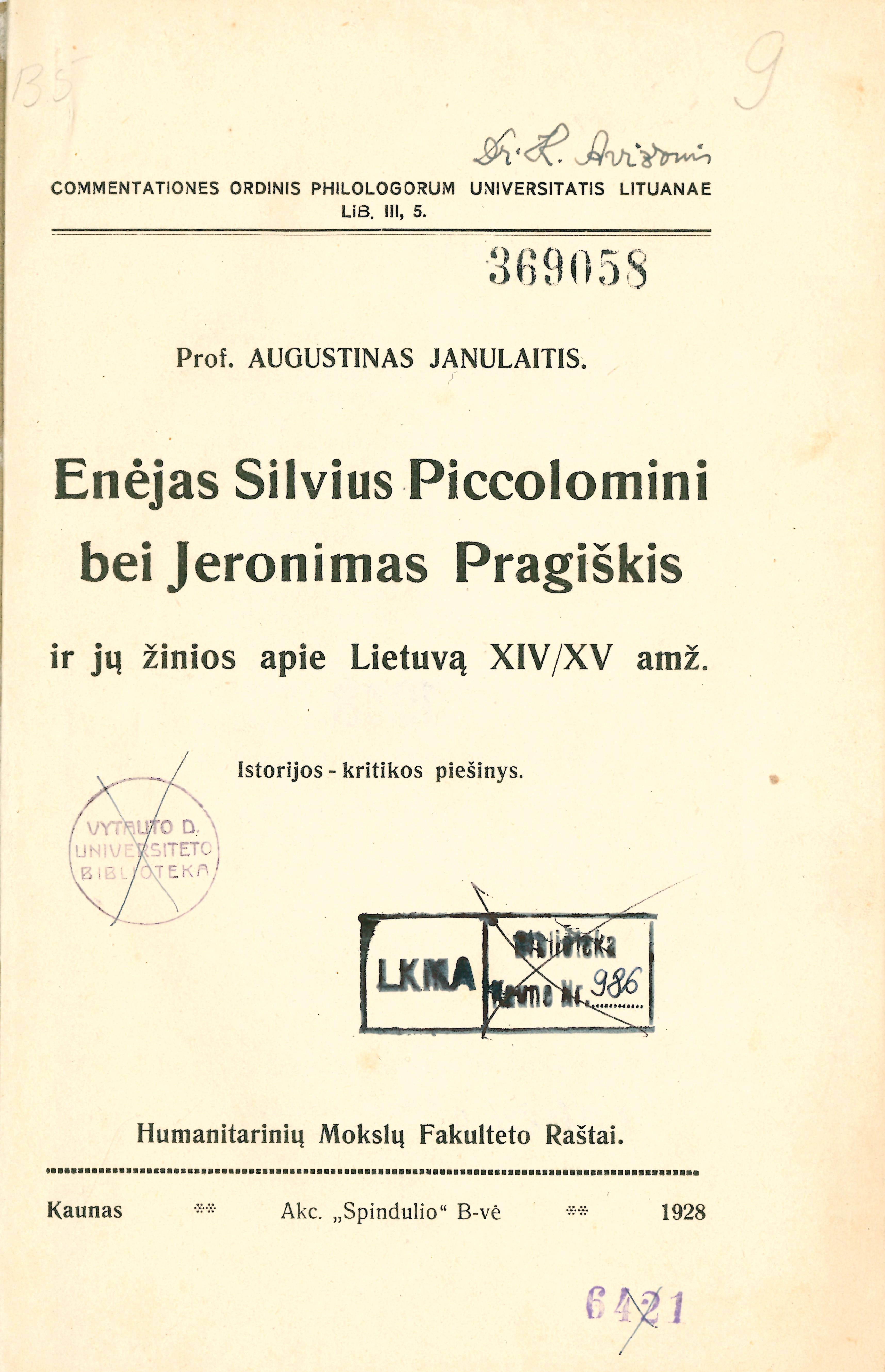 | Published | Kaunas: [Lietuvos universiteto Humanitarinių mokslų fakultetas], 1928 |