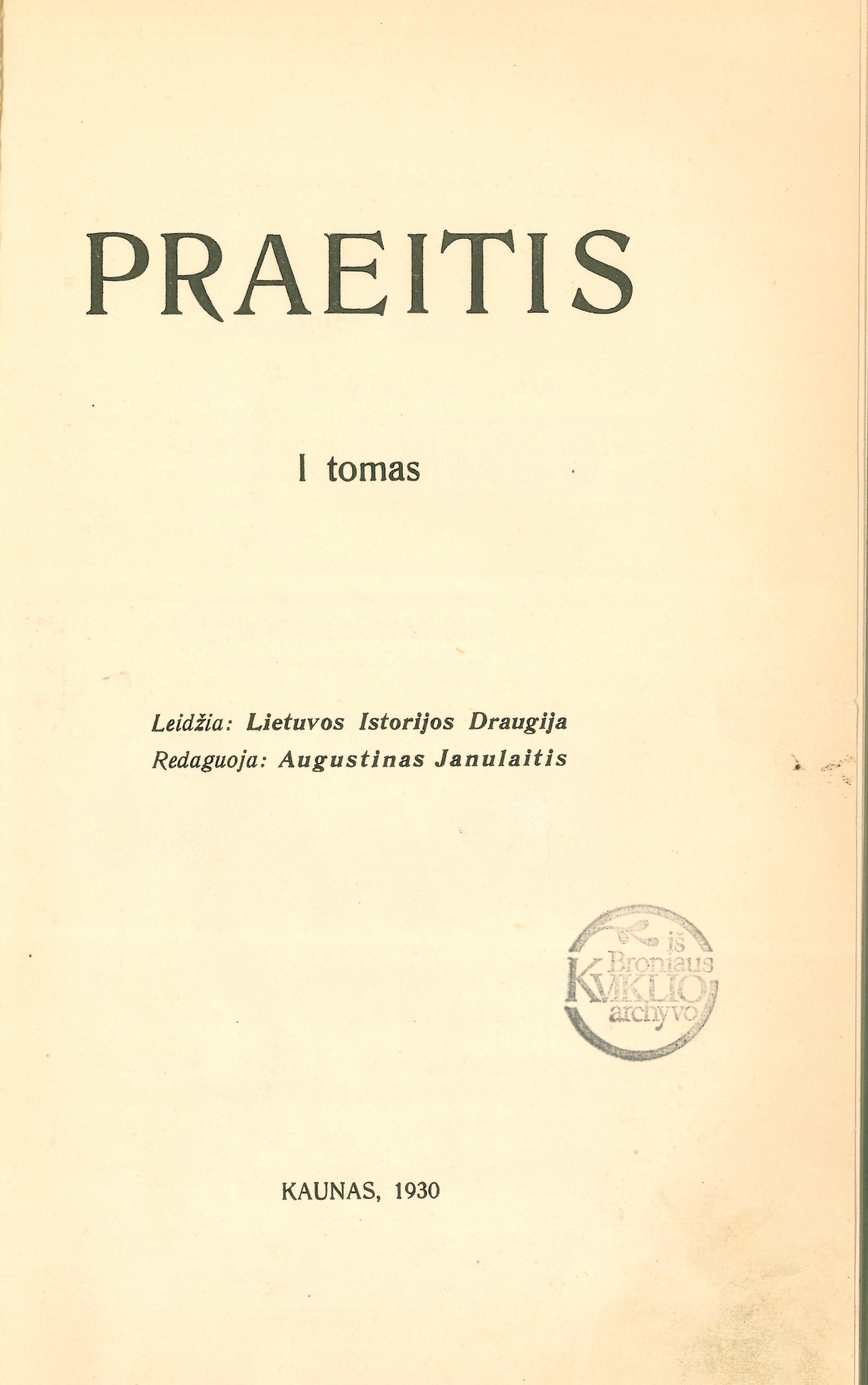 | Yra dalis | Praeitis. T. 1 (1930) |
