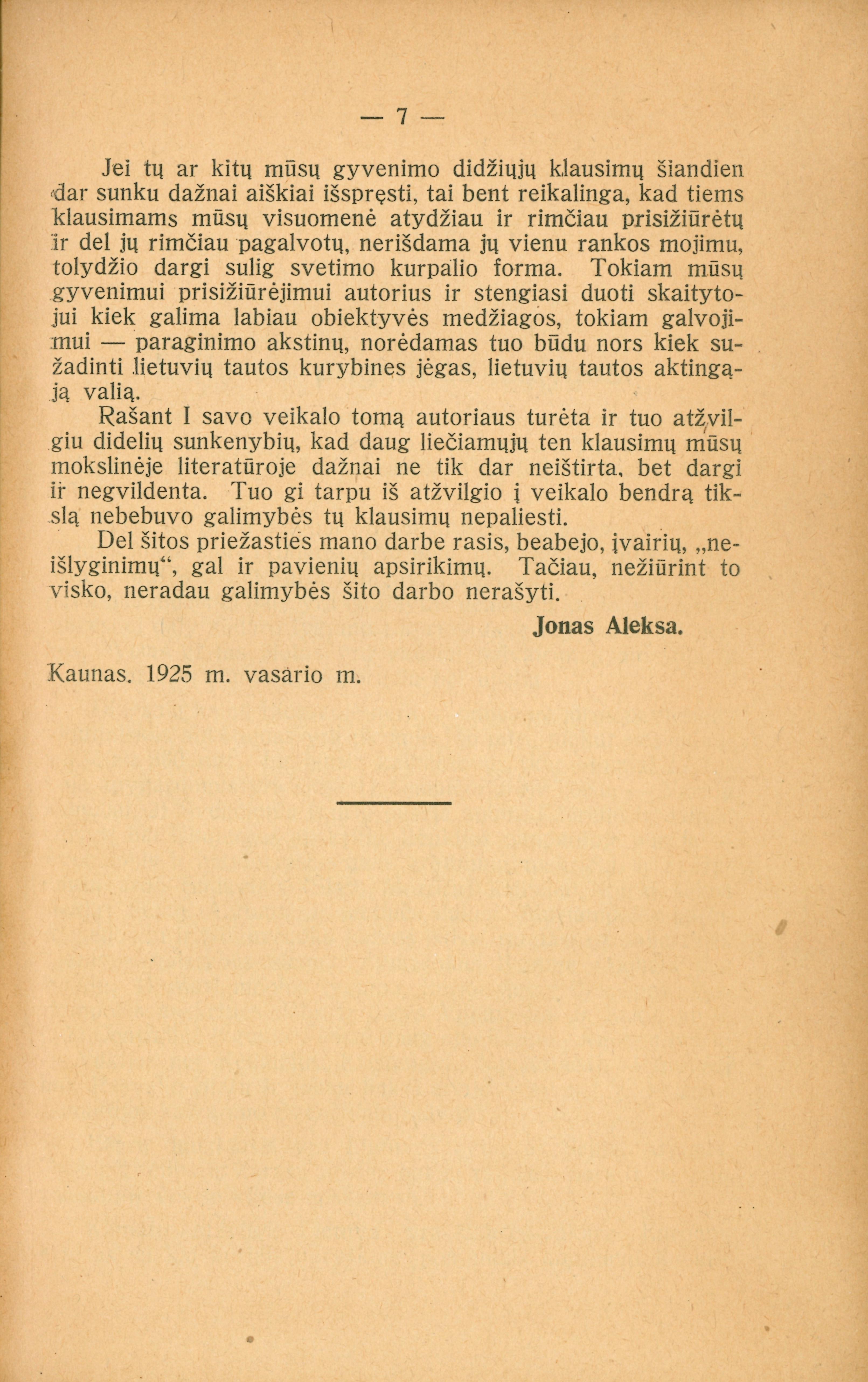 | Antraštė | Lietuvių tautos likimo klausimu. T. 1: Lietuvos kaimas ir žemės ūkis / Jonas Aleksa. – Kaunas: Lietuvos žemės ūkio koperatyvų sąjungos leidinys, 1925. – 339 p. [lt] |