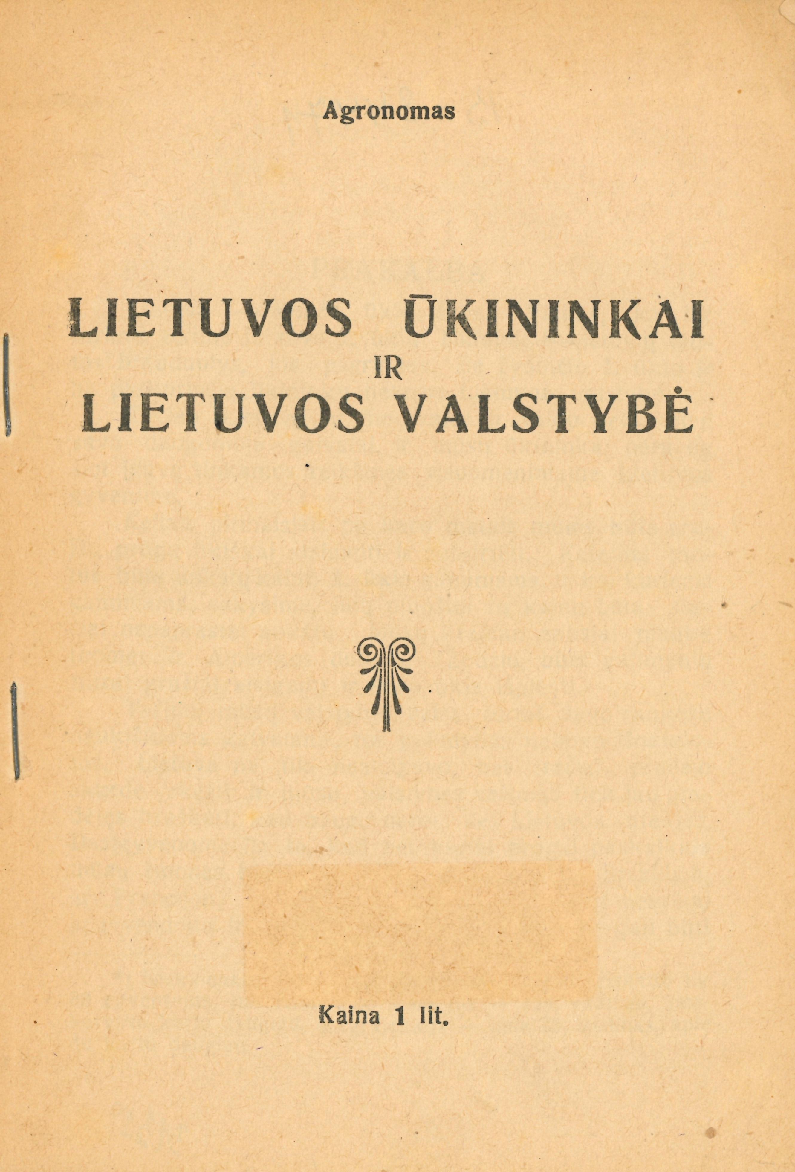 | Antraštė | Lietuvos ūkininkai ir Lietuvos valstybė (1926) [lt] |