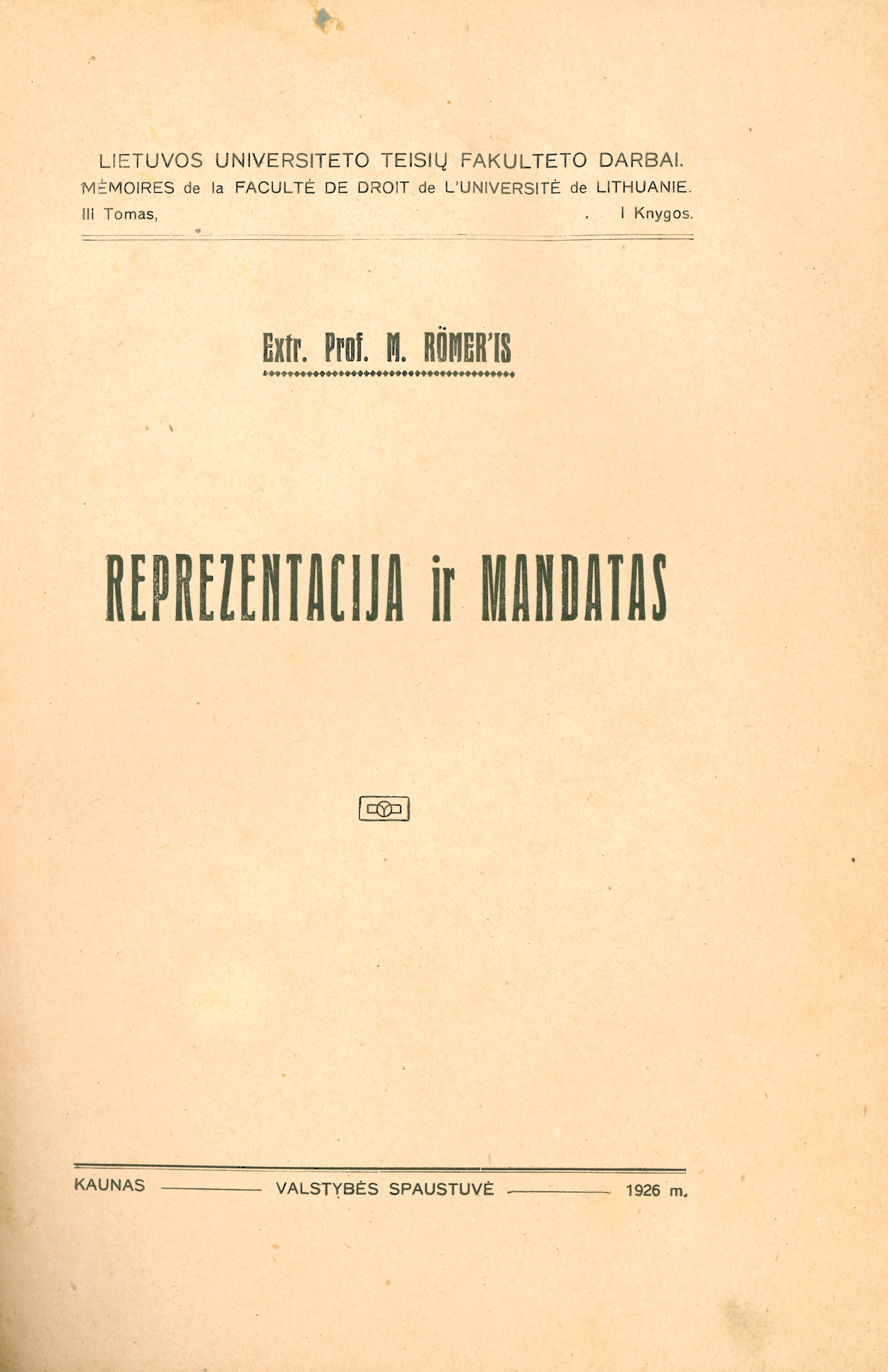 | Autorius | Mykolas Römeris, Teisių fakultetas |
