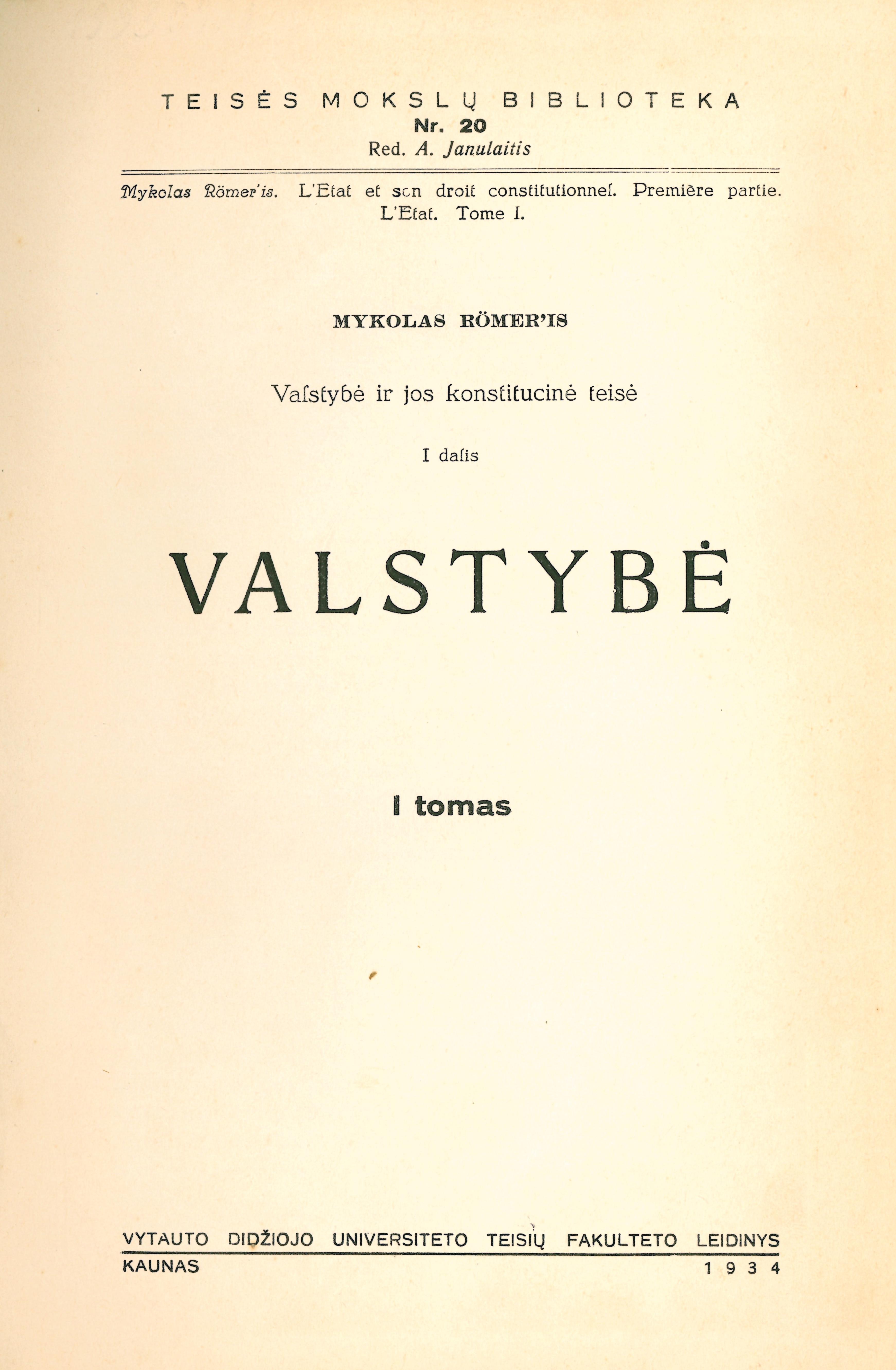 | Antraštė | Valstybė ir jos konstitucinė teisė. D. 1. T. 1 (1934) |