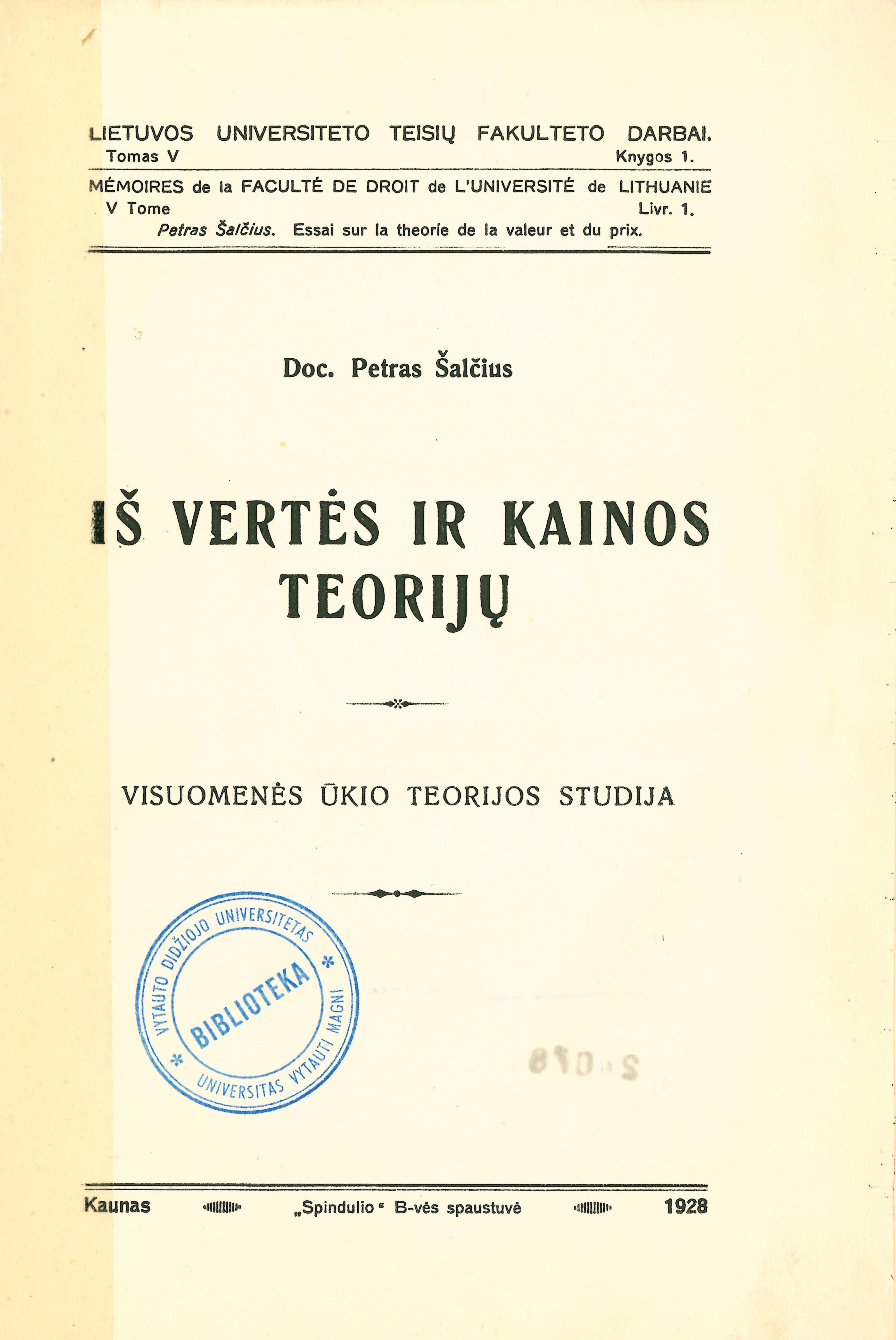 | Antraštė | Iš vertės ir kainos teorijų (1928) |