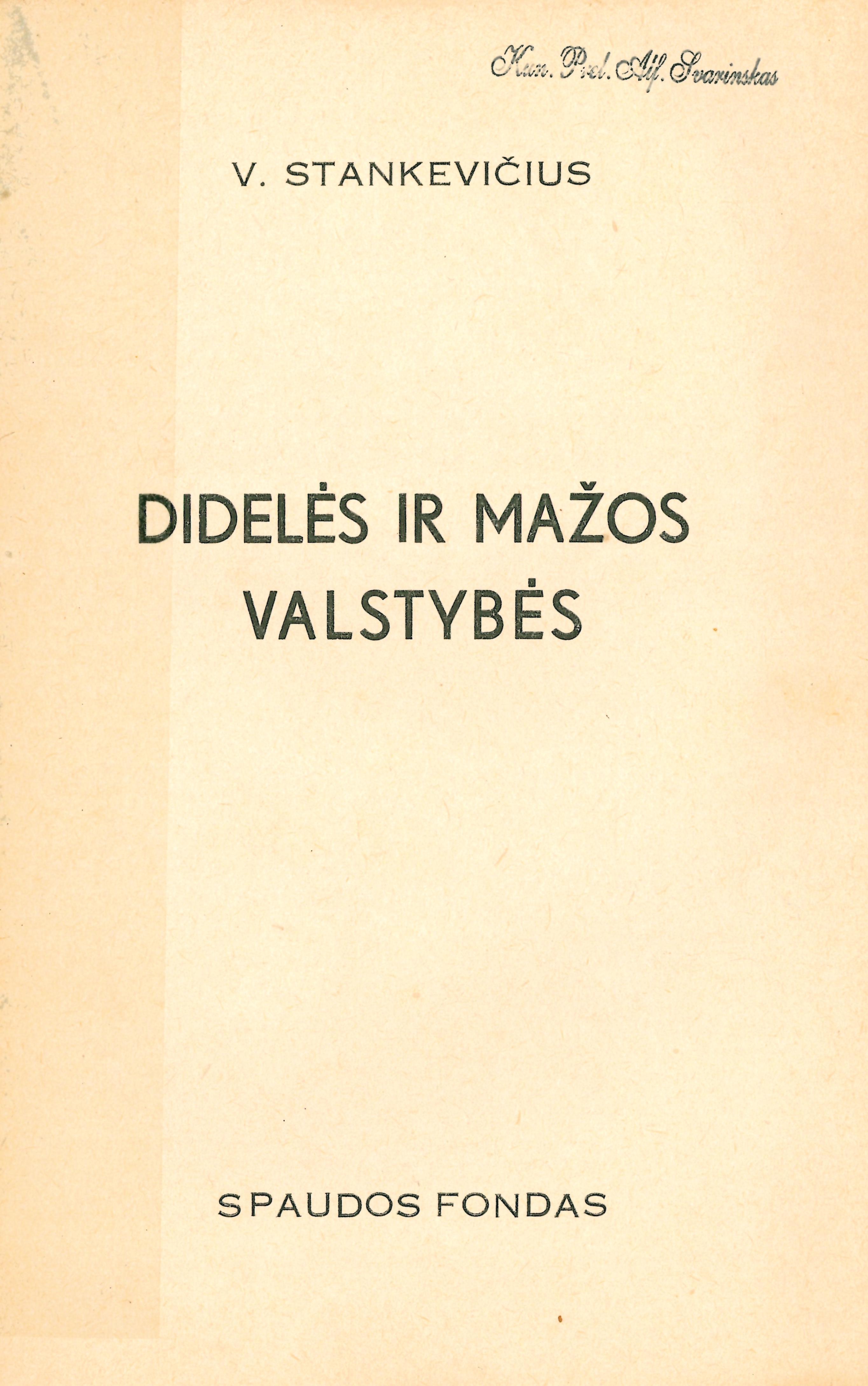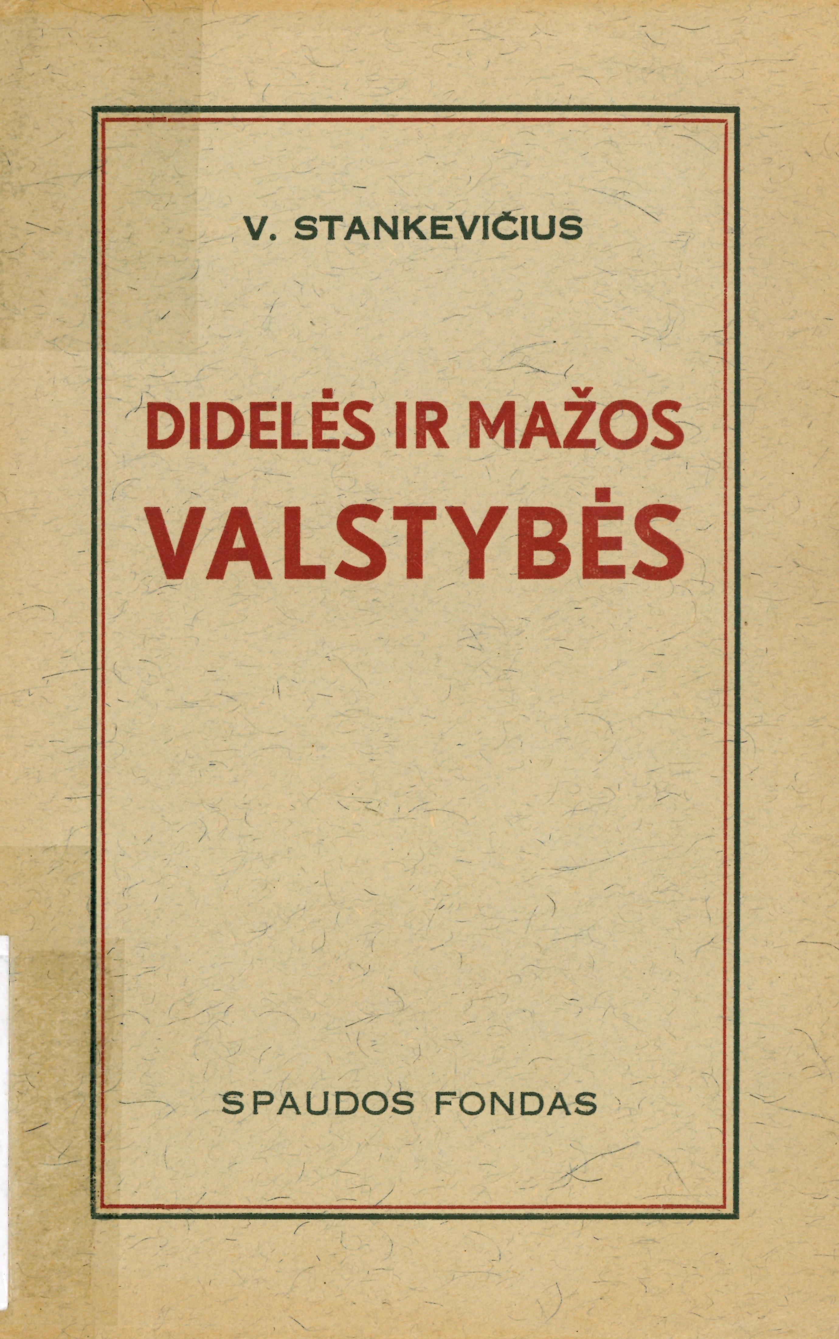 Didelės ir mažos valstybės / V. Stankevičius. – Kaunas : Spaudos fondas, 1938. – 128 p.