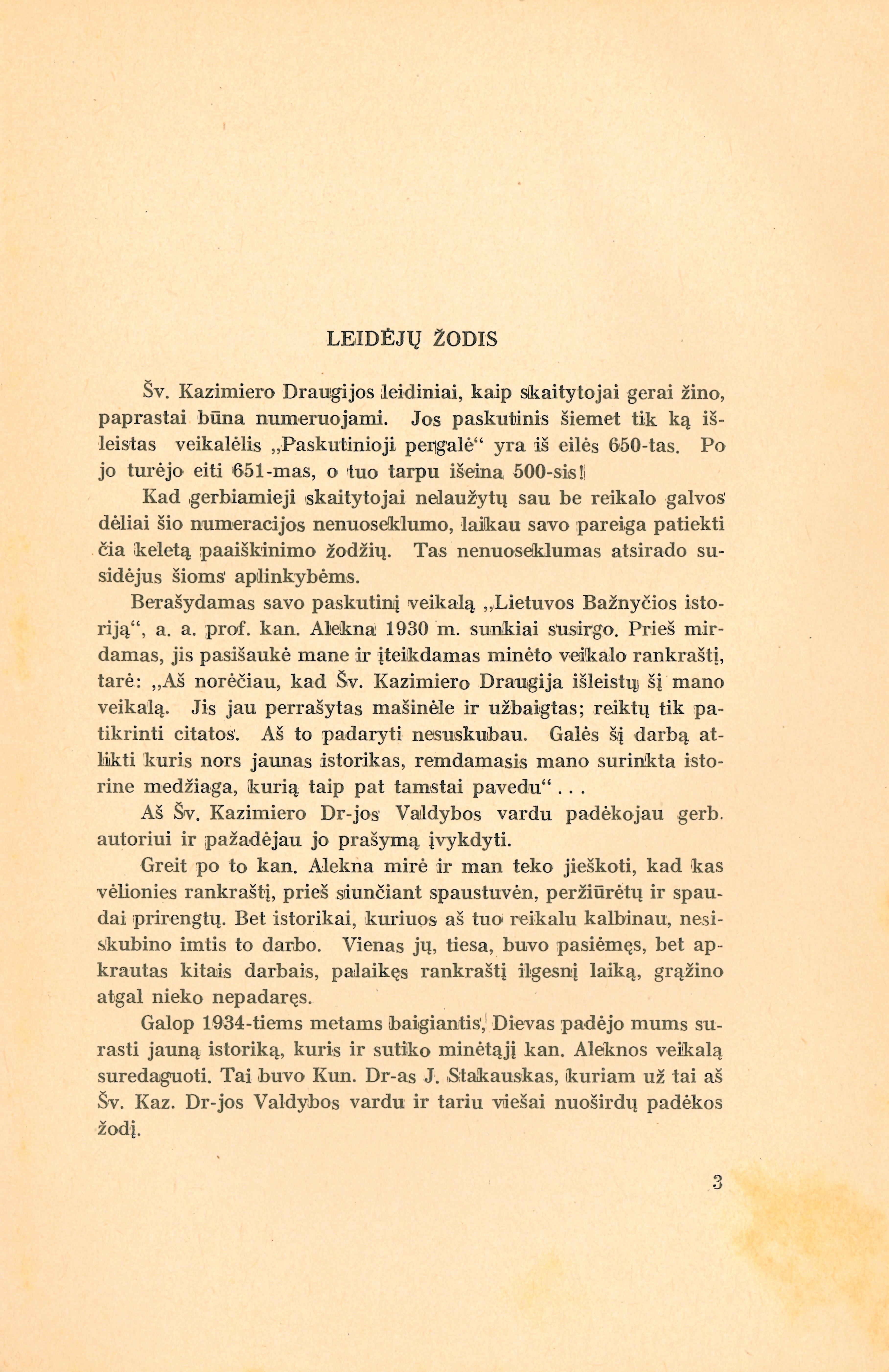 Katalikų Bažnyčia Lietuvoje / Antanas Alekna; redagavo J. Stakauskas. – Kaunas: Šv. Kazimiero draugijos leidinys, 1936. – 154, 4 p. (Šv. Kazimiero draugijos leidinys, nr. 500)