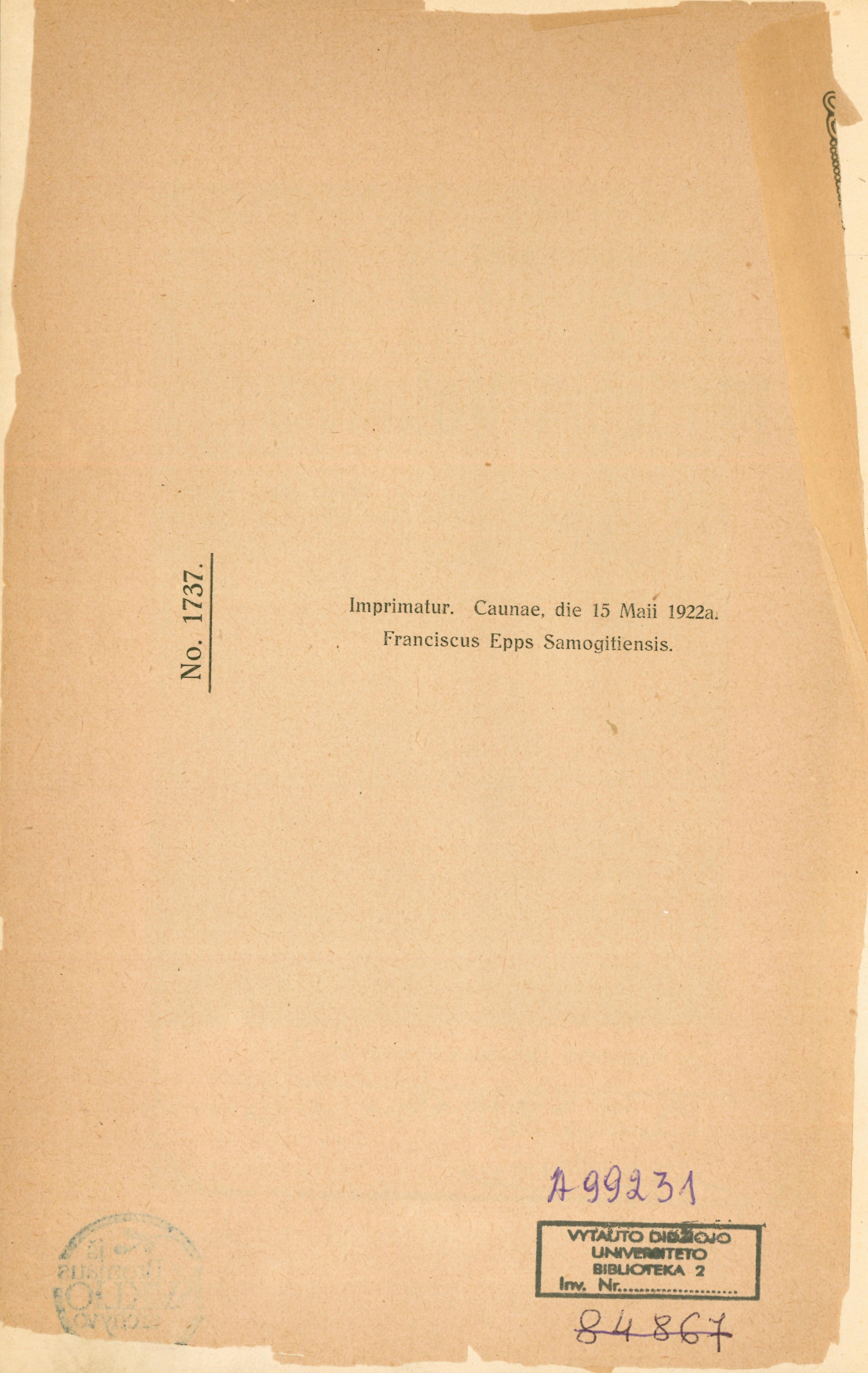 | Published | Kaunas : Šv. Kazimiero draugija, 1922 |