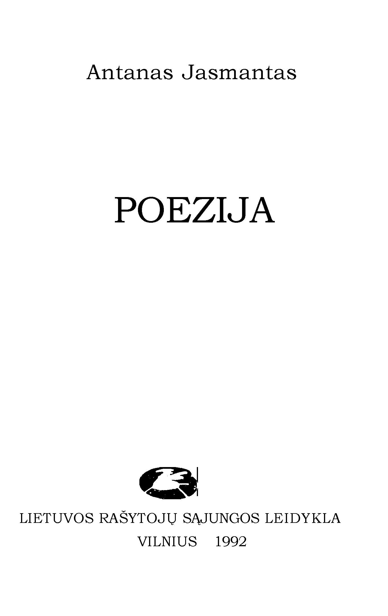 | Antraštė | Poezija / Antanas Jasmantas; sudarė ir redagavo Alfonsas Bukontas. – Vilnius: Lietuvos rašytojų sąjungos leidykla, 1992. – 172 p. [lt] |