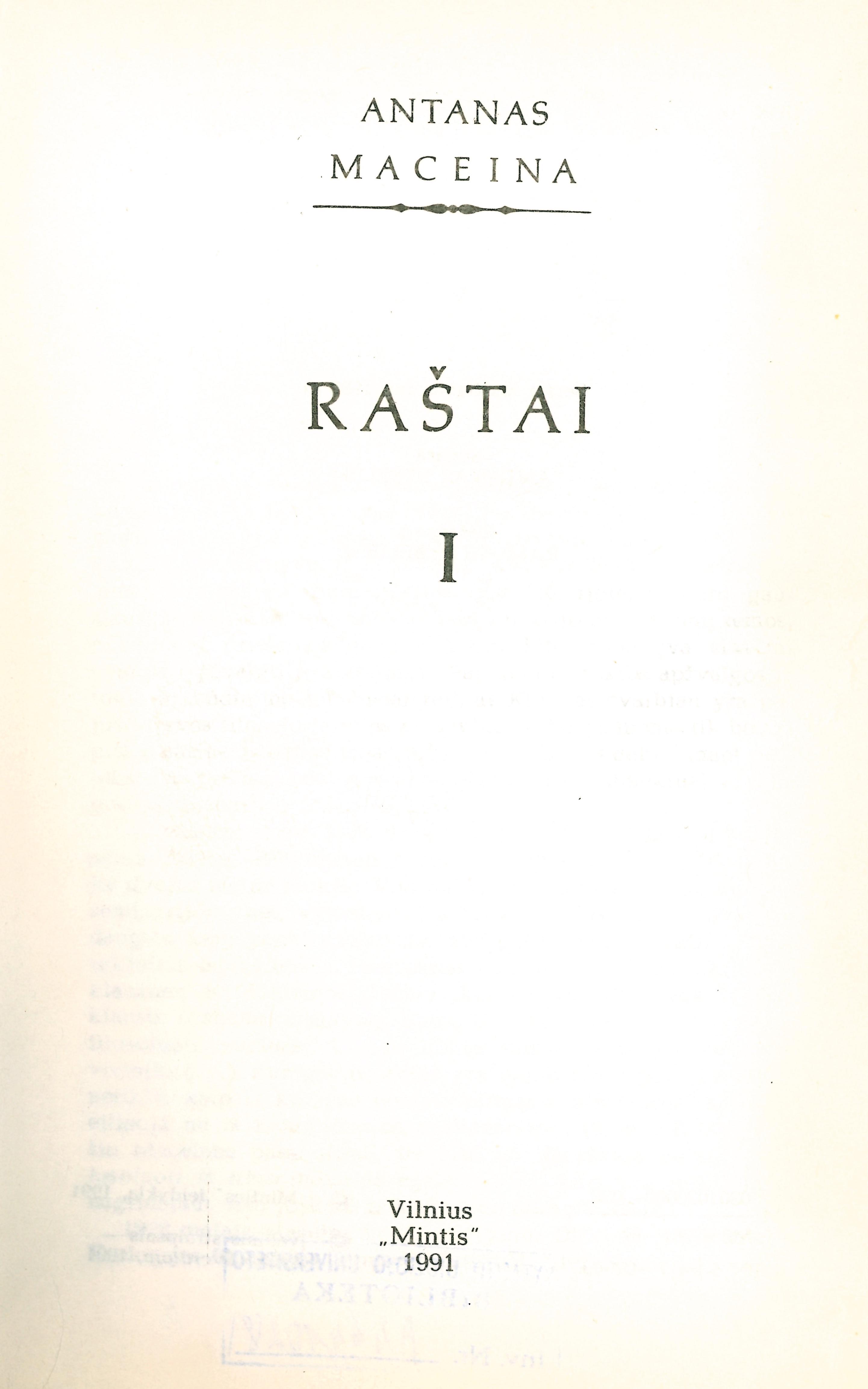 | Antraštė | Raštai. T. 1: Kultūros filosofija / Antanas Maceina; sudarė Antanas Rybelis. – Vilnius: Mintis, 1991. – 539 p. [lt] |