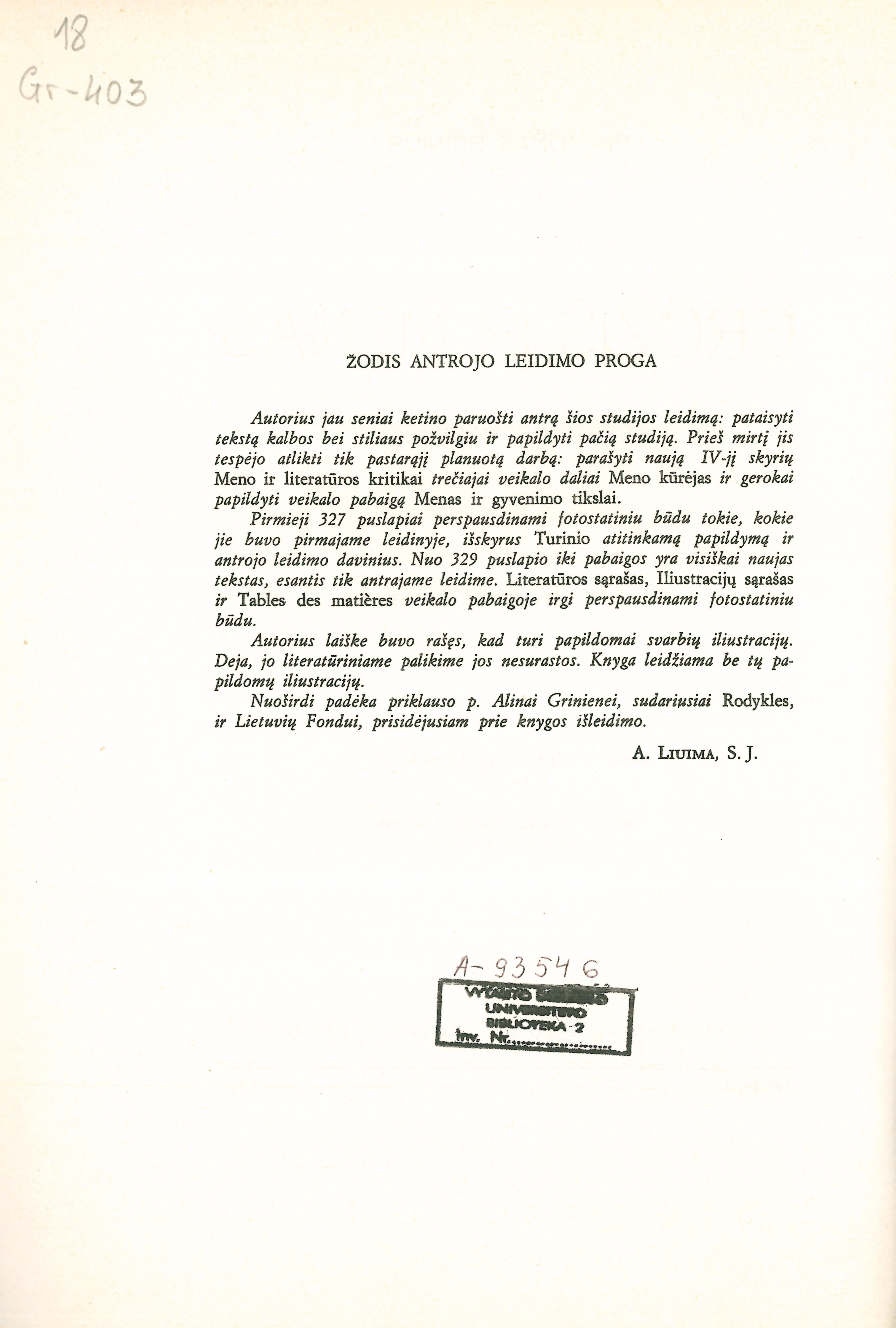 Grožis ir menas: estetikos pagrindai / Jonas Grinius. – 2–asis pataisytas ir papildytas leidimas. – Roma: Lietuvių katalikų mokslo akademija, 1981. – 399, [40] p.