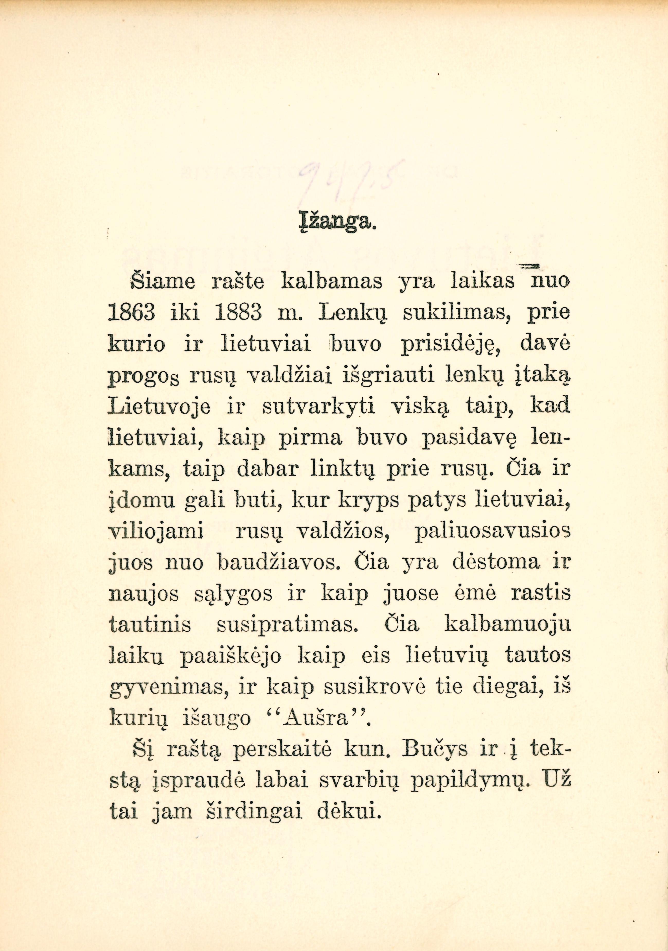 Antraštė Lietuvos atgijimas [1863-1883 m.] / Jonas Totoraitis. – Chicago: Draugas, [1922]. – 128 p. [lt]