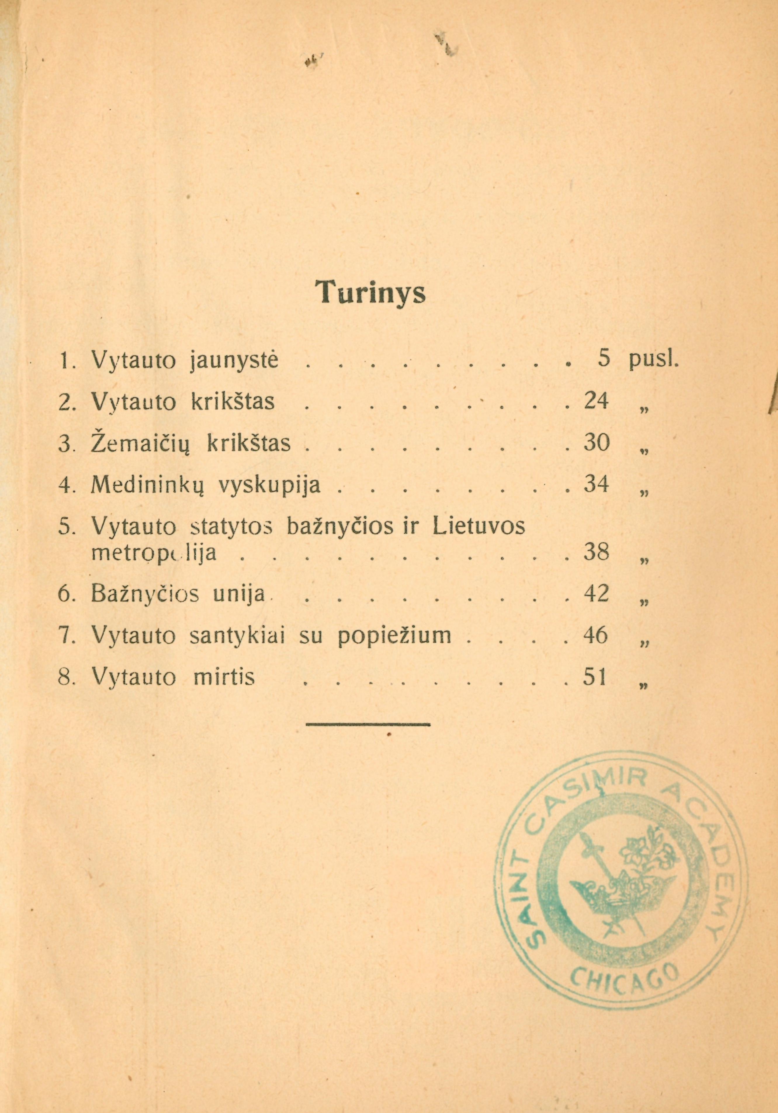 Vytautas katalikas / J. Totoraitis. – Marijampolė : Marijonų sp, 1930. – 54 p. : iliustr. – („Šaltinio“ knygynėlis ; Nr. 20)