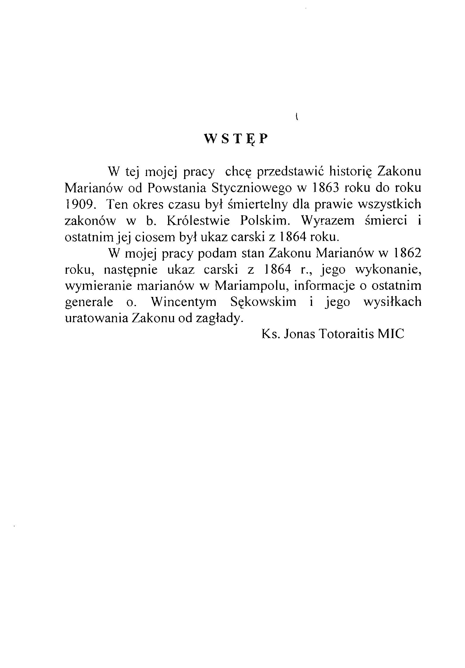 | Antraštė | Zakon Marianów od kasaty do odnowienia / Jonas Totoraitis; tłumaczenie z litewskiego Bolesław Jakimowicz. – [Wydanie 2-ie]. – Warszawa: Mariański Instytut Historyczny, 2002. – 117 p. (Studia Marianorum, t. 4) [pl] |