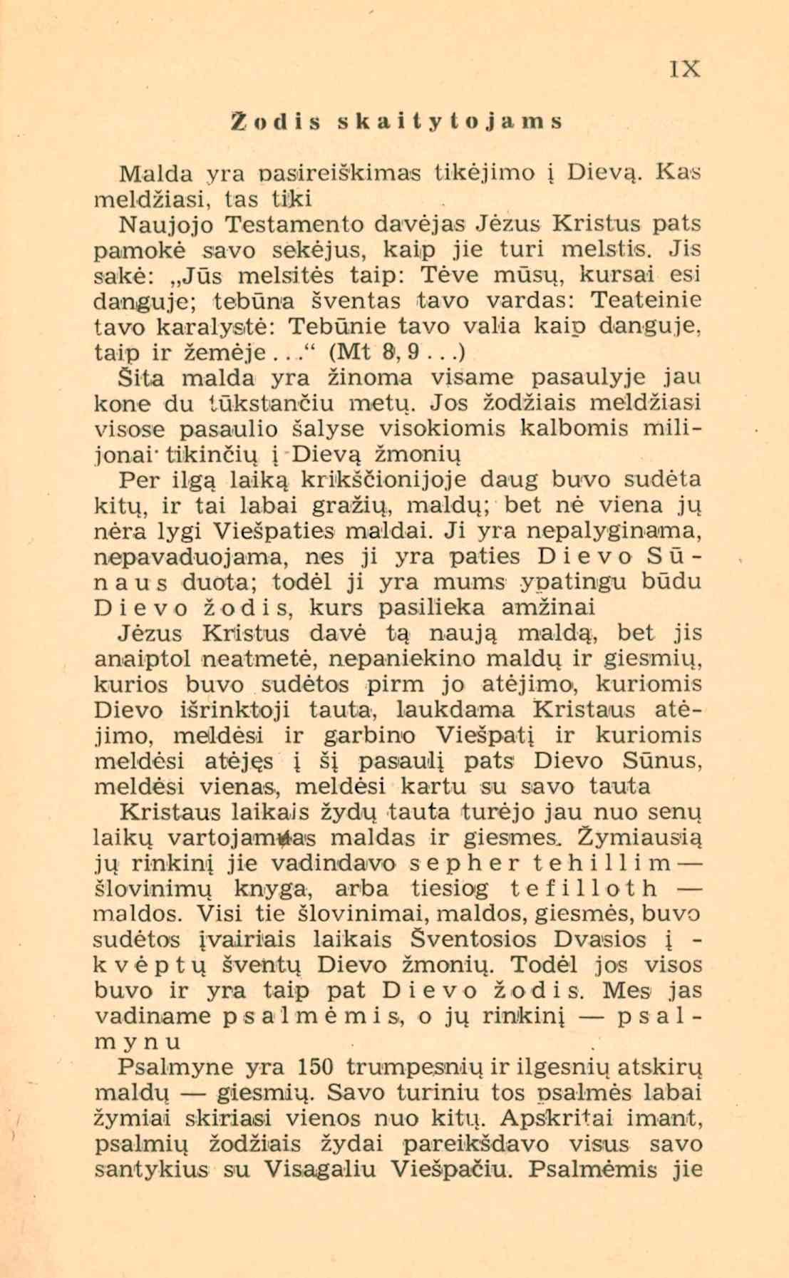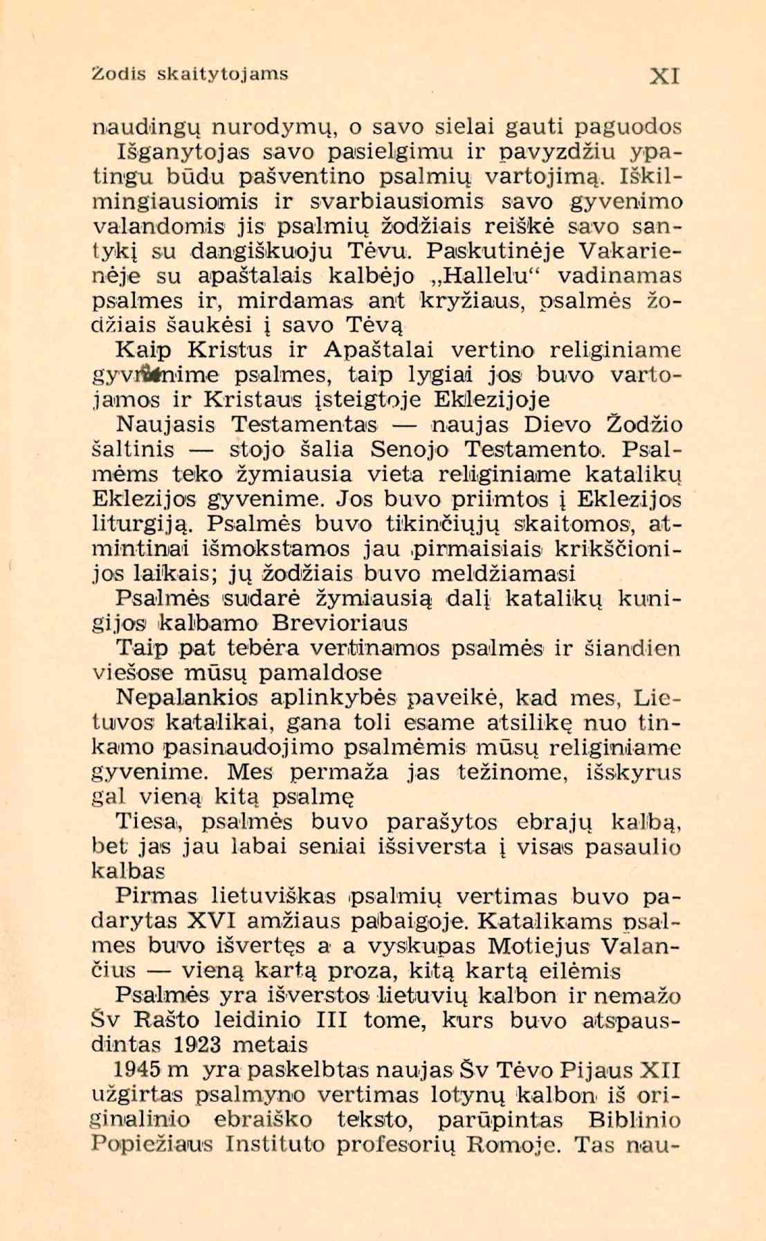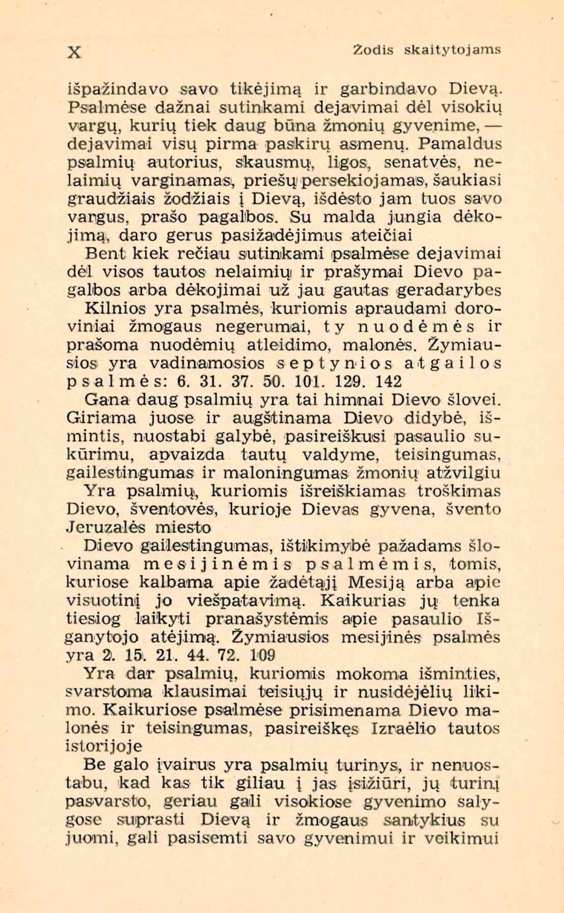 | Psalmių knyga. Vertimas lietuvių kalbon [su Vulgatos tekstu] / parūpino [išvertė ir komentarus parašė] Juozapas Skvireckas. - Stuttgart: Lux, 1949. – XIX, 521 p. [lt] | |
