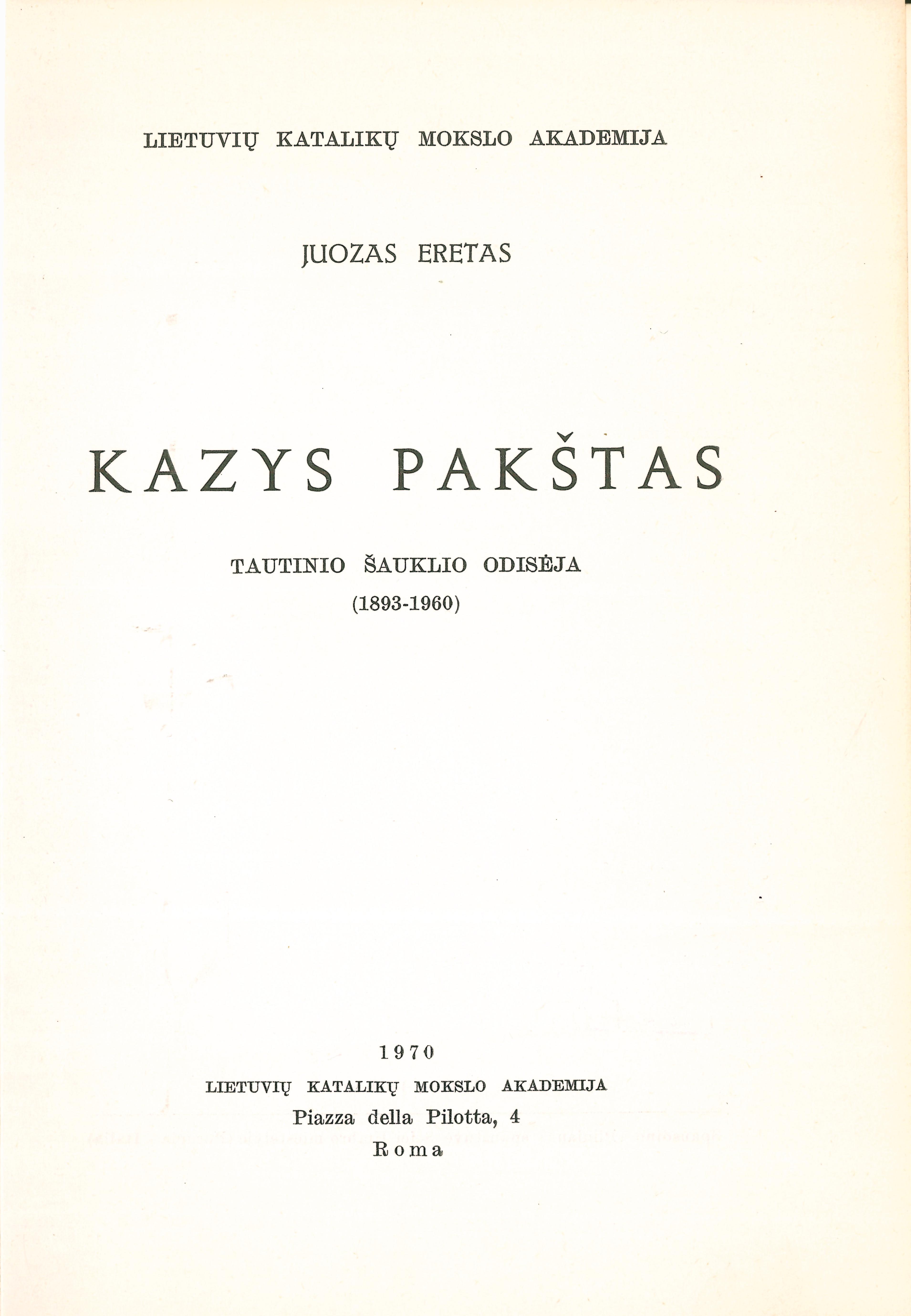 | Antraštė | Kazys Pakštas (1970) |