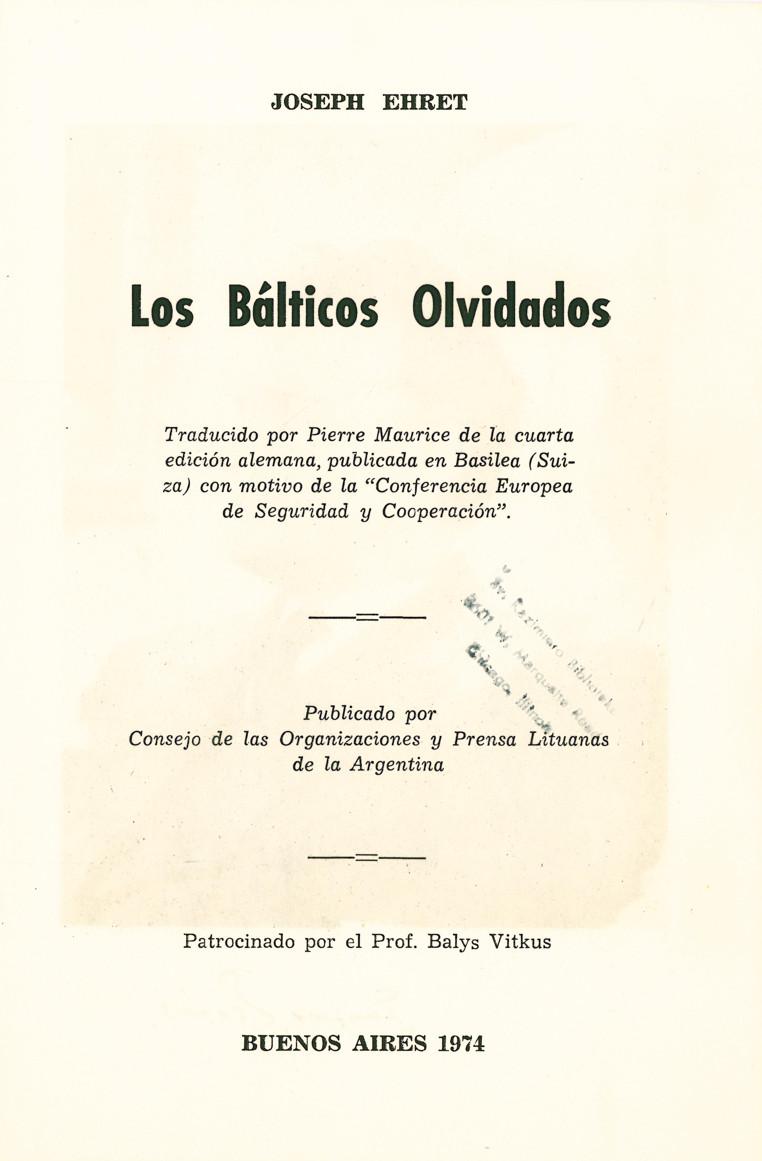 | Published | Buenos Aires: Consejo de las Organizaciones y Prensa Lituanas de la Argentina, 1974 |