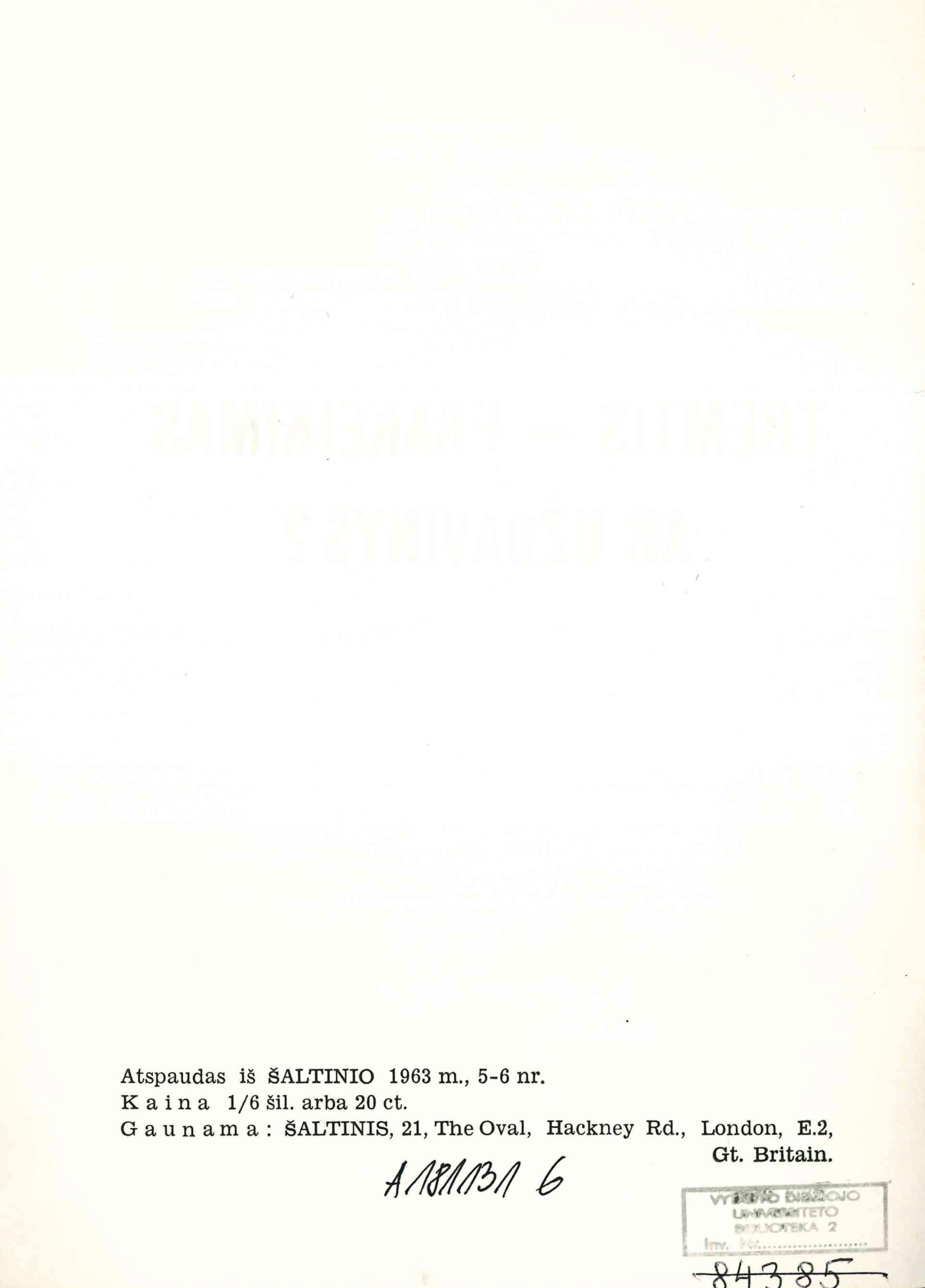 | Tremtis – prakeikimas ar uždavinys? / Juozas Eretas. – London: Šaltinis, [1963]. – 16 p. [lt] | |