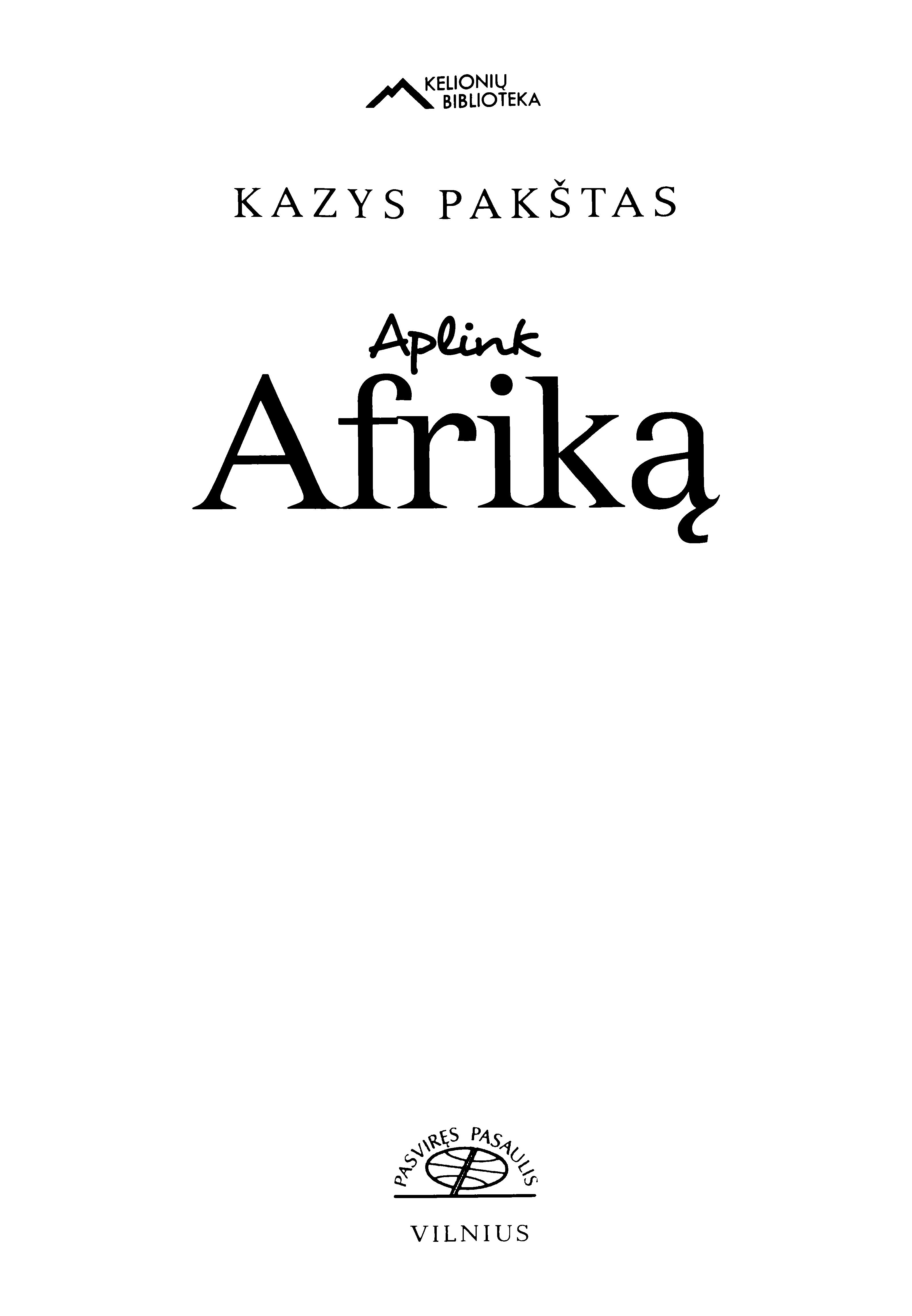 | Antraštė | Aplink Afriką / Kazys Pakštas; parengė Silvestras Gaižiūnas. – [2–as leidimas]. – Vilnius: Pasviręs pasaulis, 2007. – 309, [3] p. [lt] |