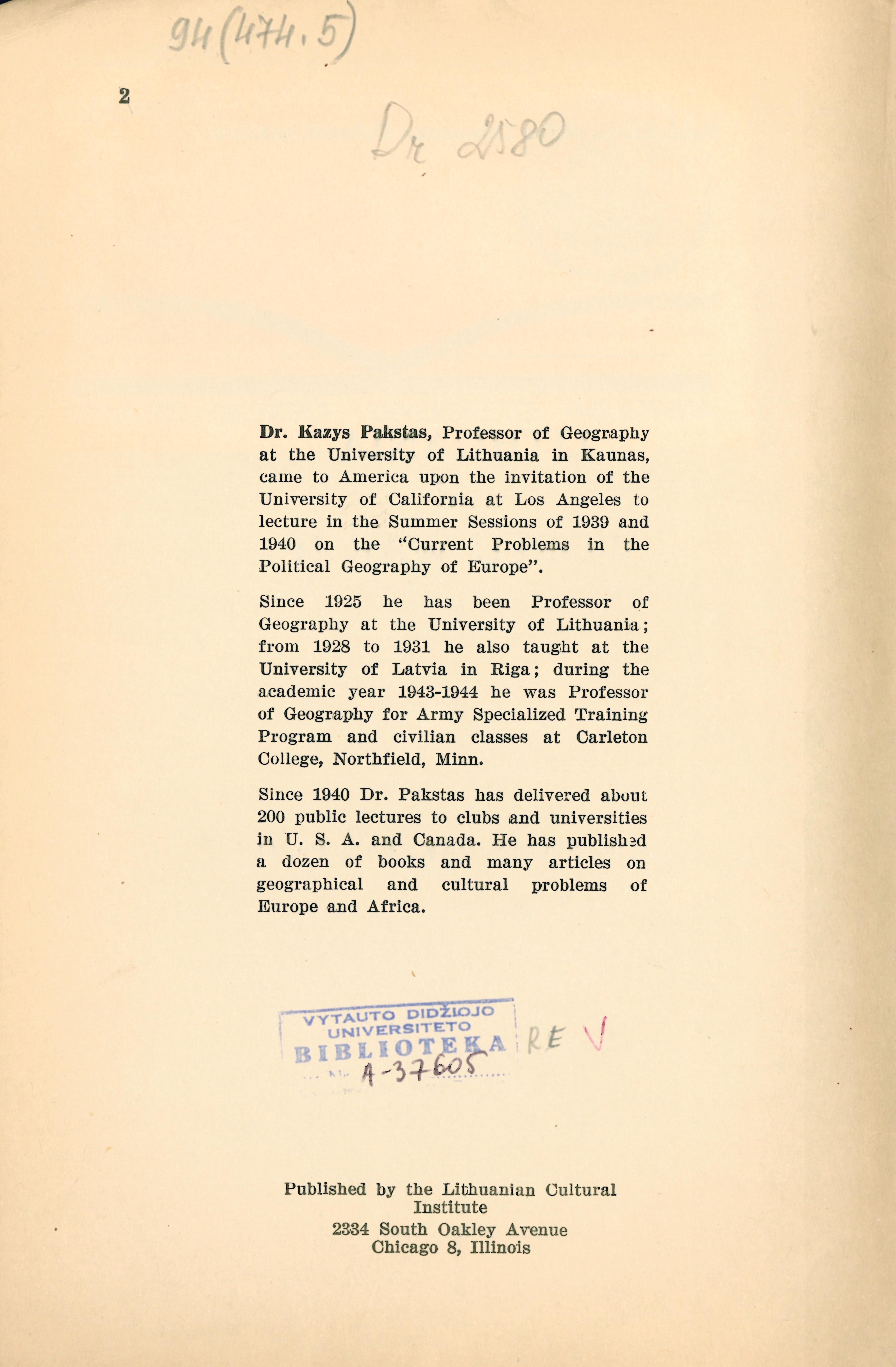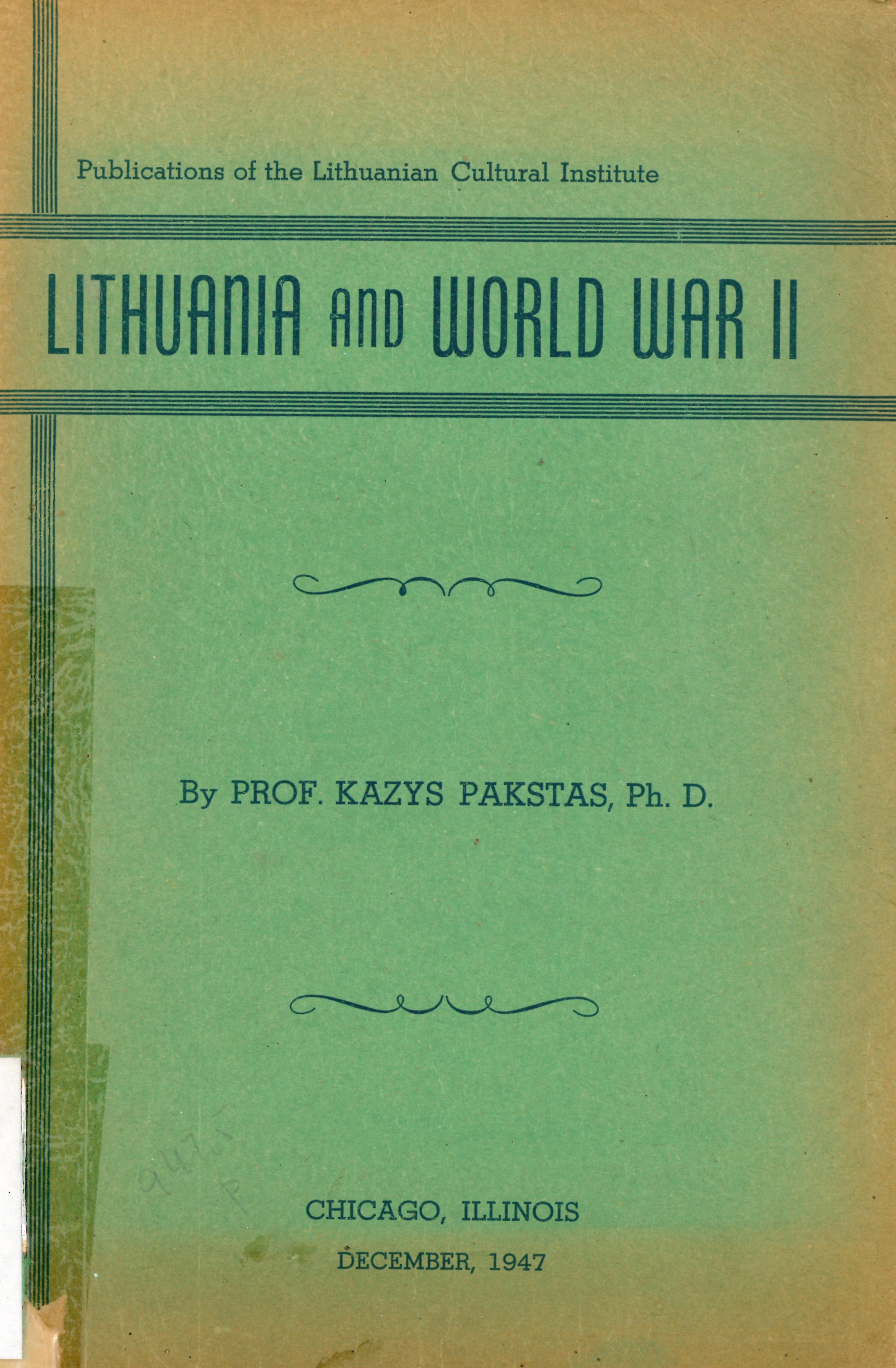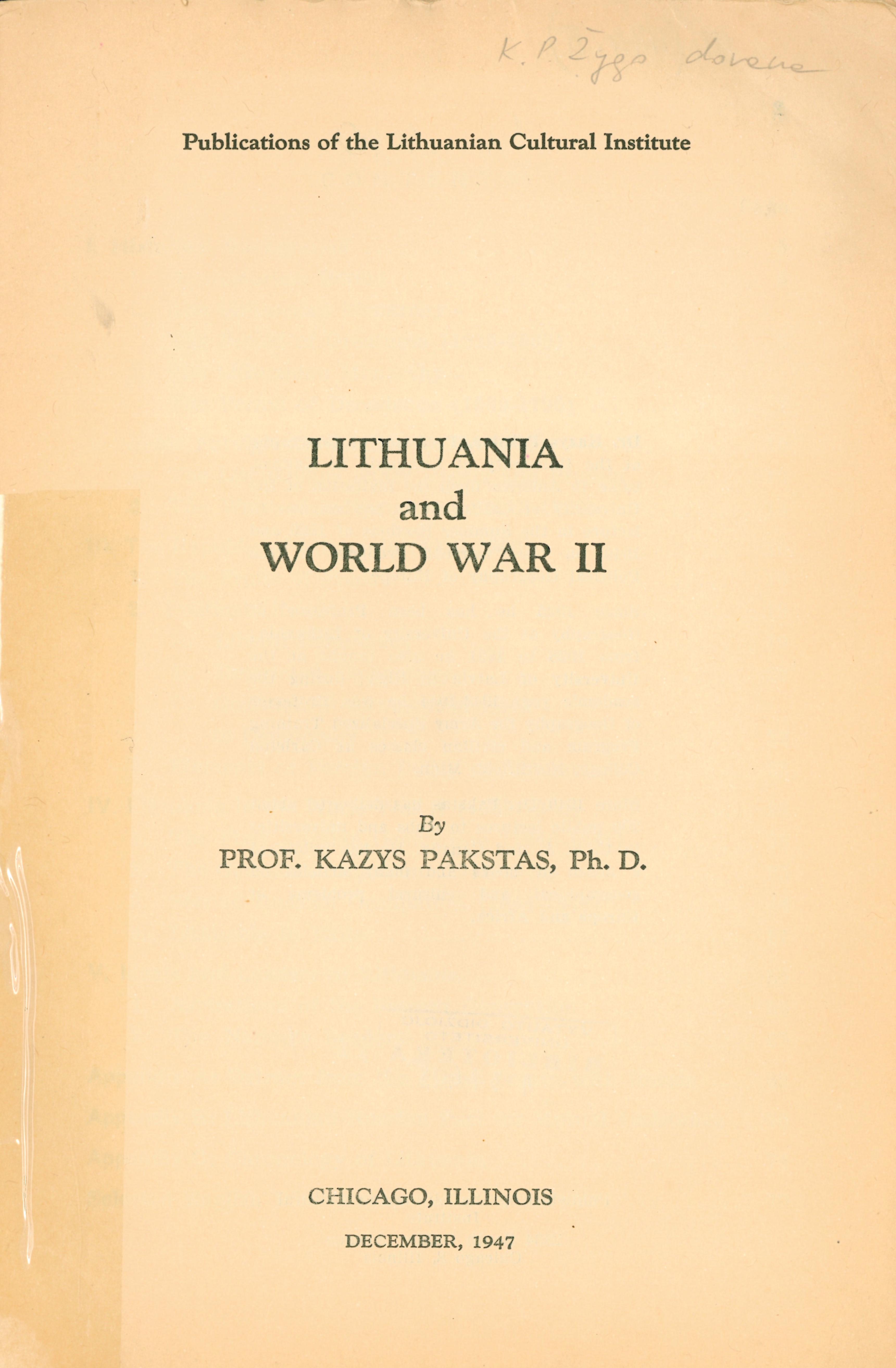 | Lithuania and World war II / by Kazys Pakstas. – Chicago (Ill.) : Lithuanian Cultural institute, 1947. – 80 p. : žml. [lt] | |
