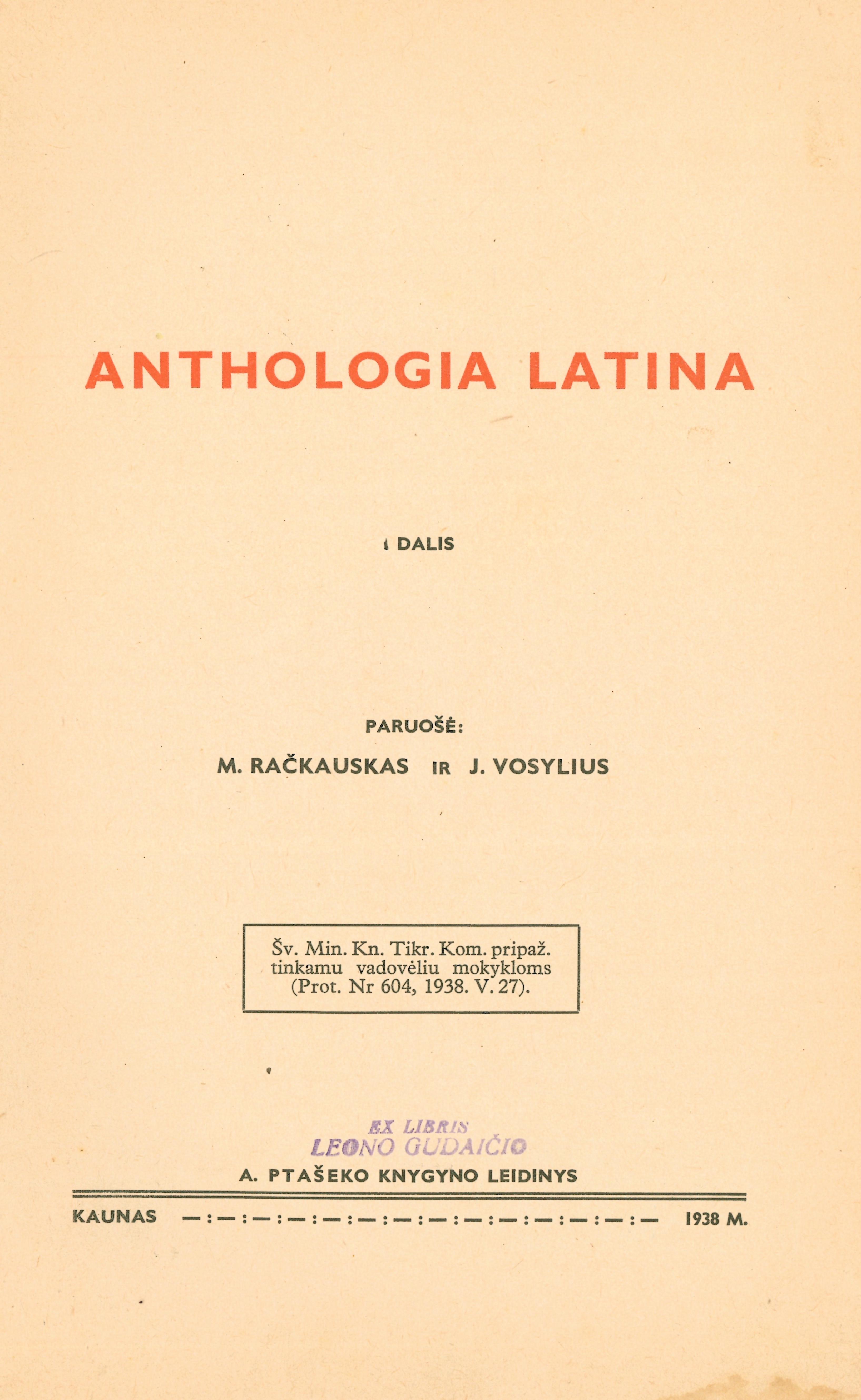 | Antraštė | Anthologia Latina. D. 1 (1938) |