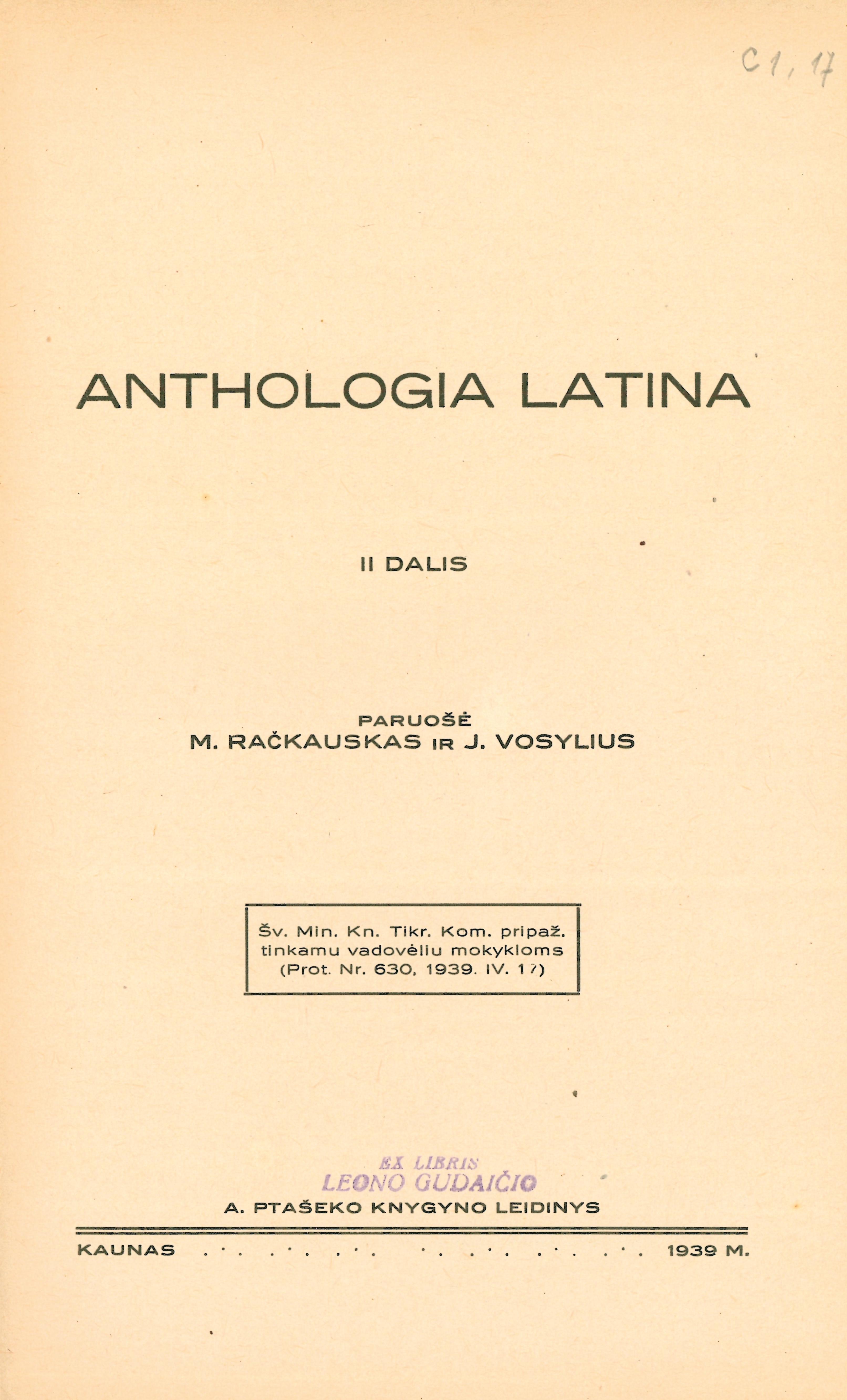 | Antraštė | Anthologia Latina. D. 2 (1939) |