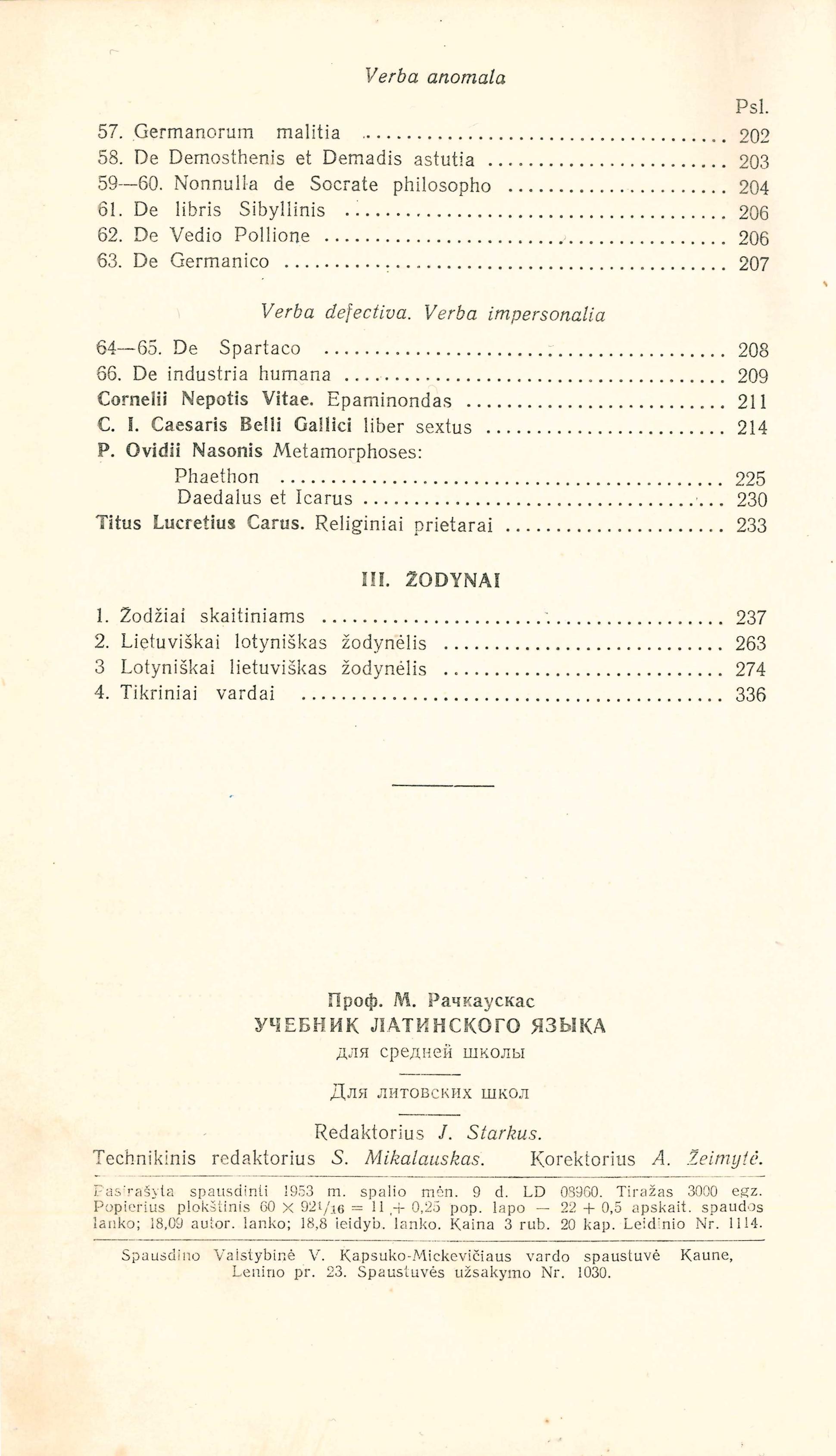 | Antraštė | Lotynų kalbos vadovėlis: vidurinėms mokykloms / M. Račkauskas. – Kaunas: Valstybinė pedagoginės literatūros leidykla, 1953. – 351, [1], [3] p. [lt] |