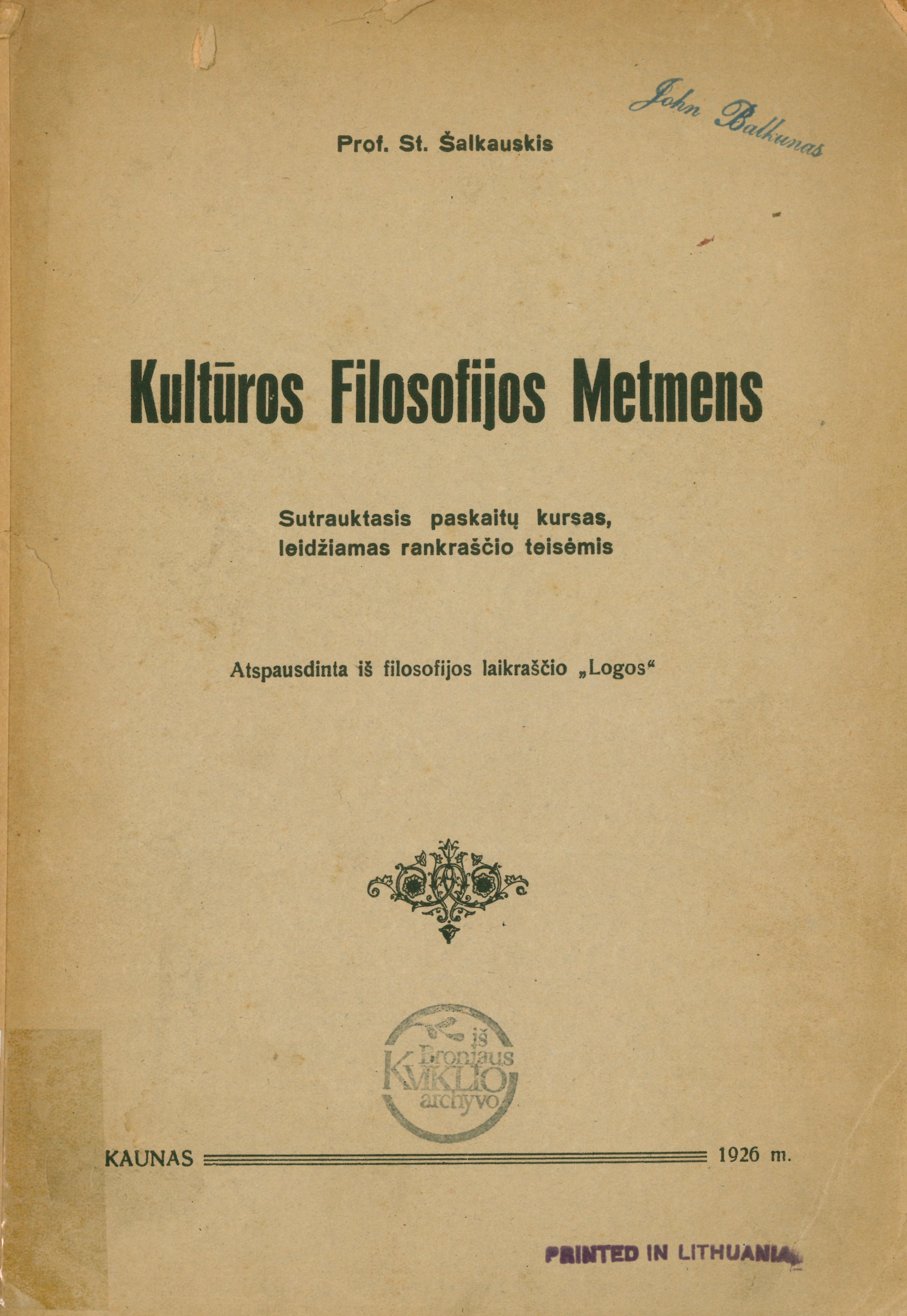 | Published | Kaunas: [s.n.], 1926 |