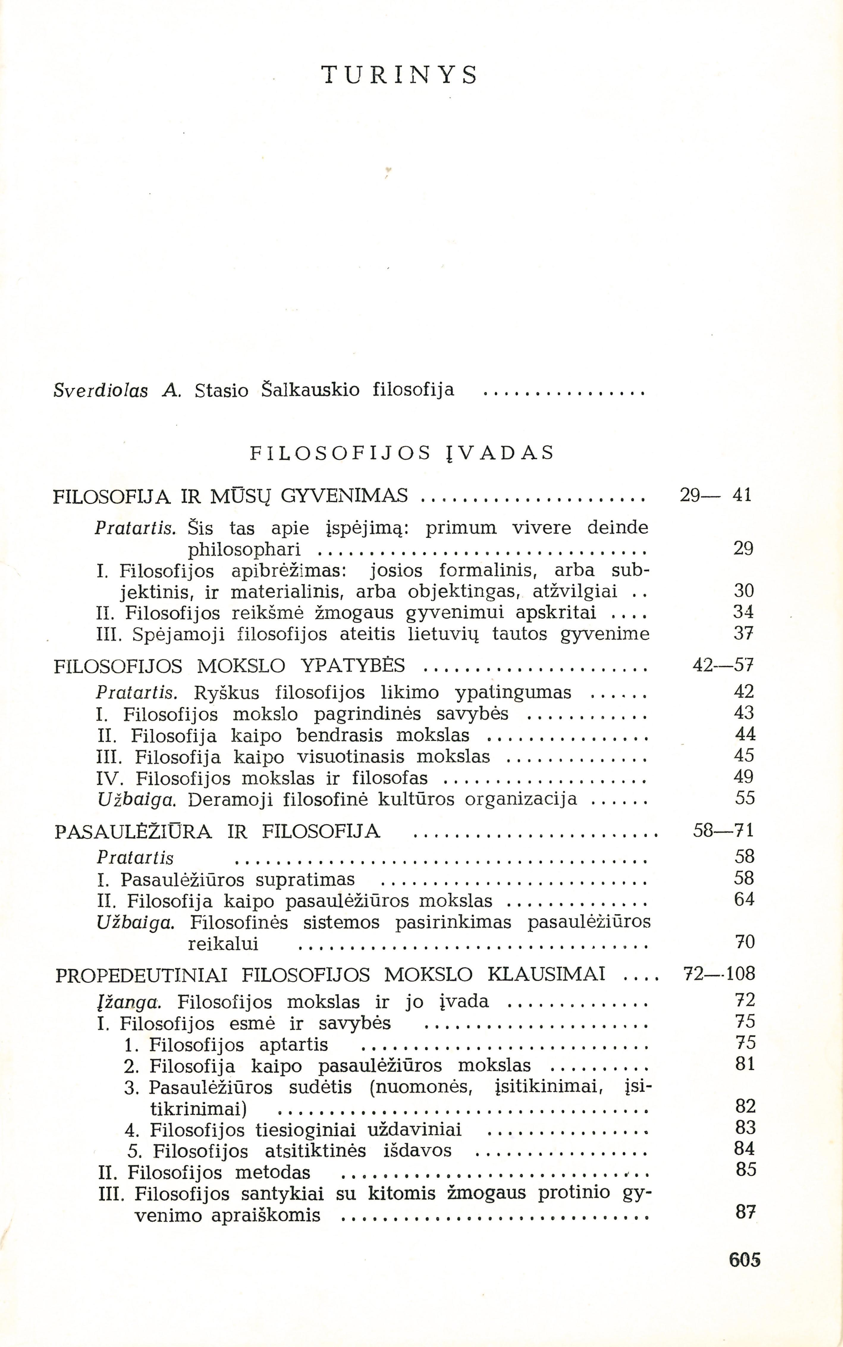 Filosofija ir mūsų gyvenimas (1921); Filosofijos mokslo ypatybės (1922); Pasaulėžiūra ir filosofija (1924); Propedeutiniai filosofijos mokslo klausimai (1928); Enciklopedinė filosofijos įvado dalis (1925); Kultūros filosofija (1925-1927); Specialiosios kultūros filosofijos problemos (1927); Grožis filosofijos šviesoje (1928); Bendroji estetika (1927); Estetinė ateitininkų ideologija. Projektas (1932).