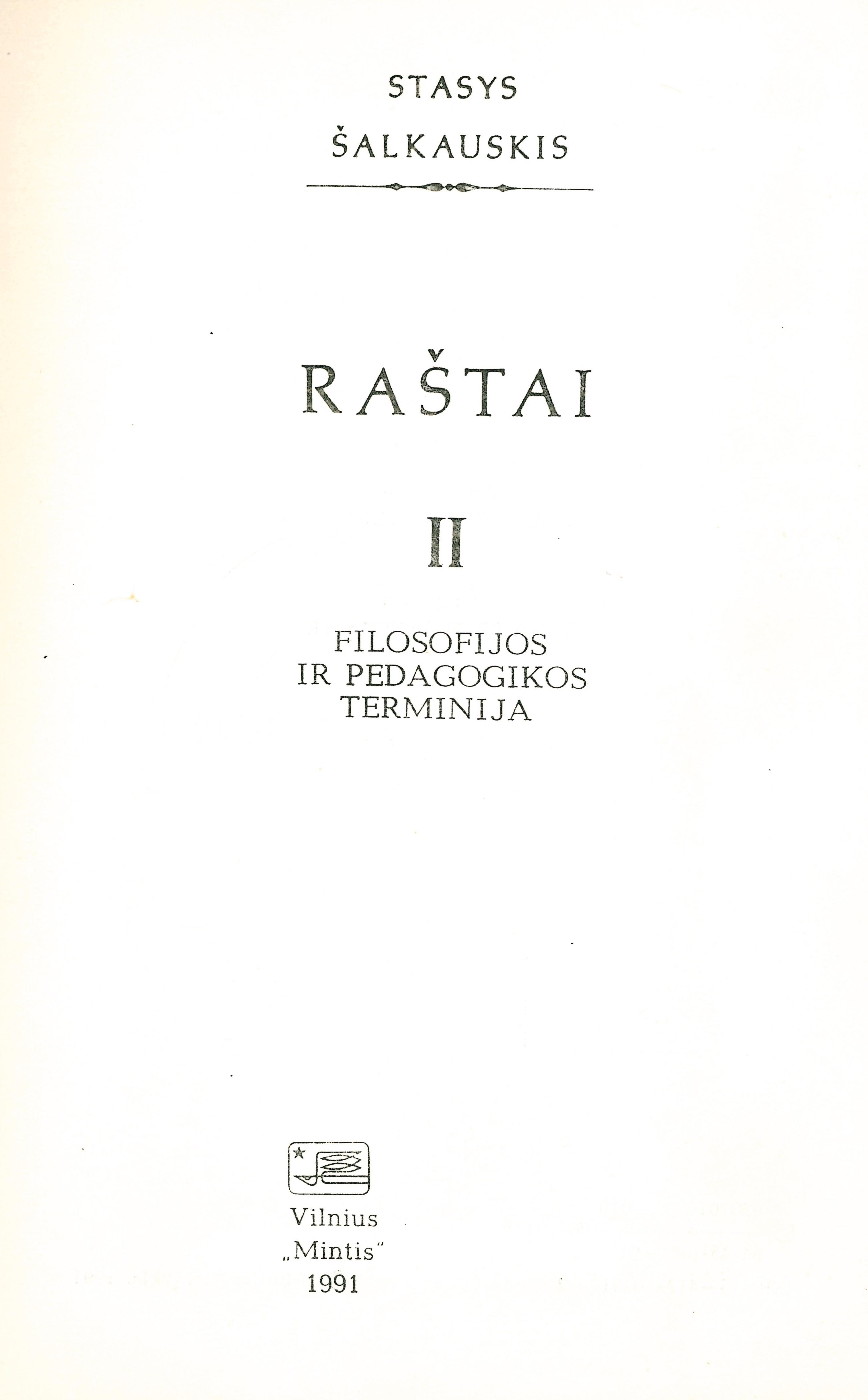 Raštai / Stasys Šalkauskis ; parengė Arūnas Sverdiolas. – Vilnius : Mintis, 1990-2012. – 9 tomai. – (Iš Lietuvos filosofijos palikimo)