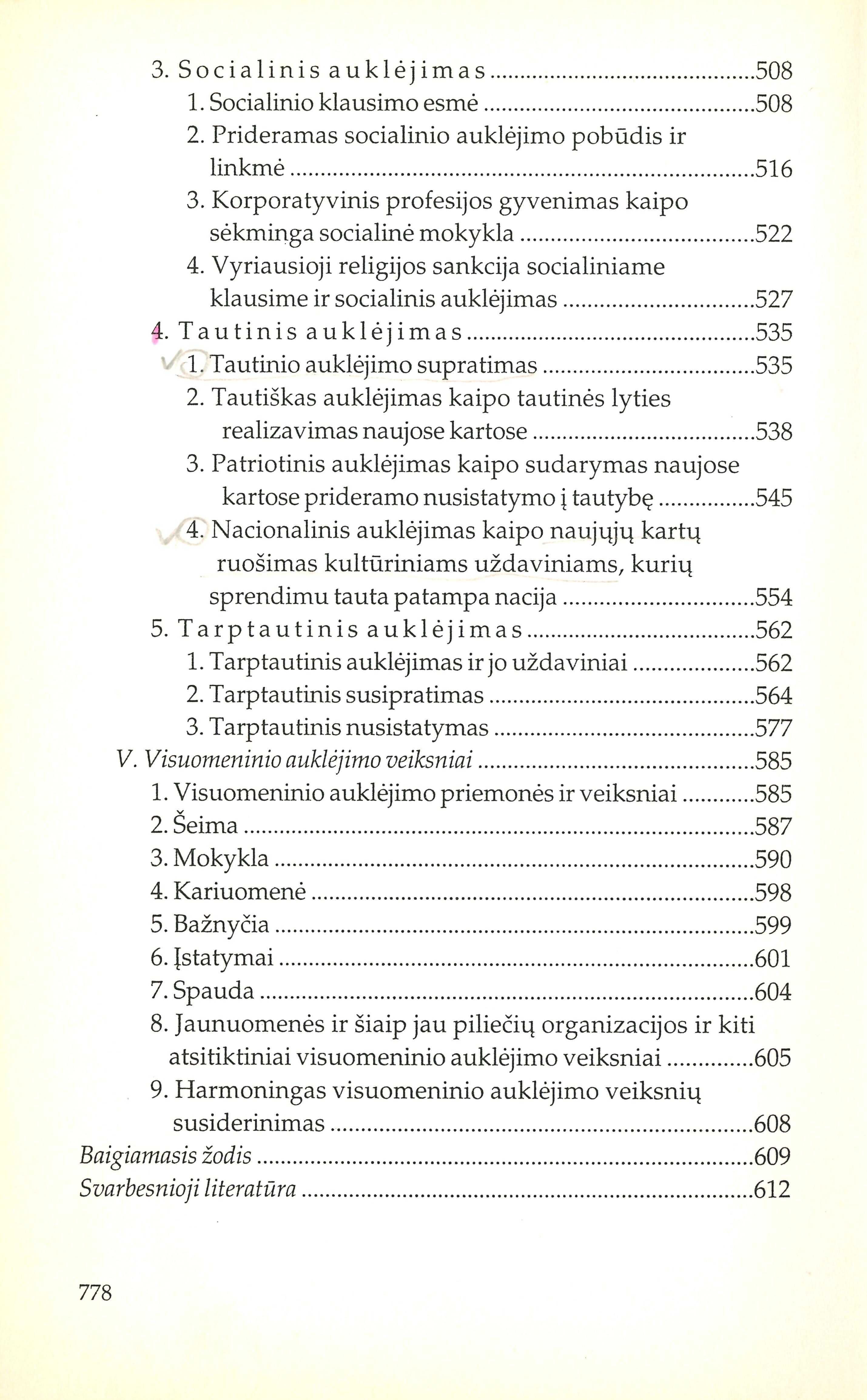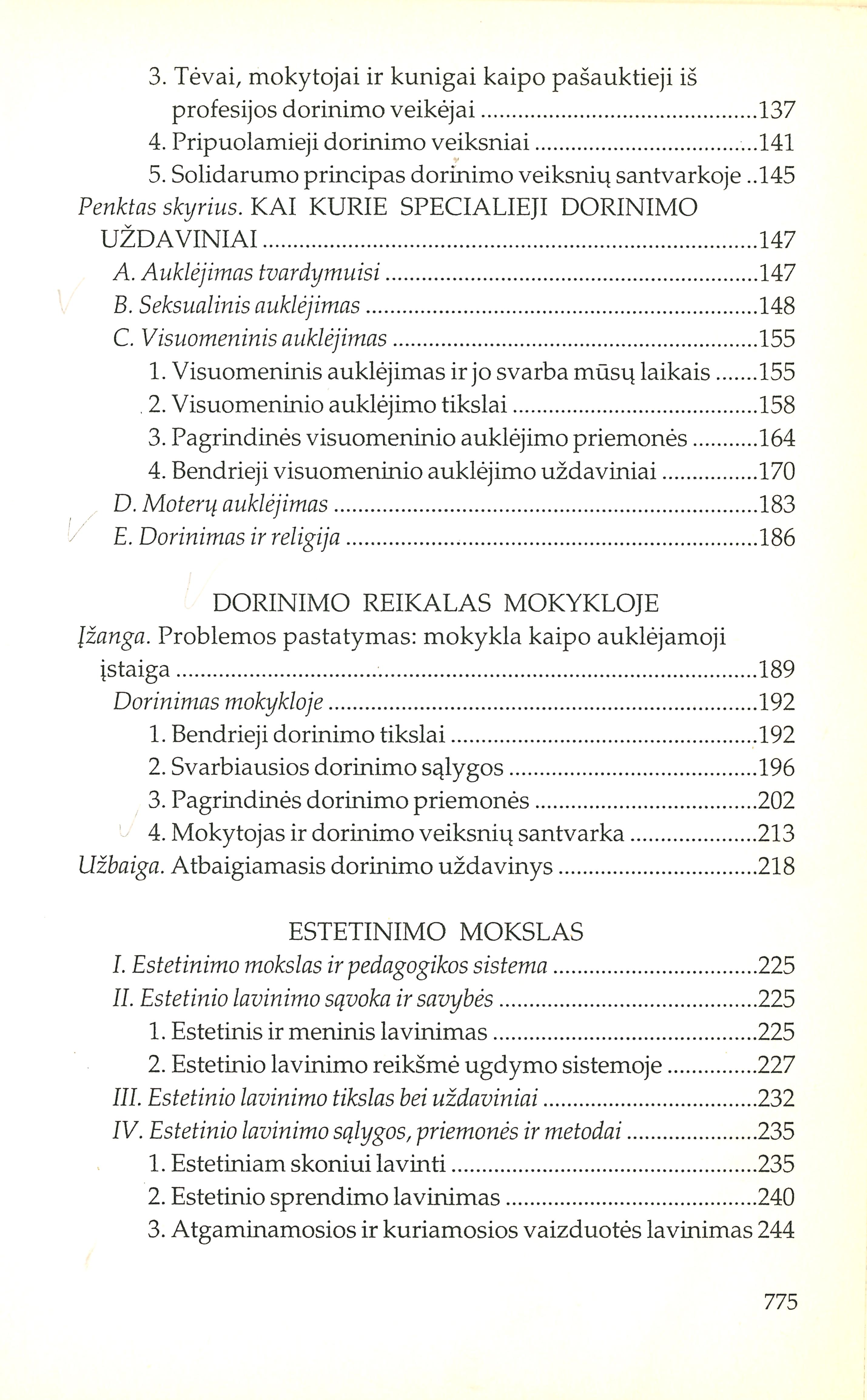 | Fizinis lavinimas ir jo tikslai (1928); Dorinimo mokslas; Dorinimo reikalas mokykloje (1925); Estetinimo mokslas; Religinimo mokslas; Pilnutinio religinio ugdymo pagrindai (1939); Visuomeninis auklėjimas (1927-1932); Mokyklų tipai ir mūsų vyriausybės vidurinių bei aukštesniųjų mokyklų įstatymo projektas (1923); Racionali mokyklų organizacijos sistema (1927); Konfesinė mokykla (1930); Švietimo darbas Lietuvoje | |
